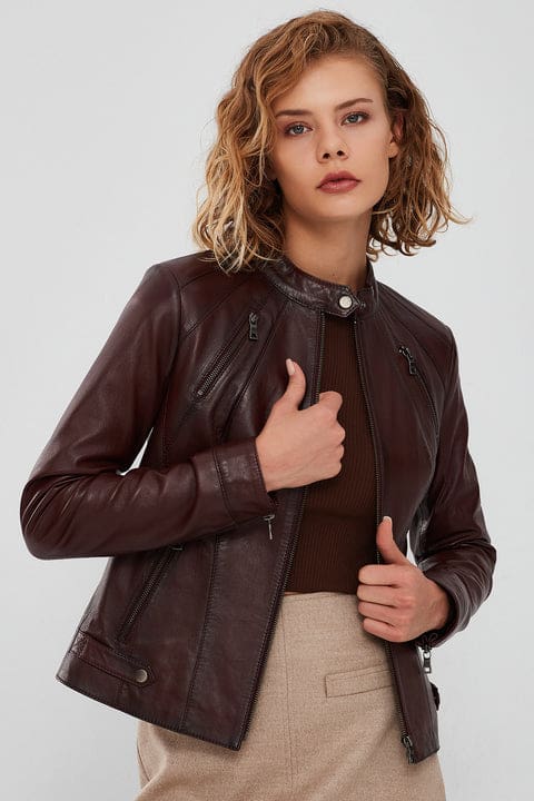 Kim Kadın Kahverengi Kısa Deri Ceket
