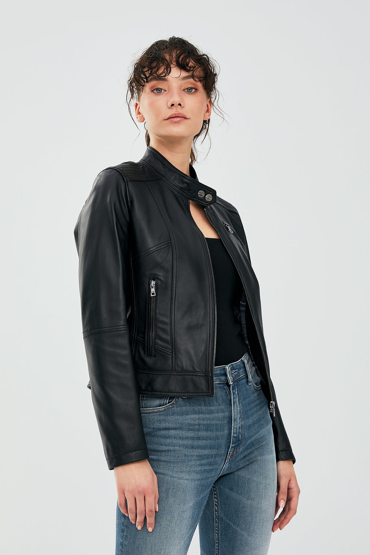 کت چرمی کوتاه مشکی زنانه کایلی دری مد