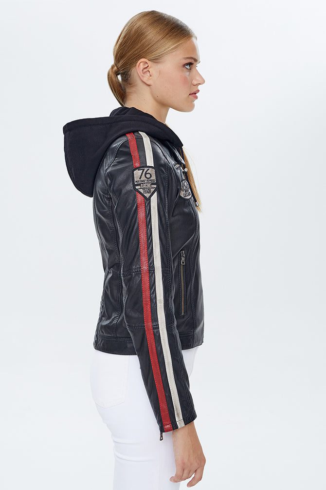 کت چرم اسپرت کلاه دار مشکی زنانه Ladyracer دری مد