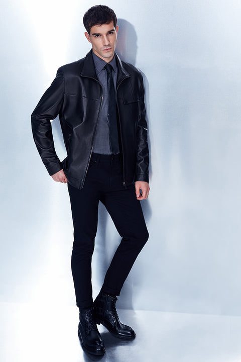 کاپشن چرم مشکی مردانه لاپورت دری مد