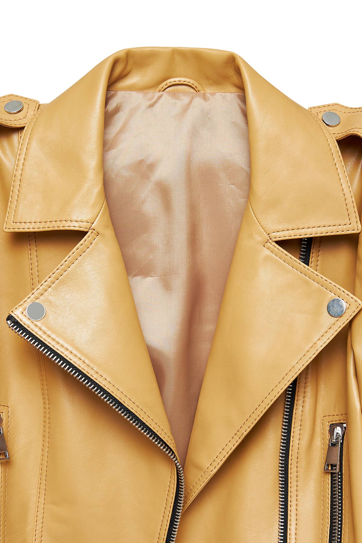 Latoya Kadın Sarı Kruvaze Yaka Deri Ceket