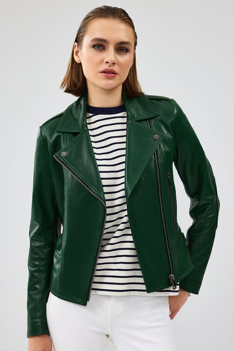 کت چرم سبز موتورسواری زنانه لاتویا دری مد