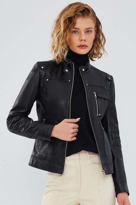 Lilian Kadın Siyah Regular Kısa Deri Ceket