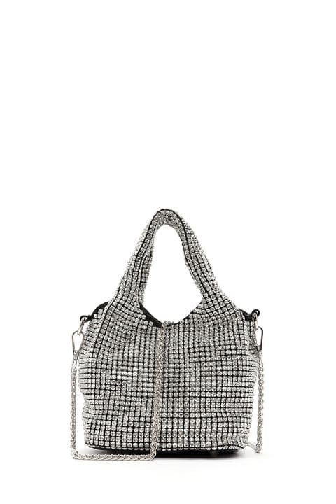 Kadın Gümüş Uzun Zincir Askılı Taşlı Çapraz Çanta