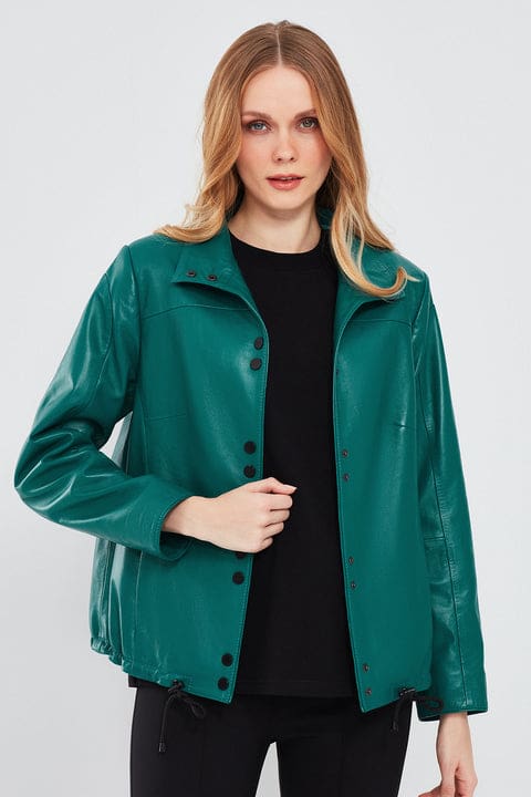 Lopez Kadın Yeşil Oversize Deri Ceket
