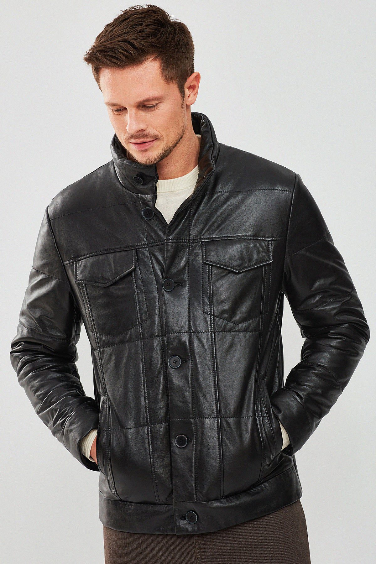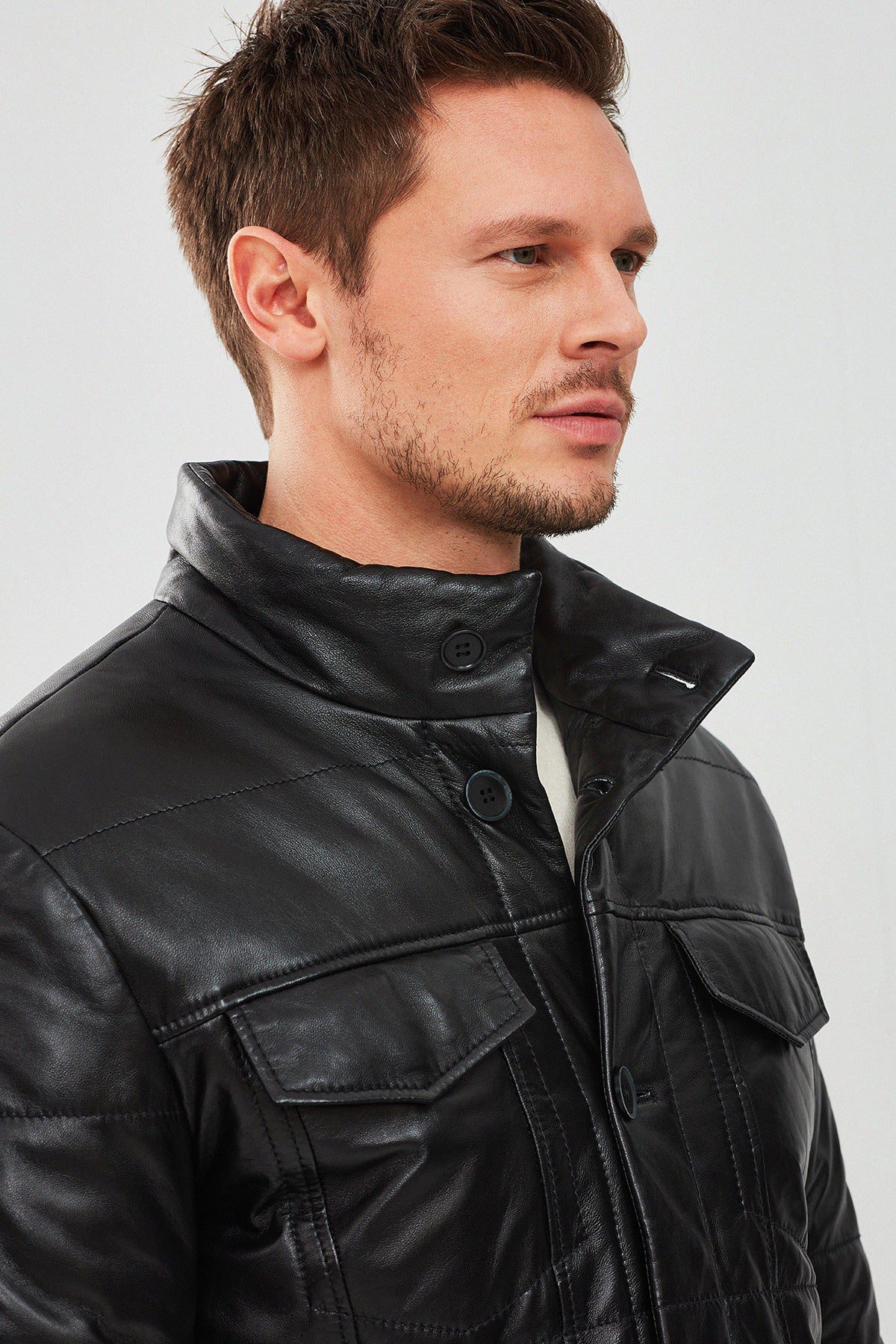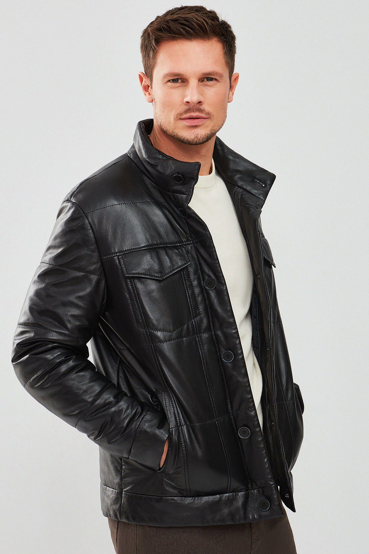 Lorenzo Erkek Siyah Şişme Deri Ceket