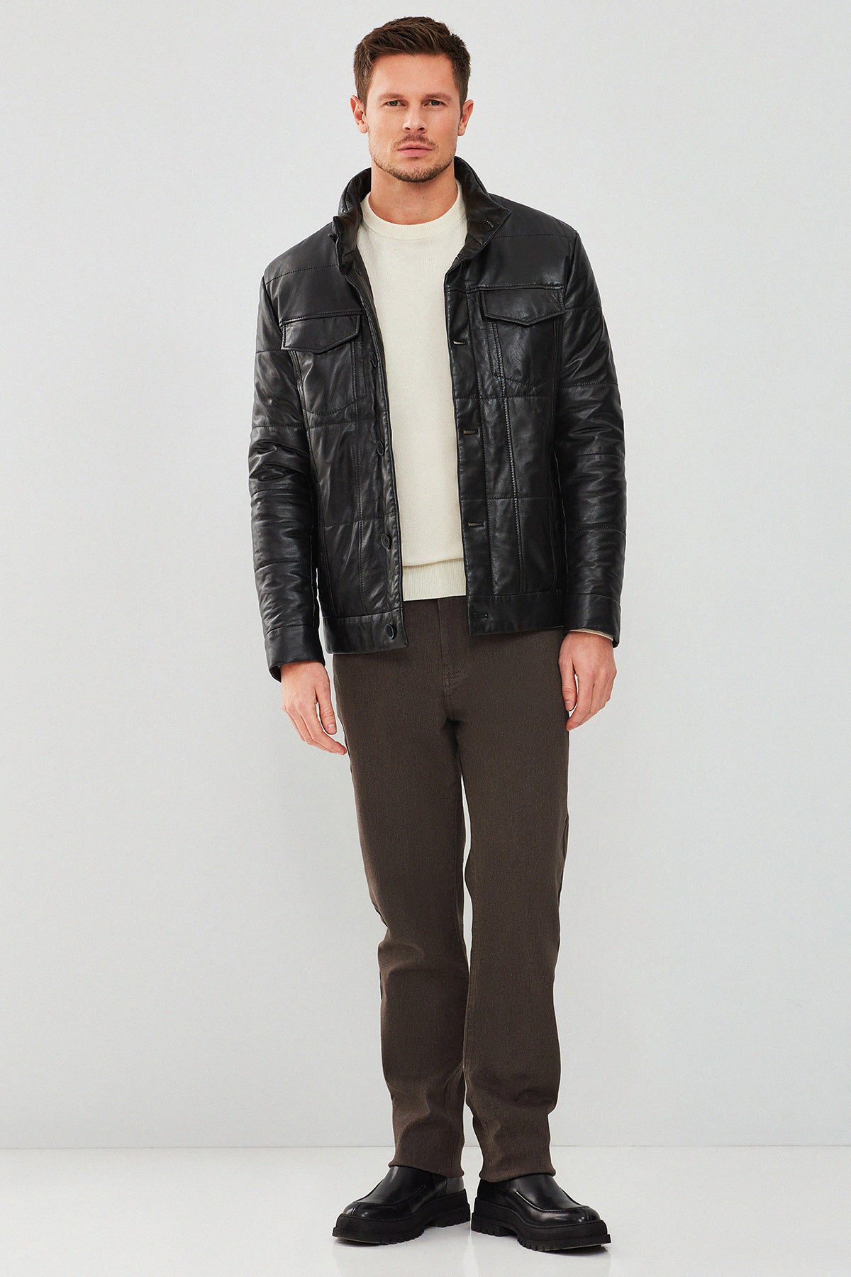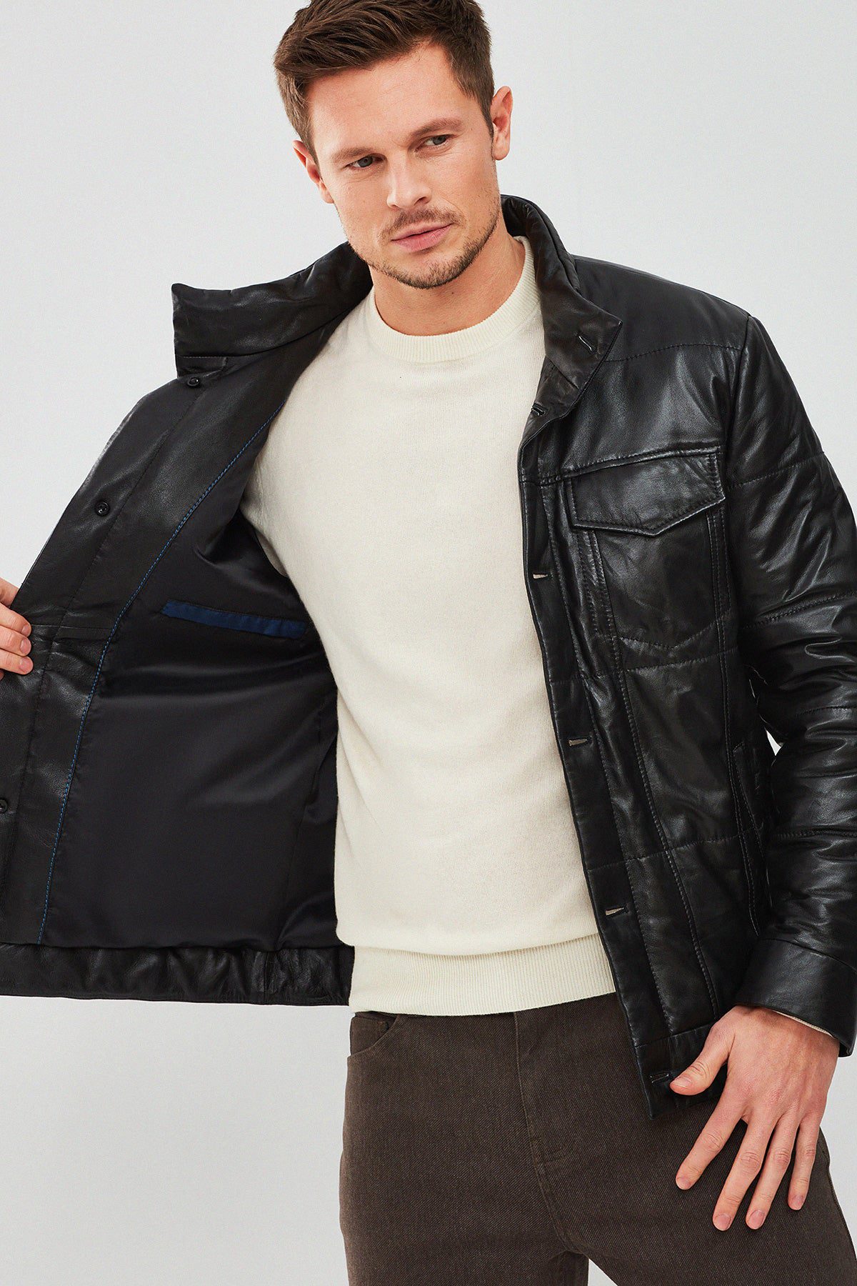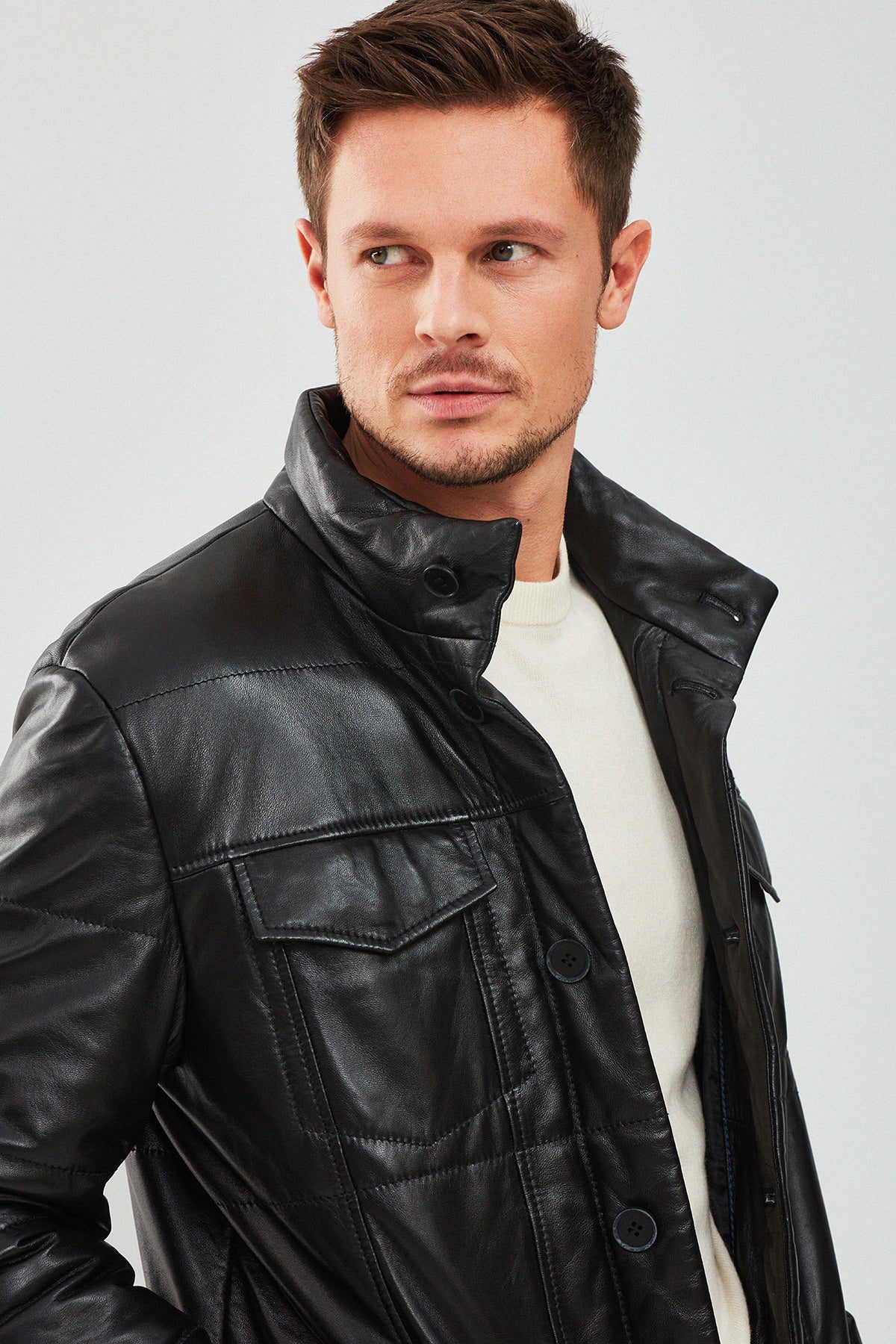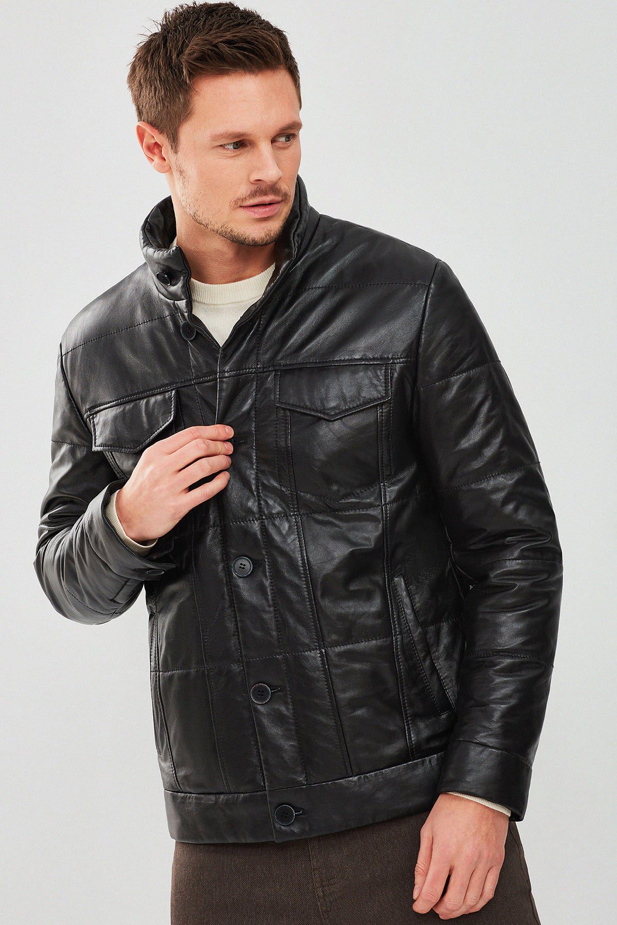 Lorenzo Erkek Siyah Şişme Deri Ceket