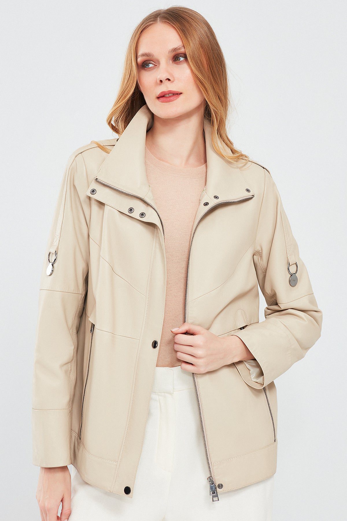 کت چرمی اور سایز بژ زنانه لوئیزا دری مد