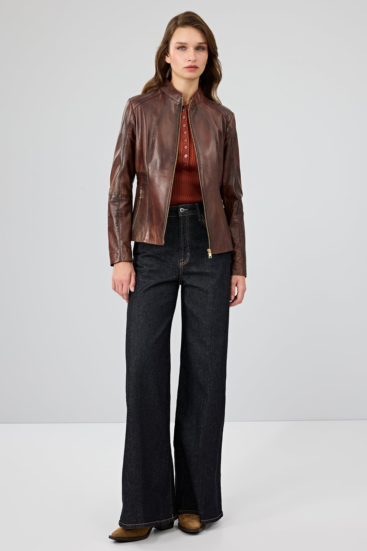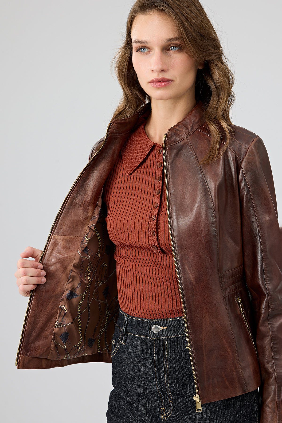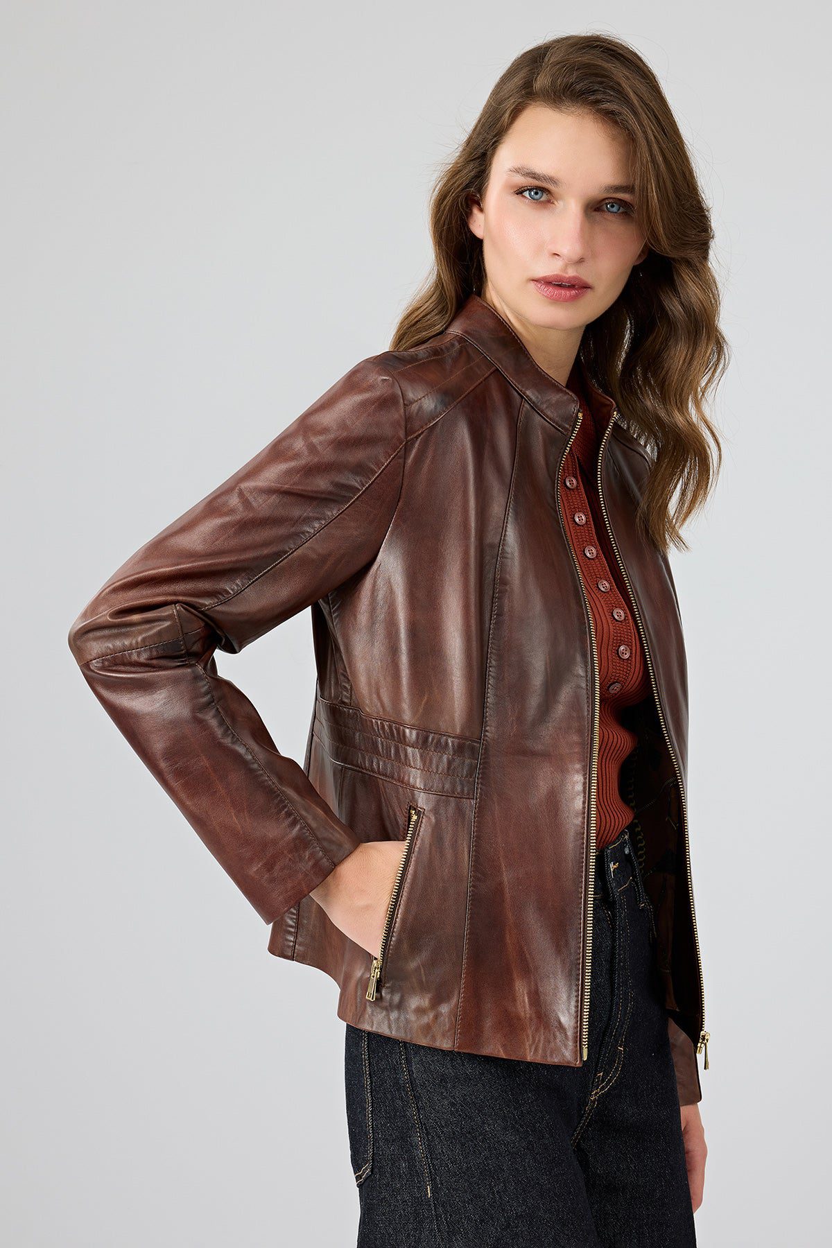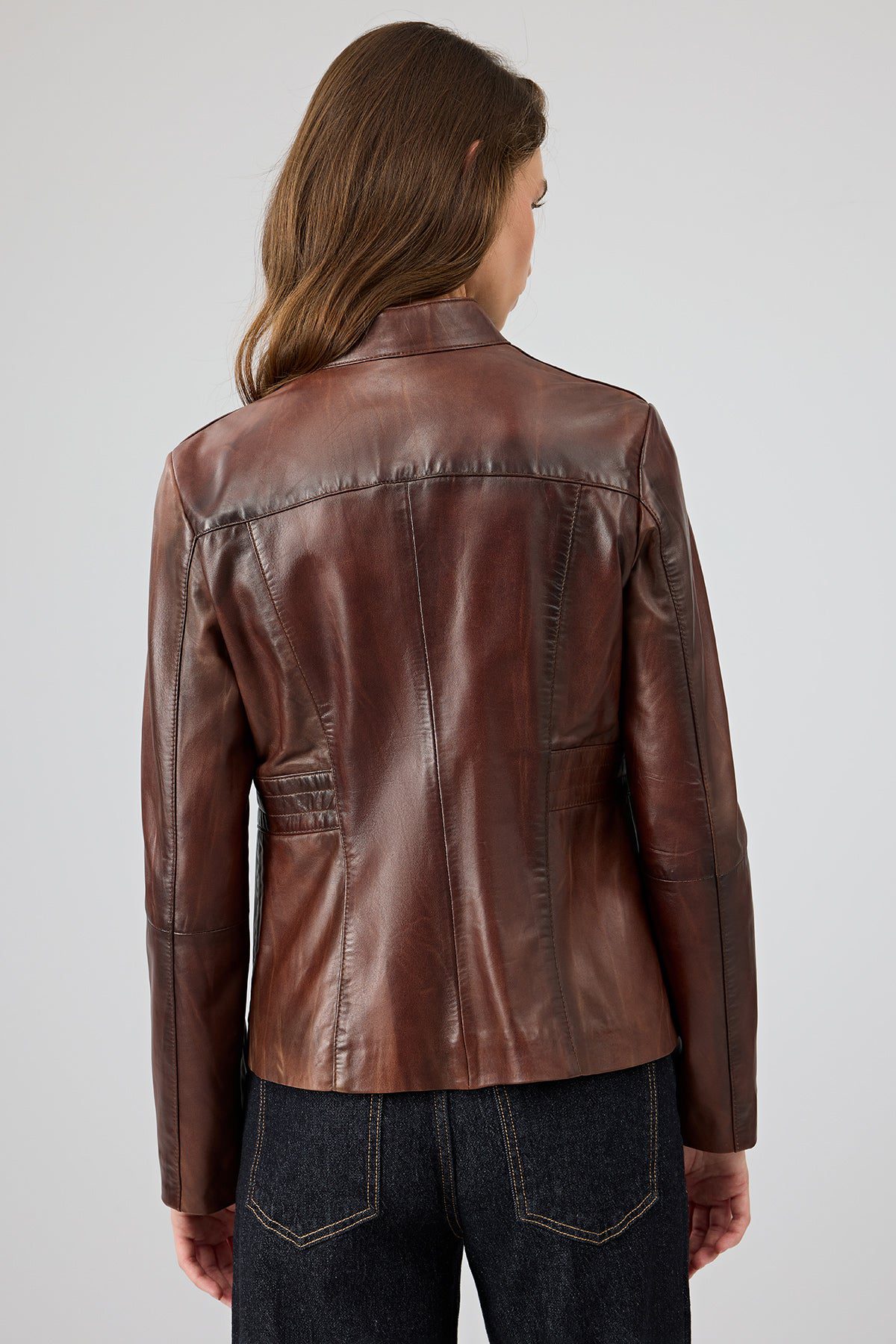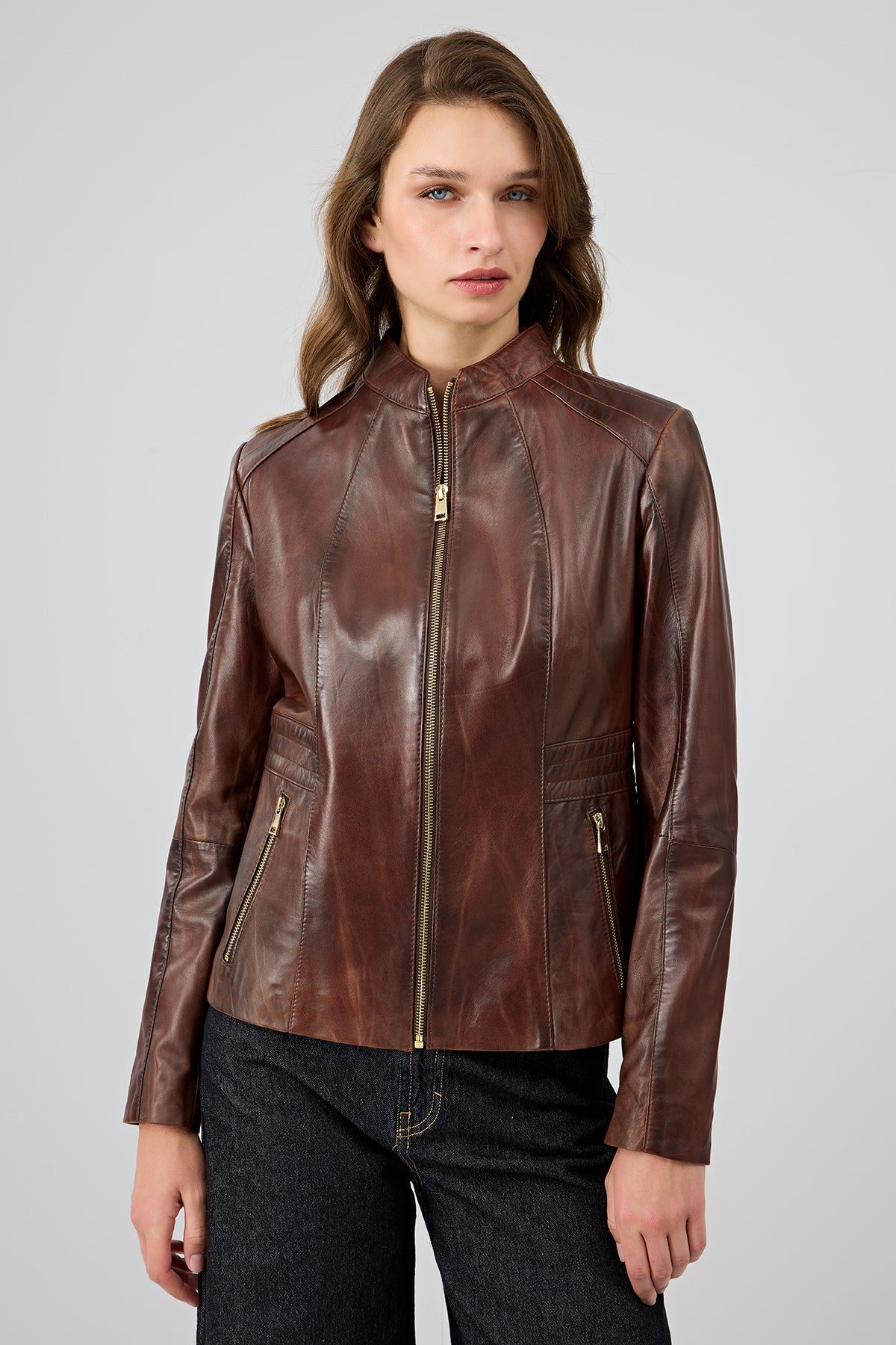 Lydia Kadın Kahverengi Kısa Deri Ceket