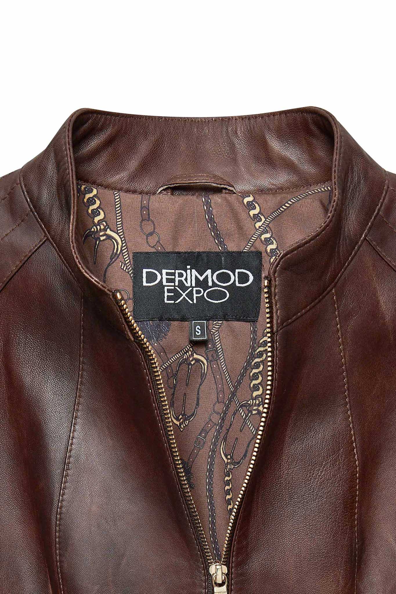 کت چرم کوتاه قهوه ای زنانه لیدیا دری مد