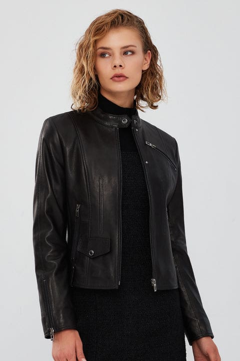 کت چرمی کوتاه مشکی زنانه مدیسون دری مد