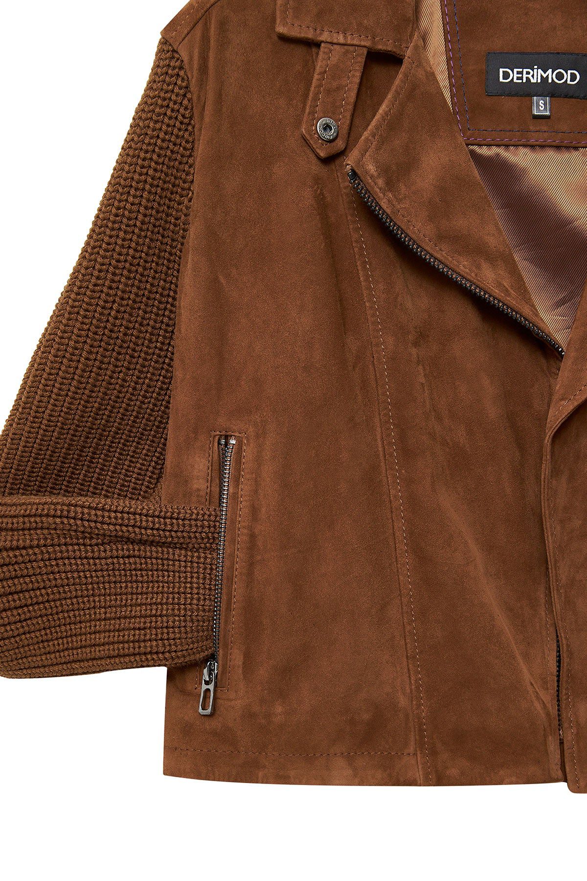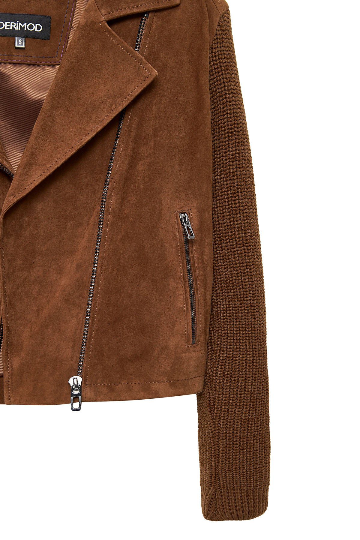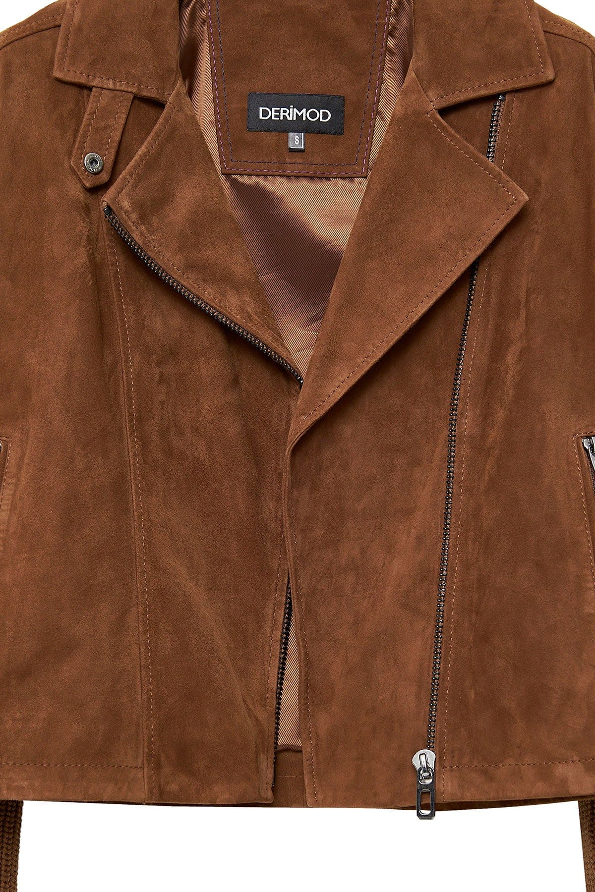Marcy Kadın Kahverengi Kruvaze Yaka Süet Deri Ceket