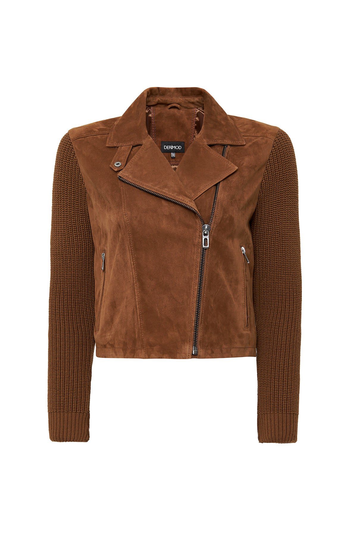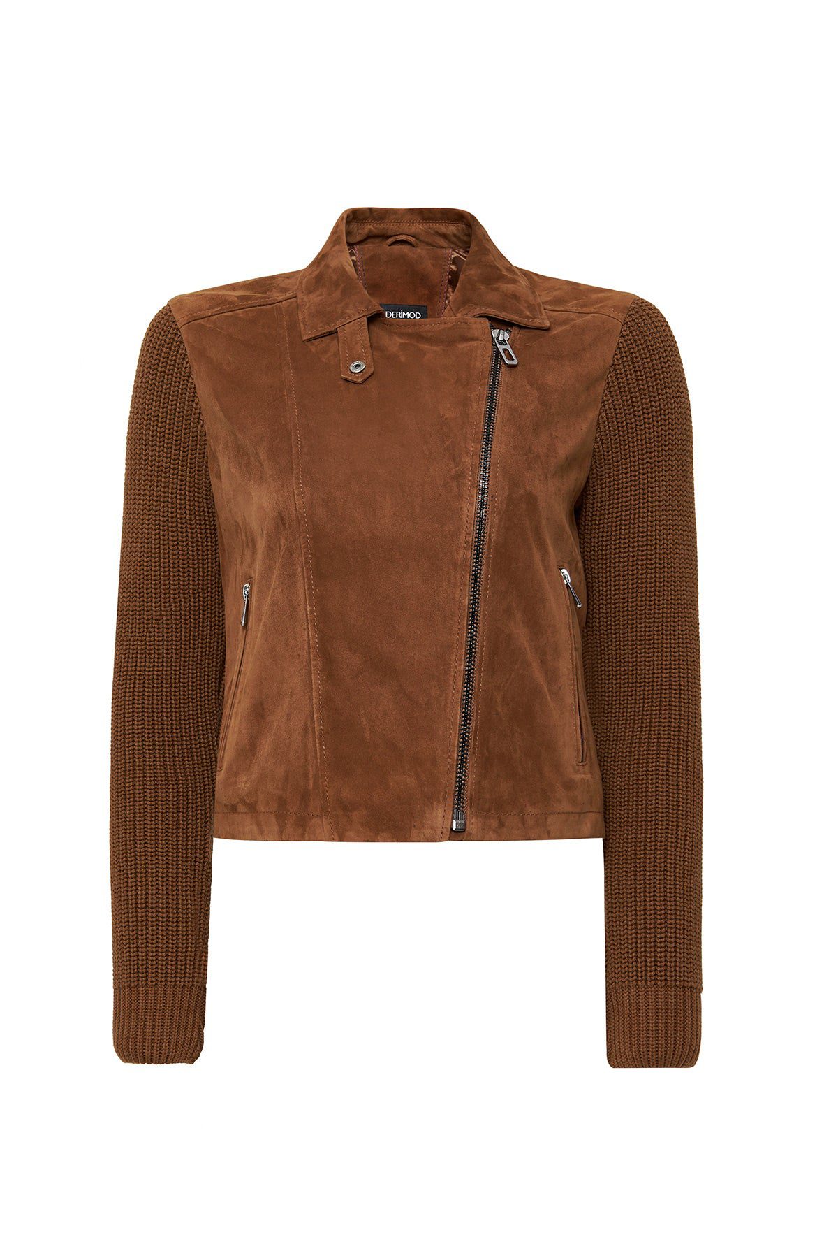 کت چرم جیر یقه دو سینه قهوه ای زنانه Marcy دری مد