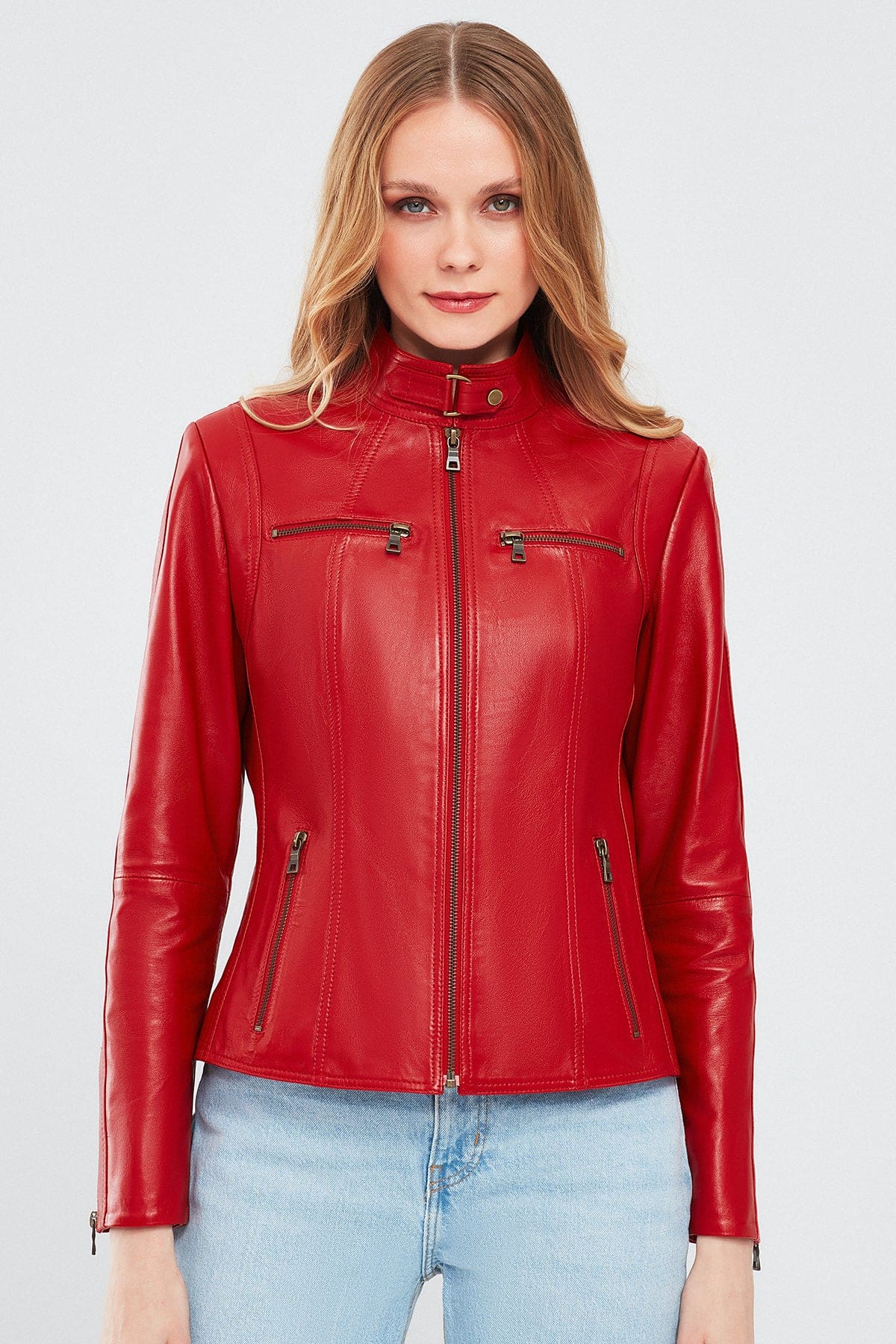Maria Kadın Kırmızı Kısa Deri Ceket