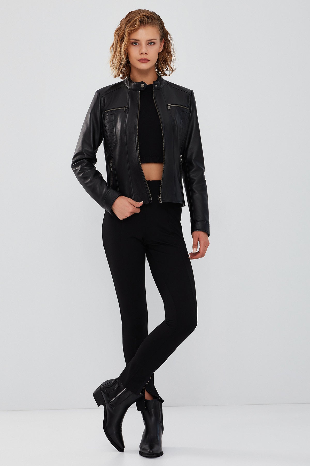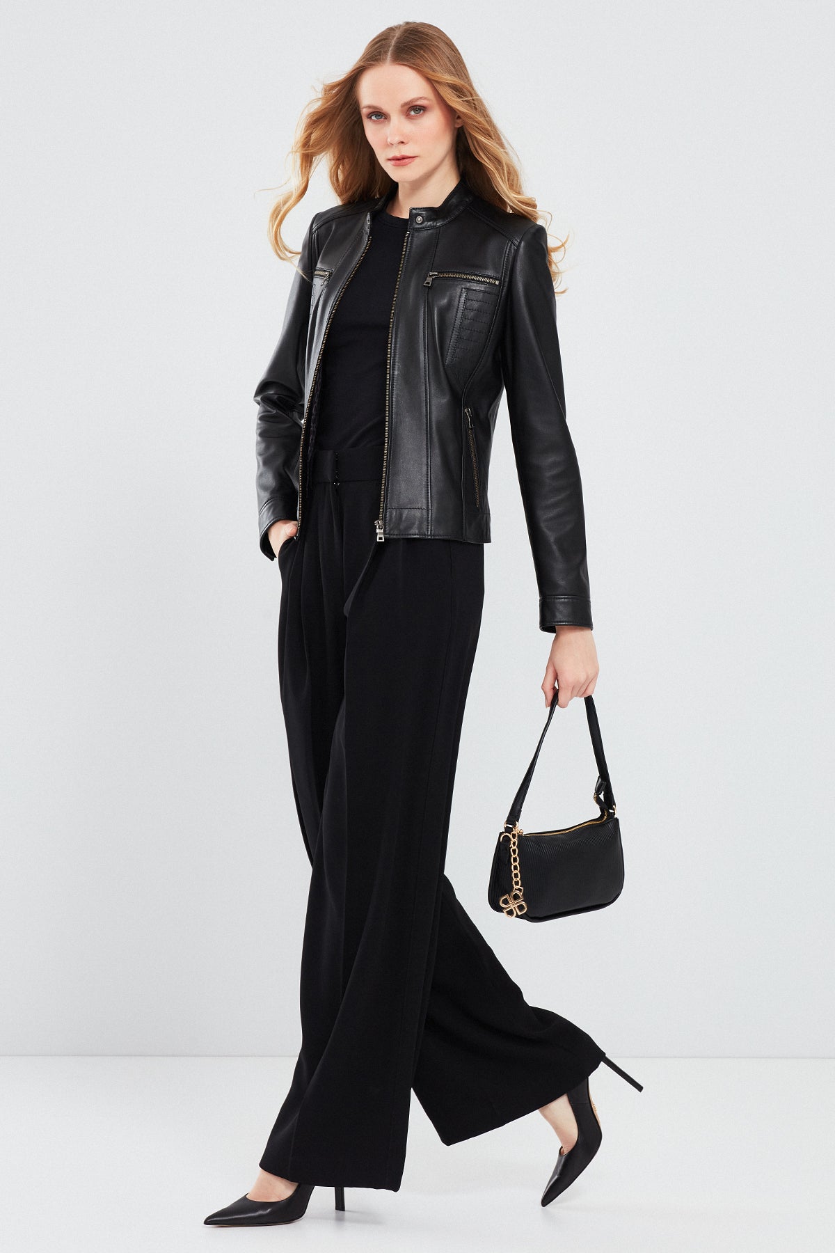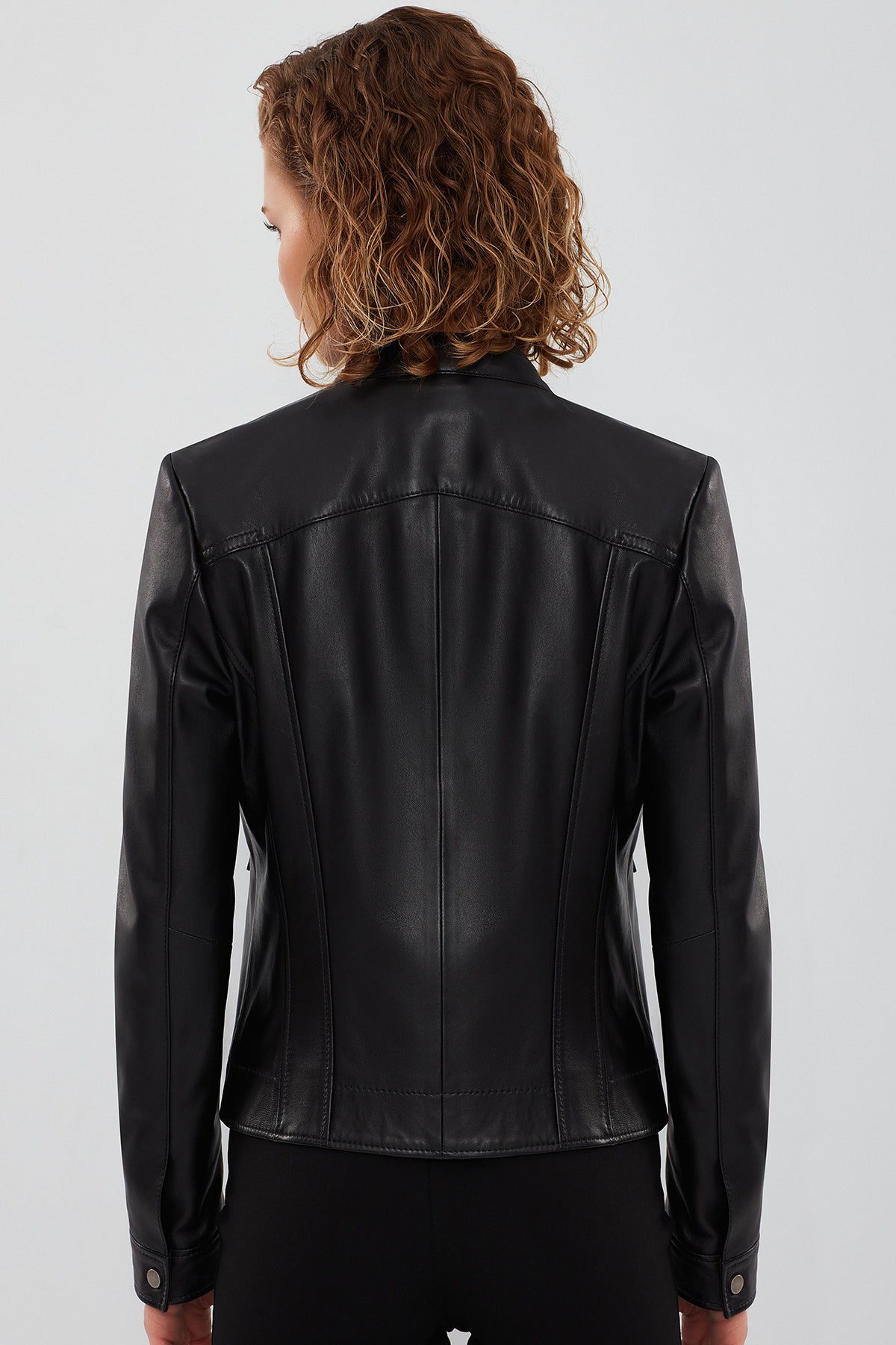Marlyn Kadın Siyah Kısa Deri Ceket