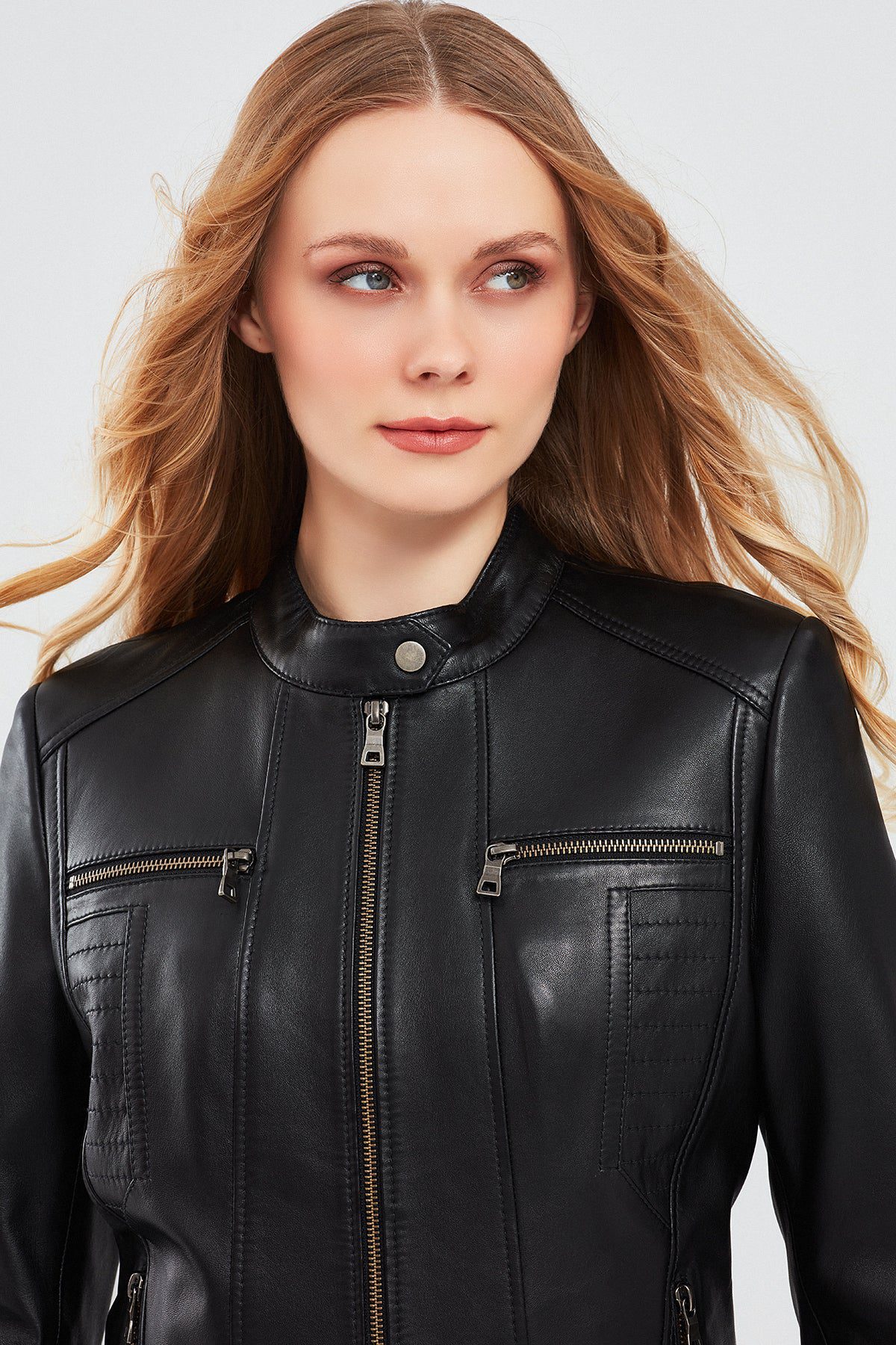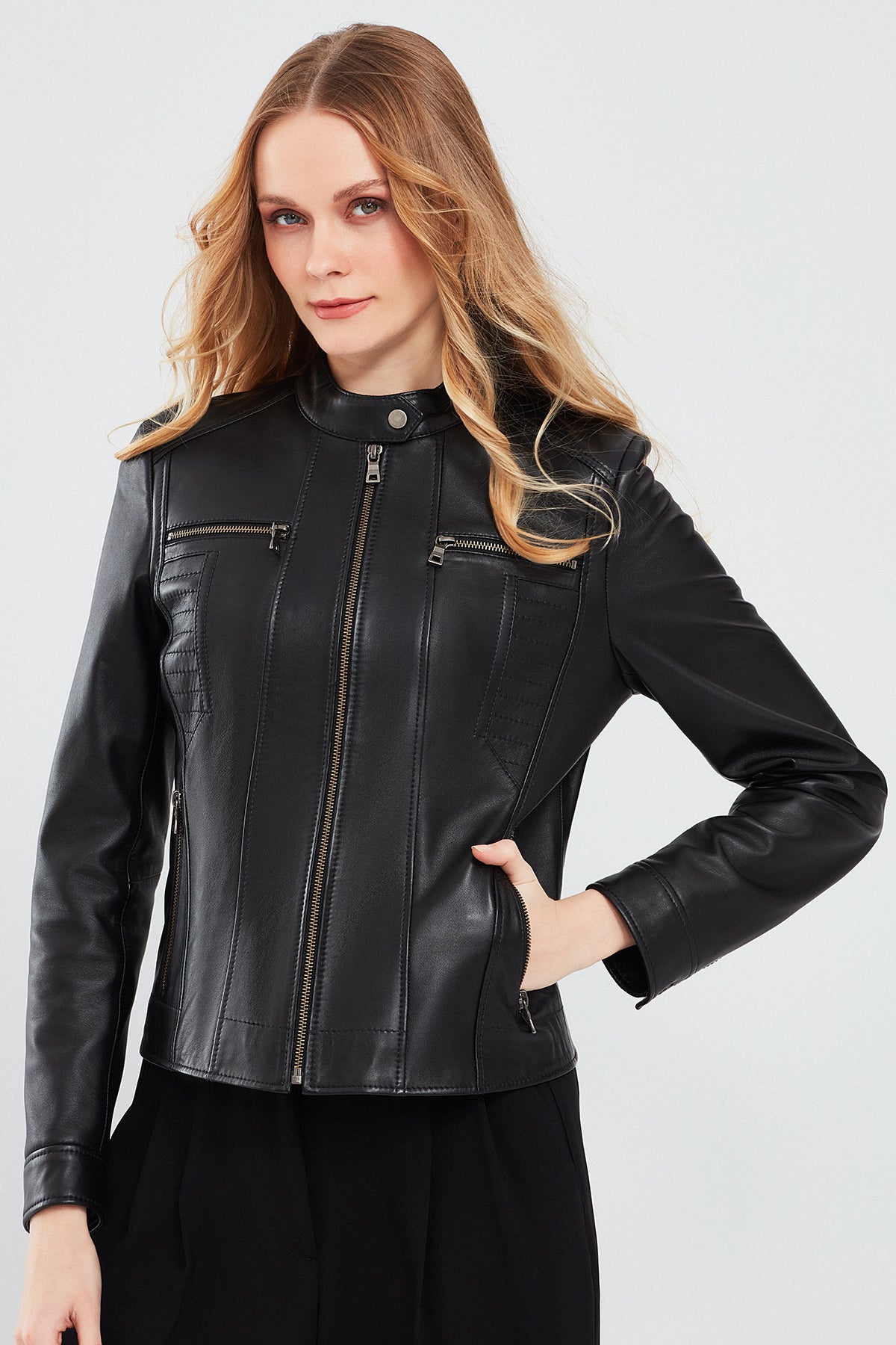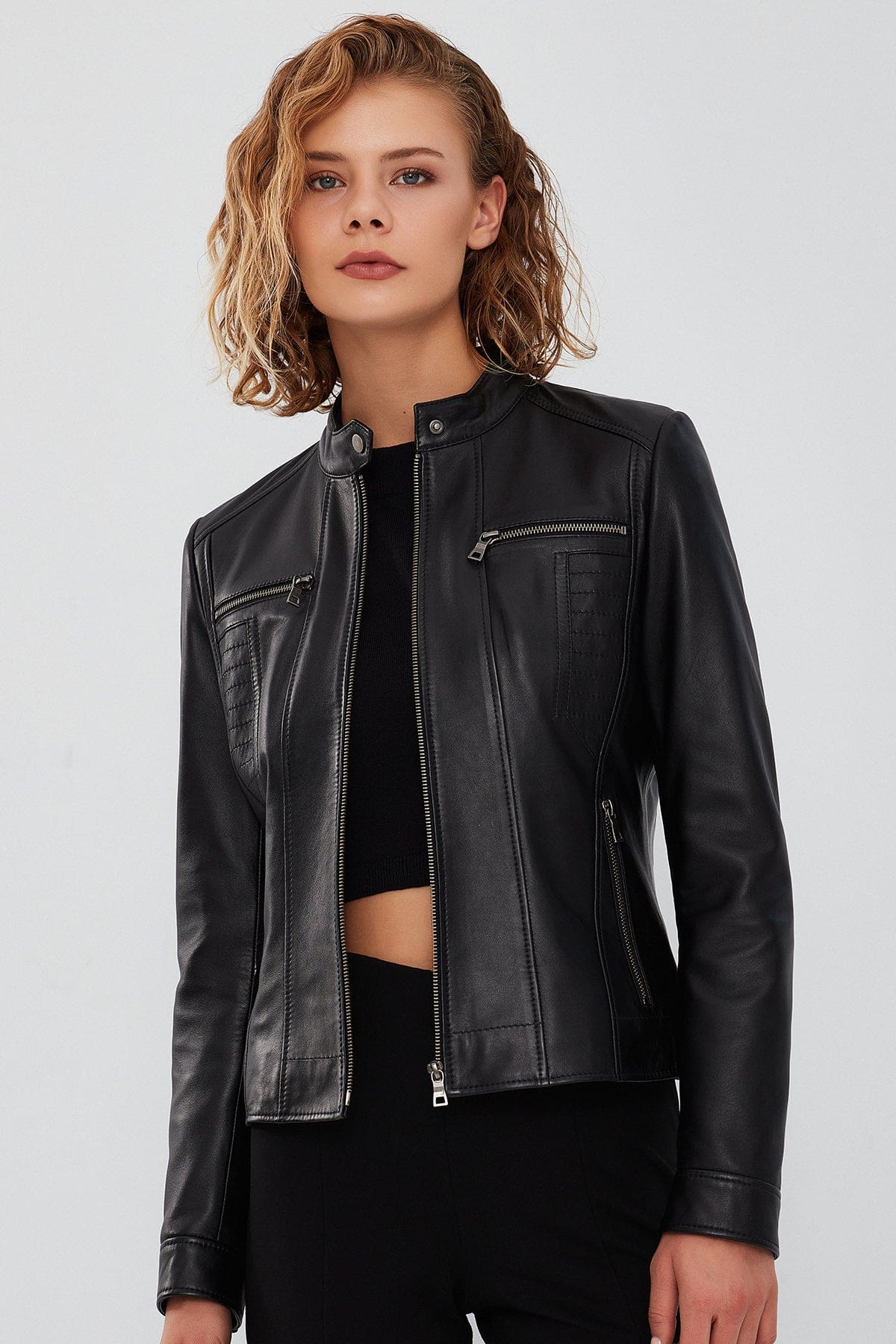 Marlyn Kadın Siyah Kısa Deri Ceket