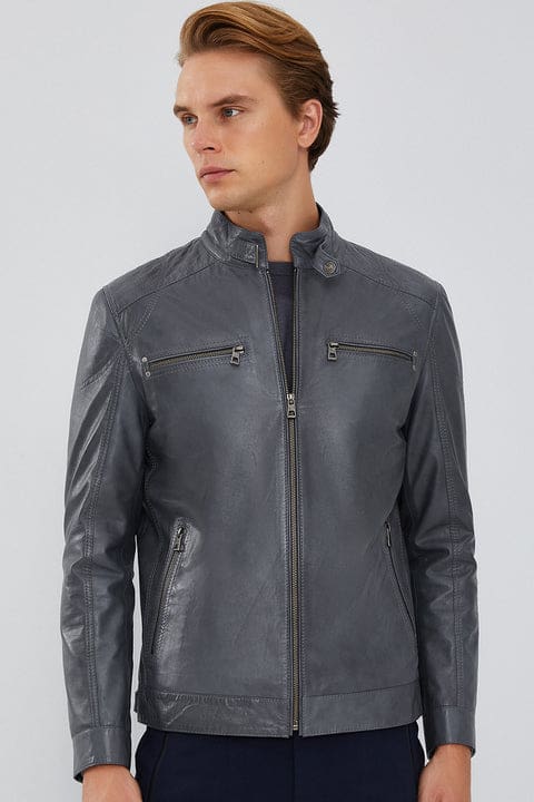 Maxim Erkek Gri Deri Ceket