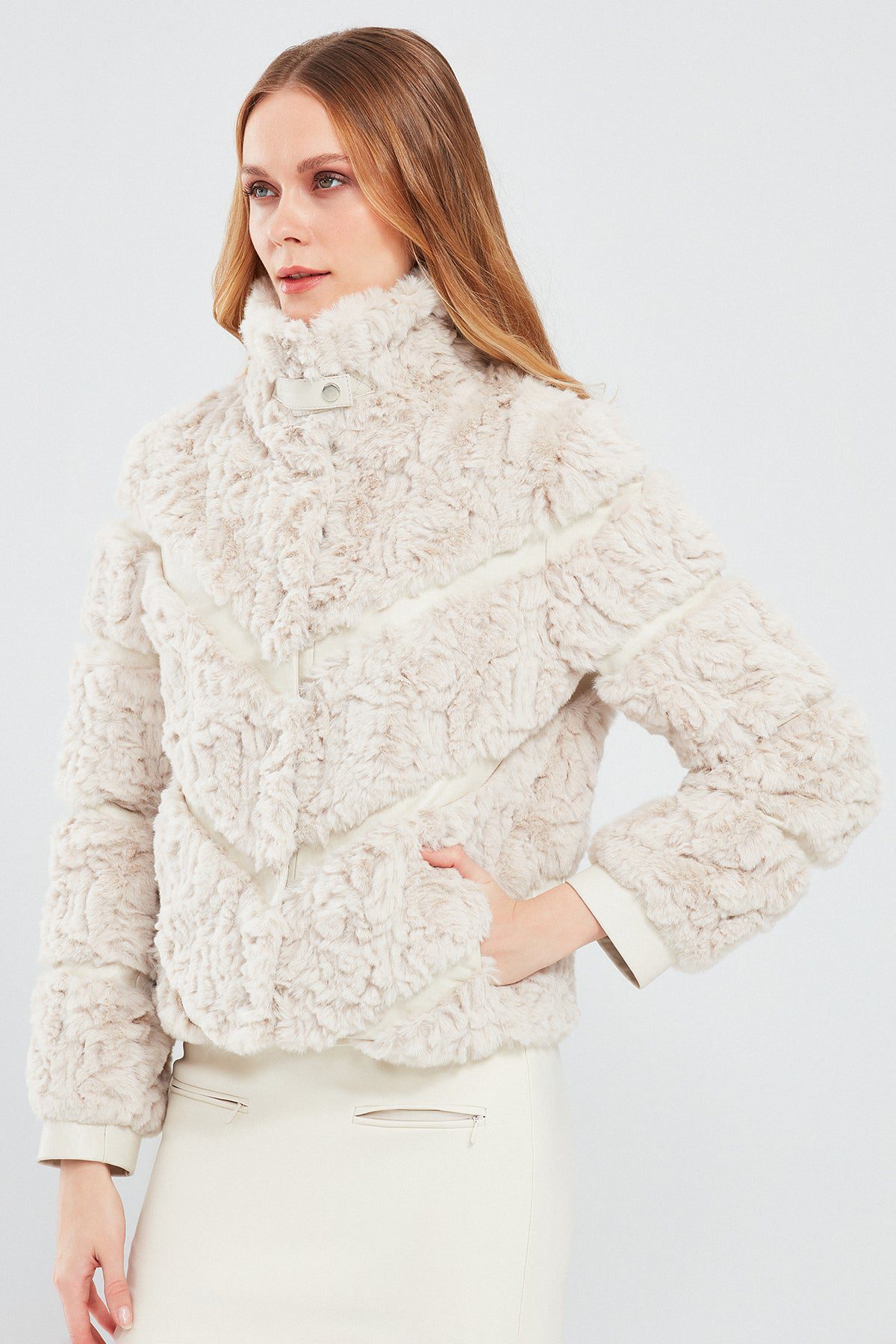 کت چرمی مخملی سفید زنانه ملروز دری مد
