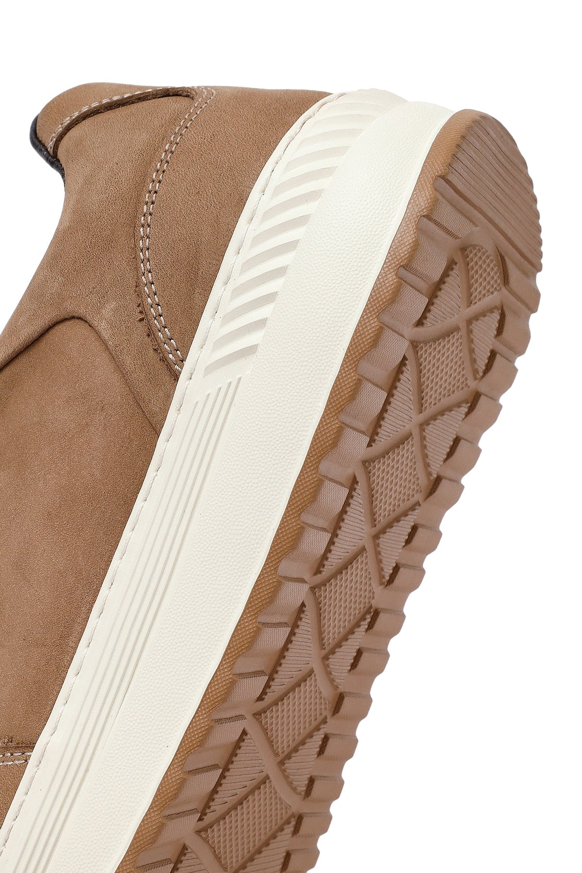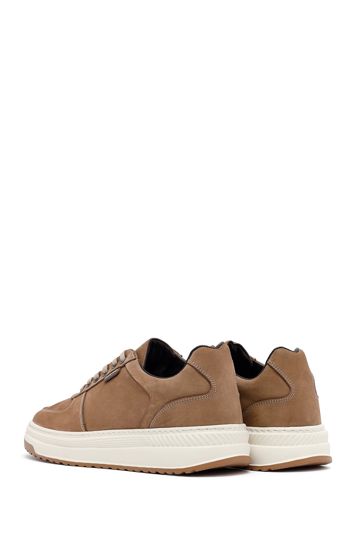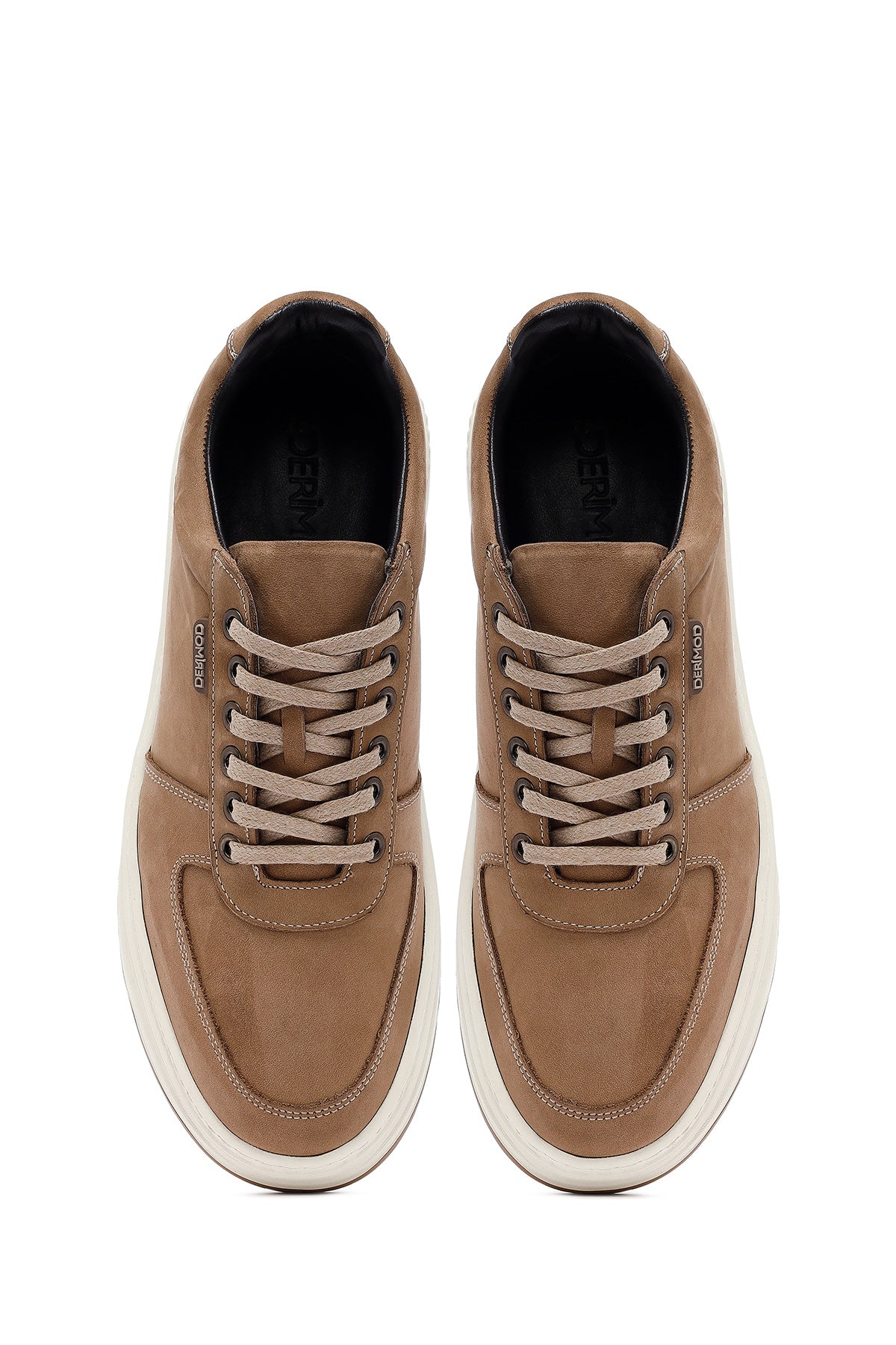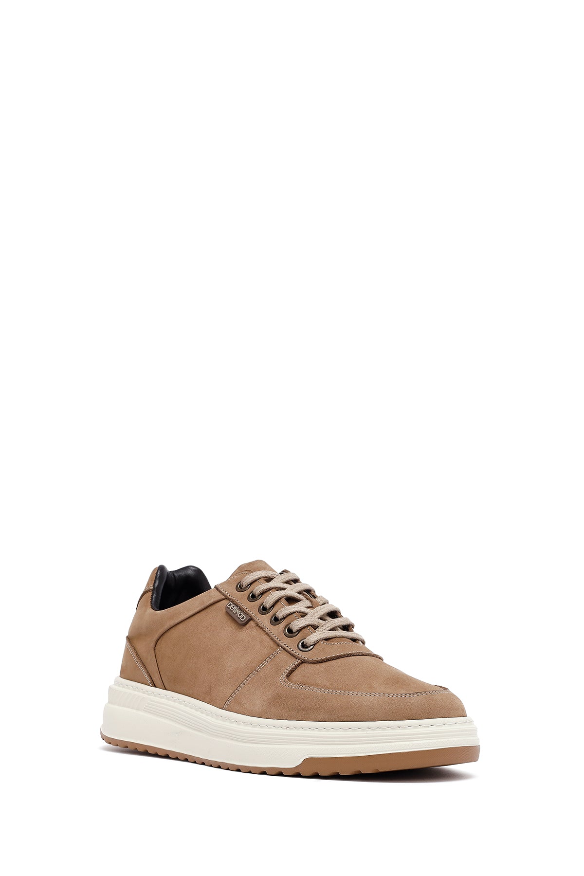 Erkek Bej Bağcıklı Kalın Tabanlı Nubuk Deri Sneaker