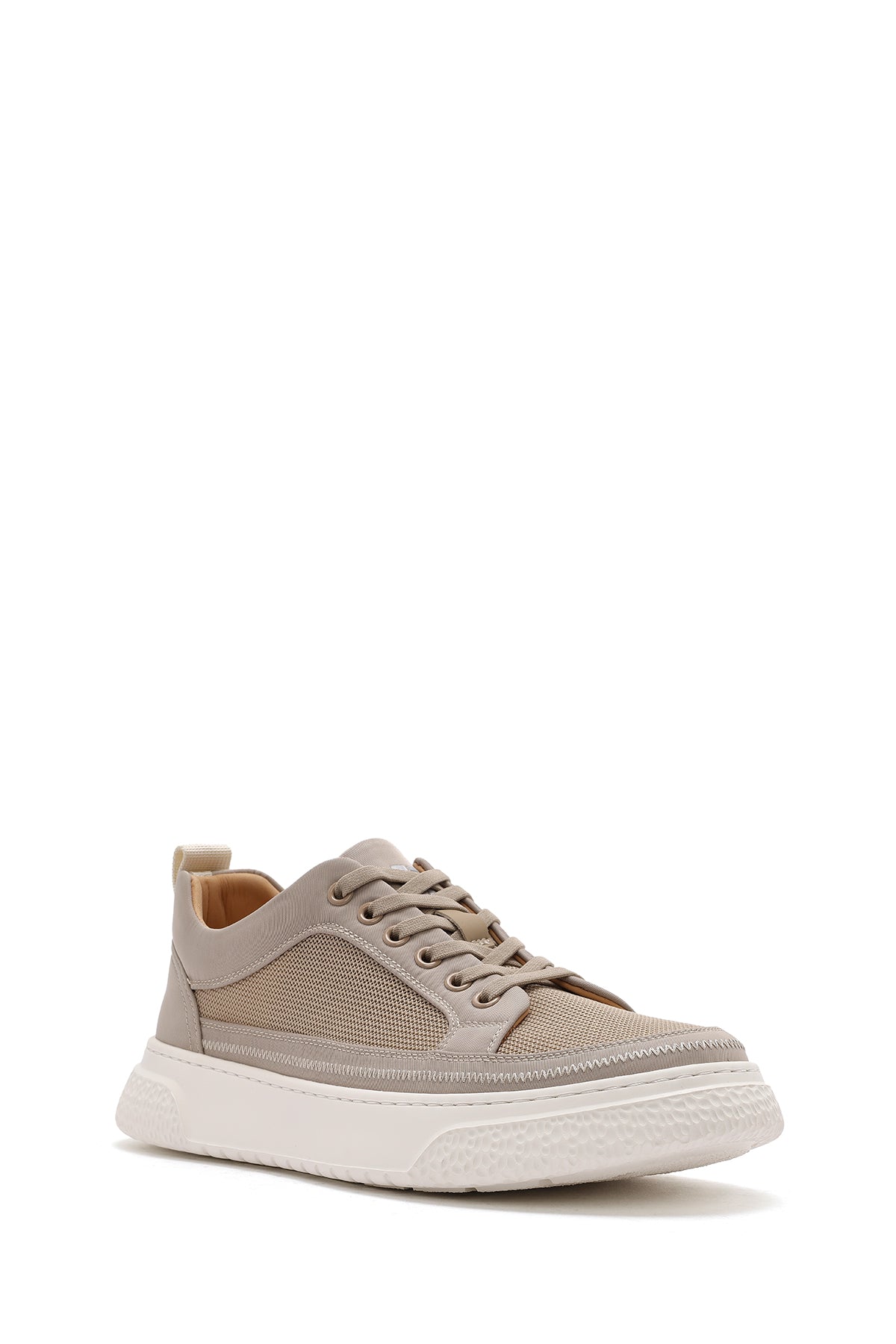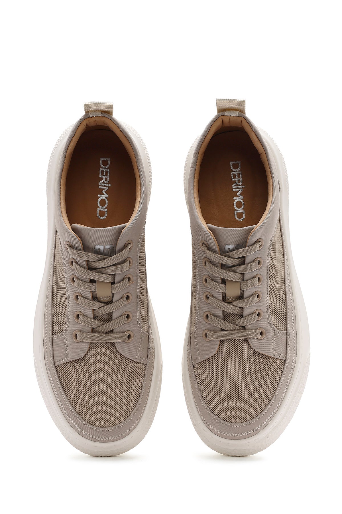 Erkek Bej Bağcıklı Kalın Tabanlı Sneaker