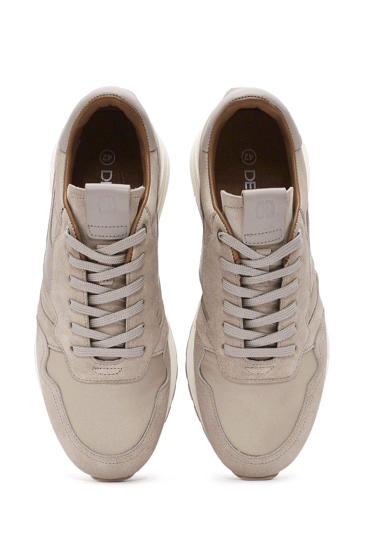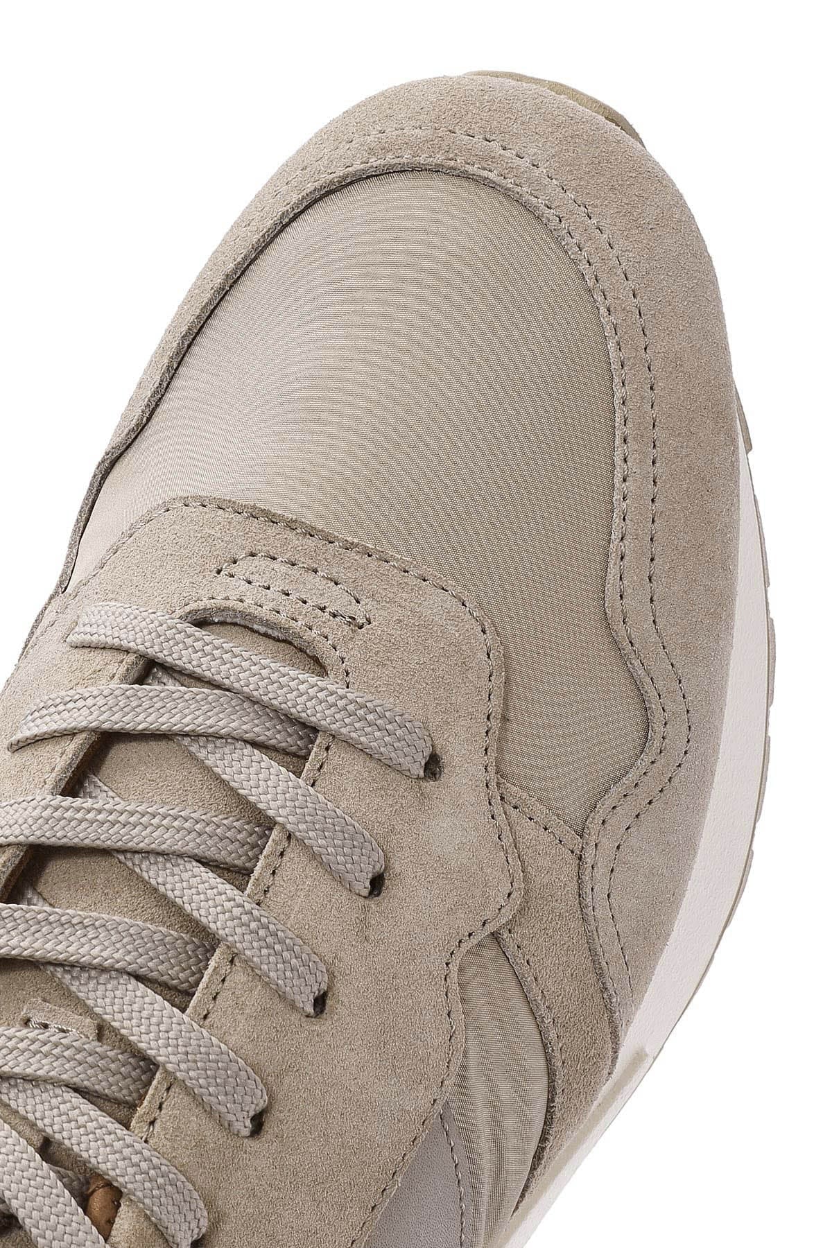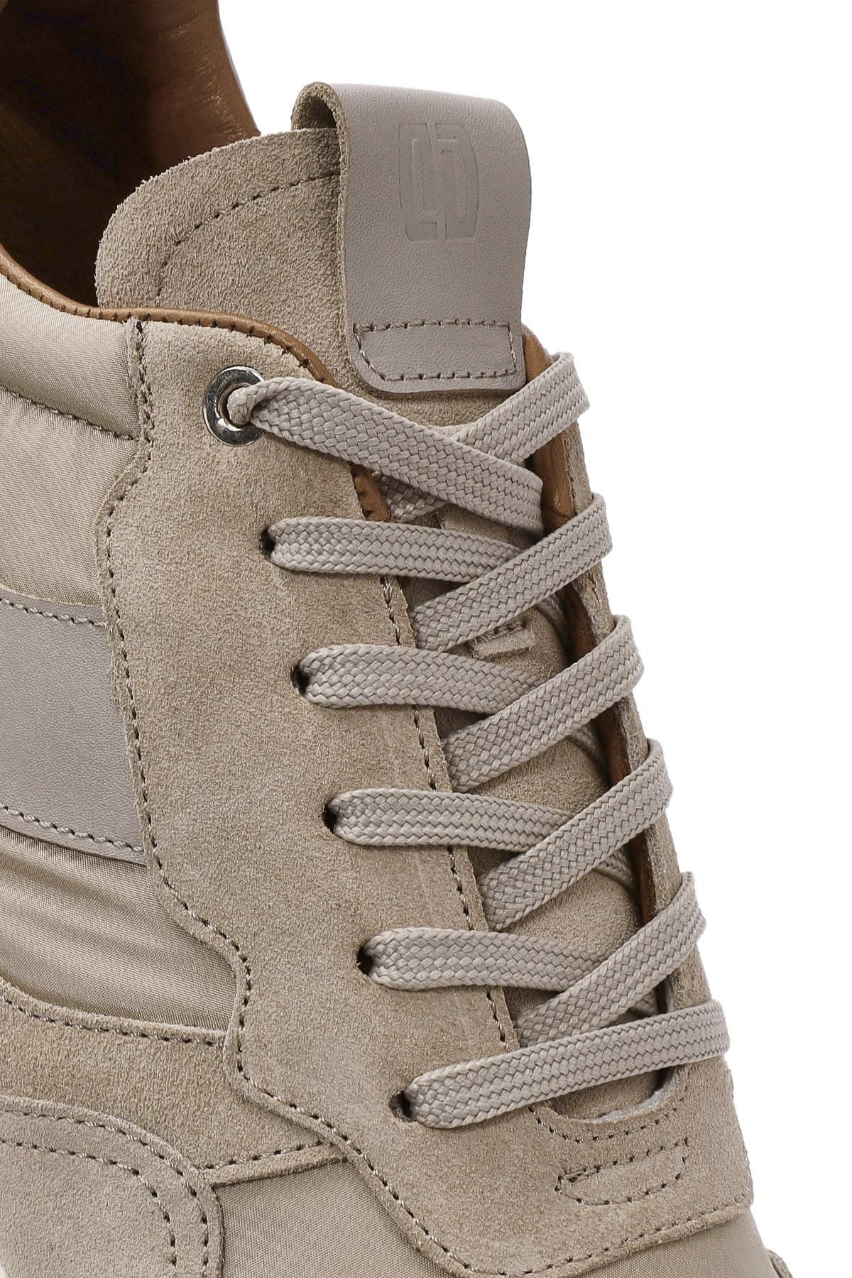 Erkek Bej Bağcıklı Deri Sneaker