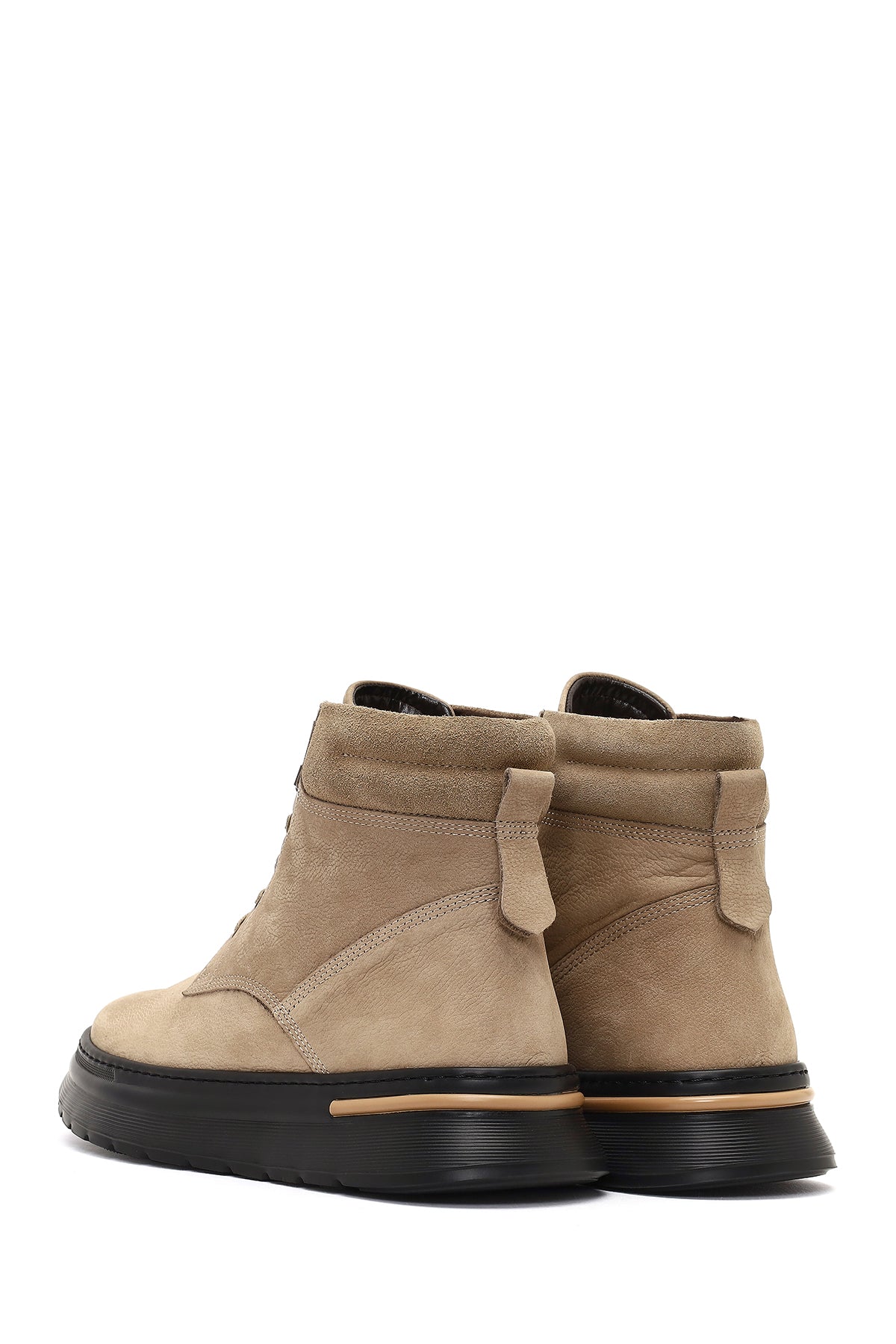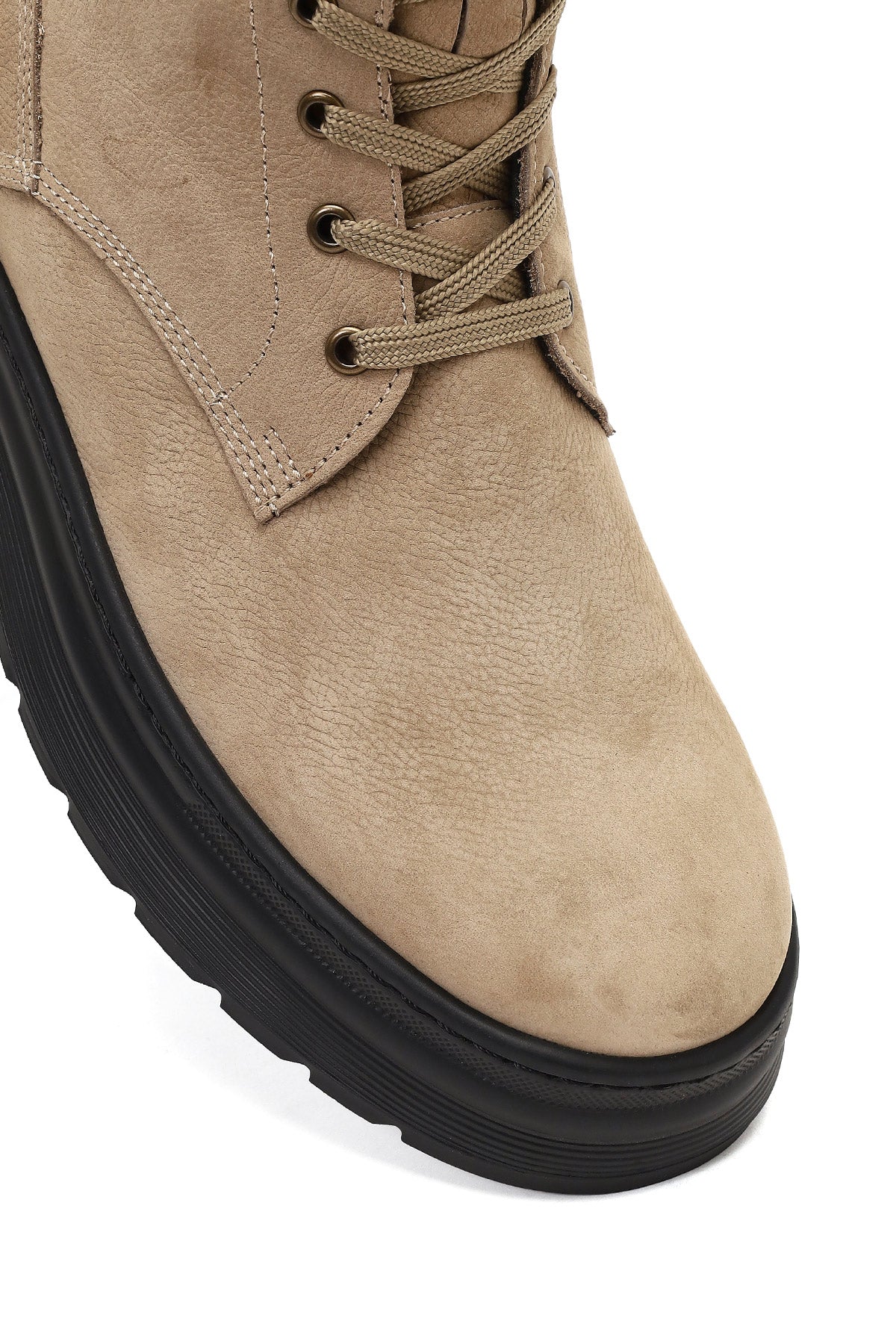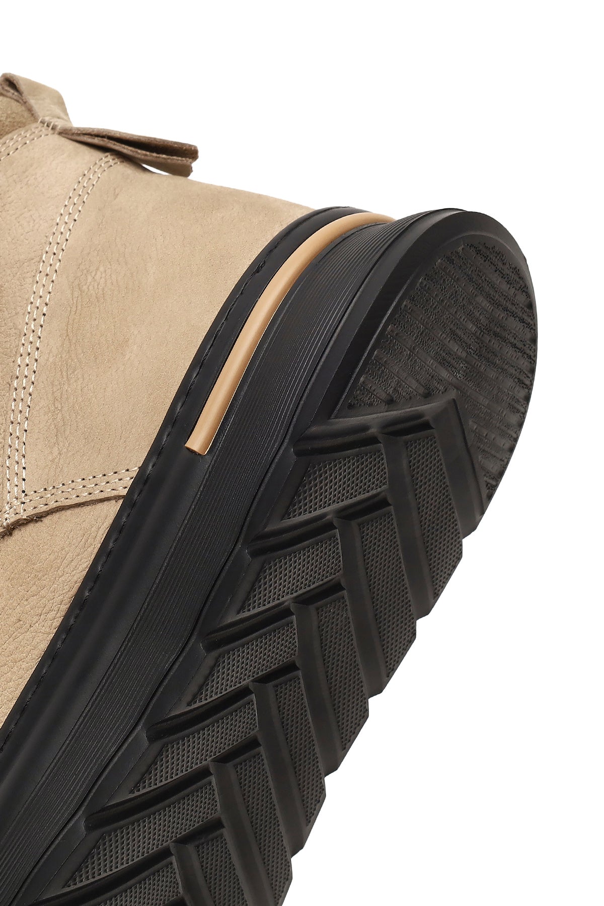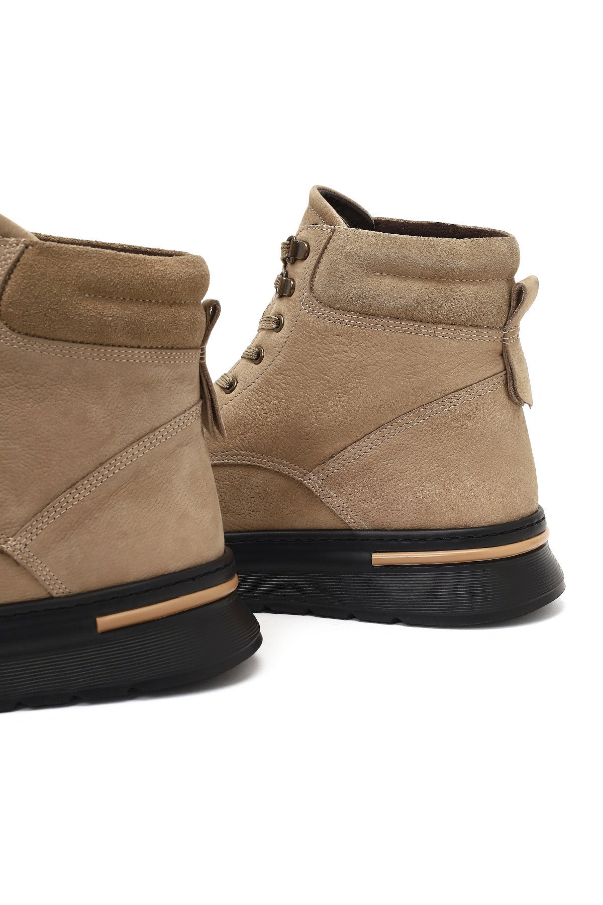 Erkek Bej Bağcıklı Kalın Tabanlı Nubuk Deri Bot