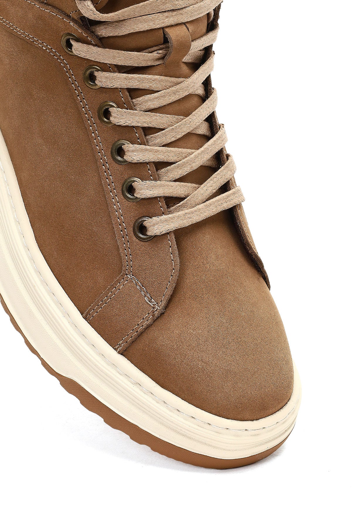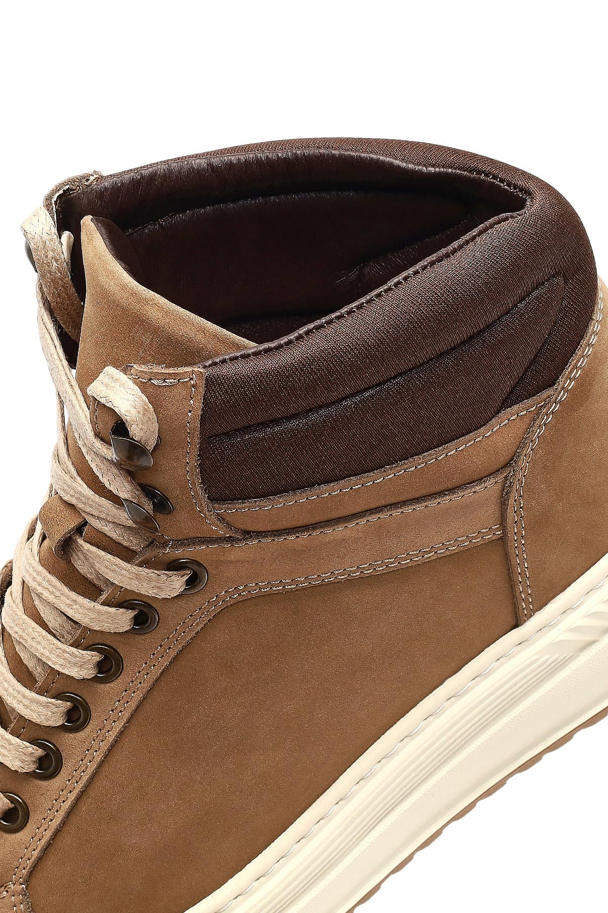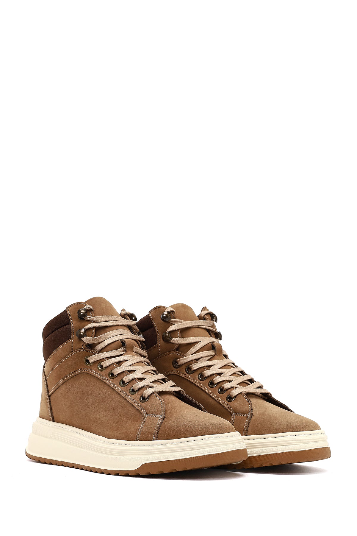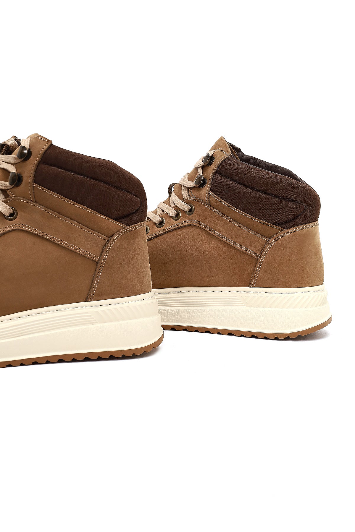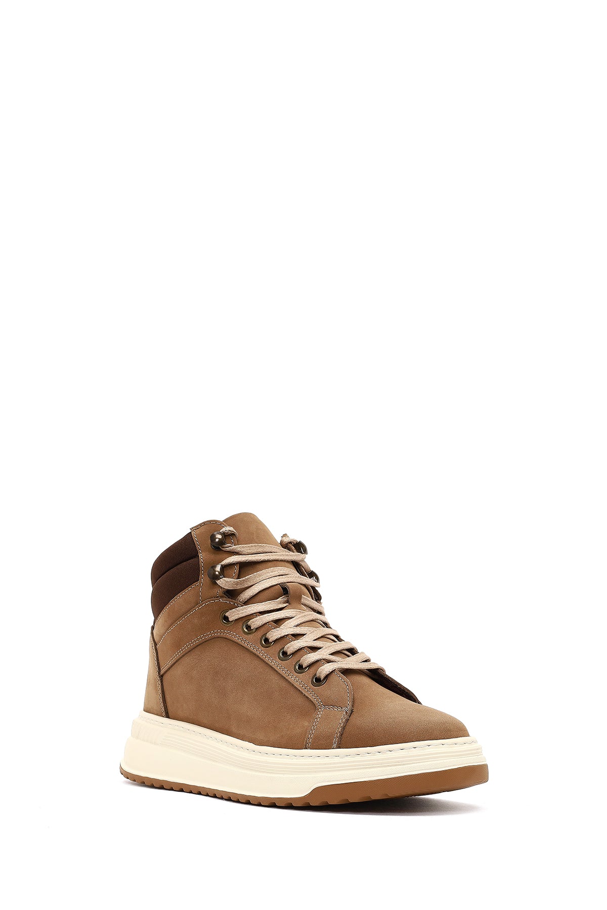 Erkek Bej Bağcıklı Kalın Tabanlı Nubuk Deri Spor Bot