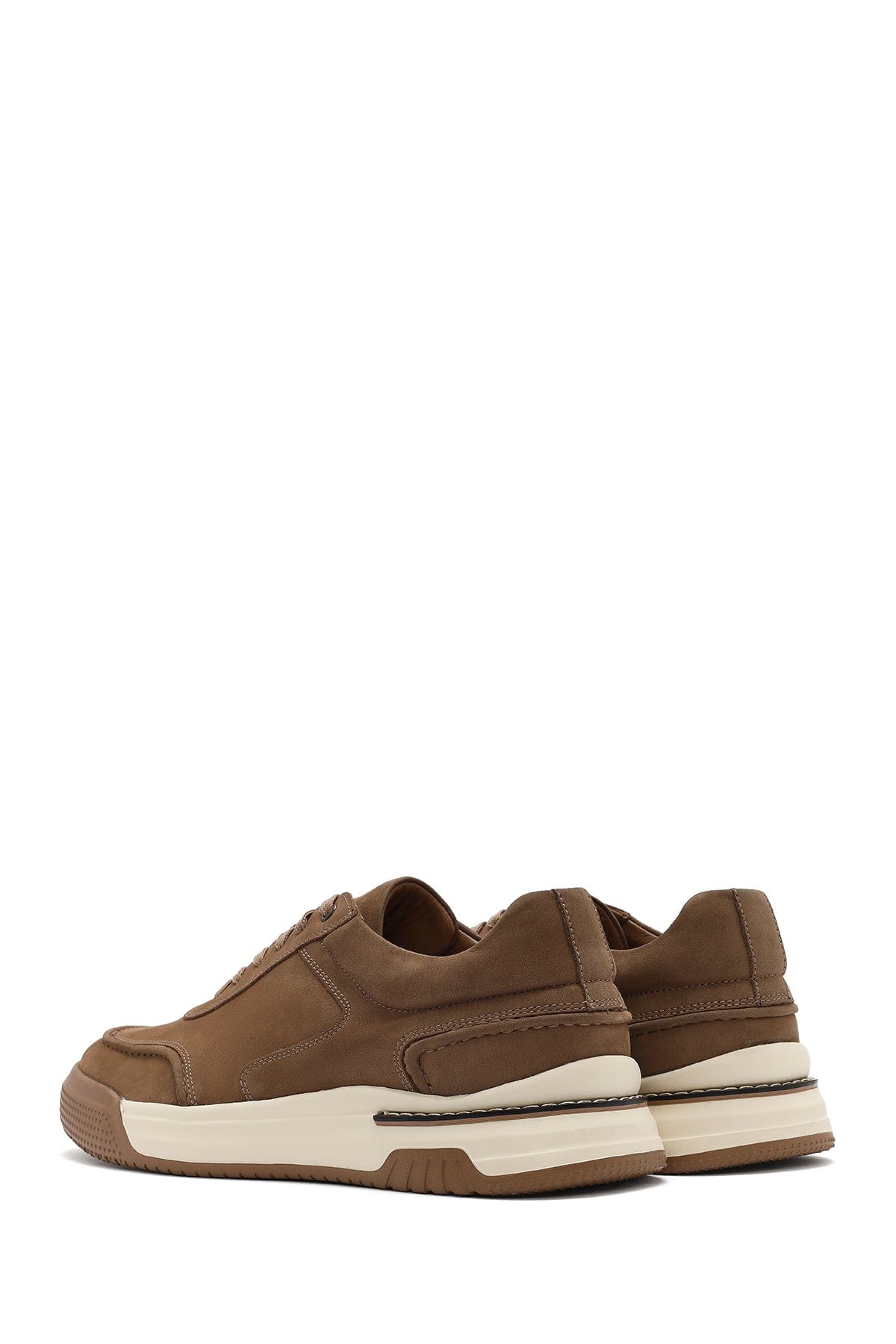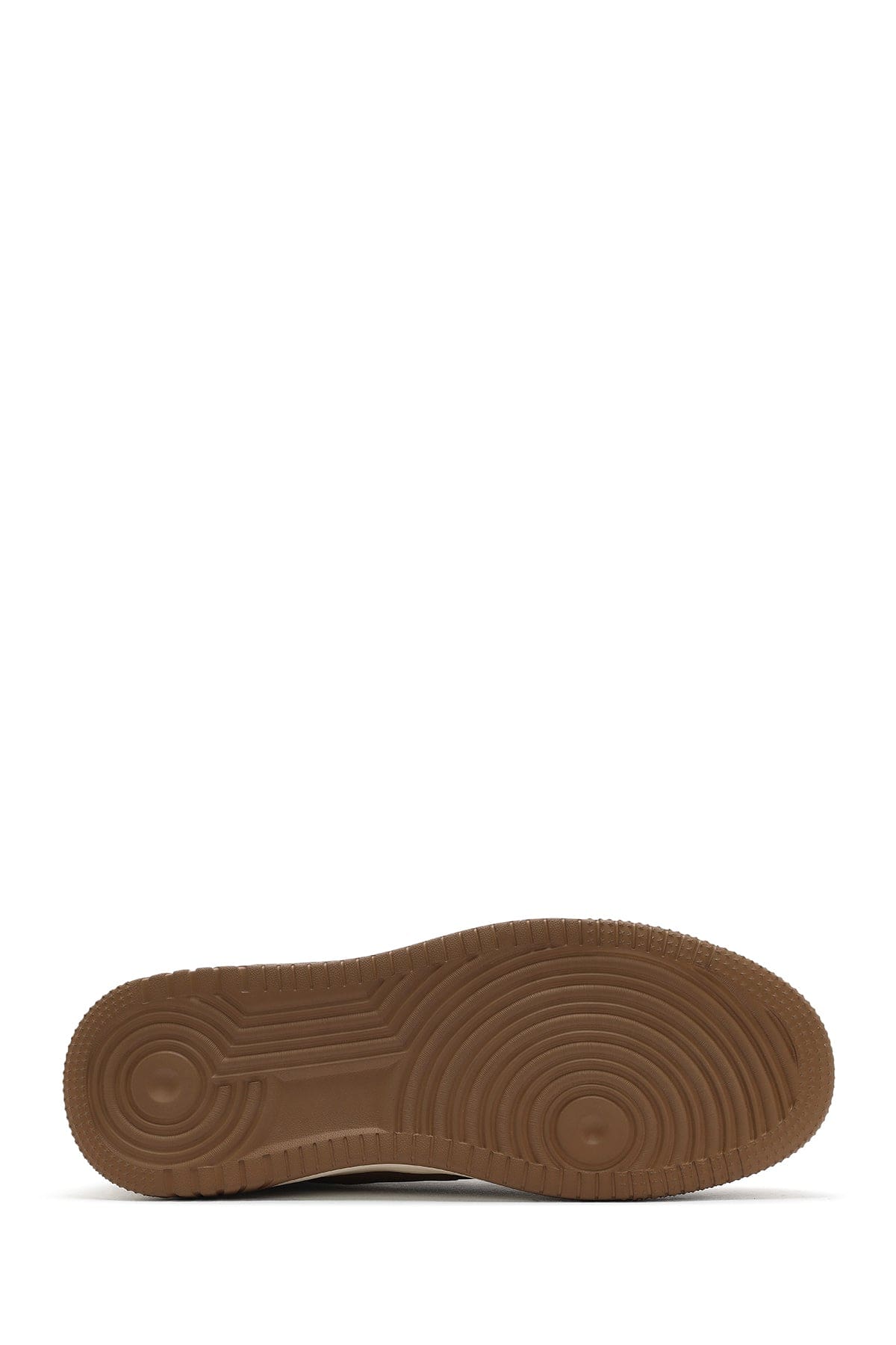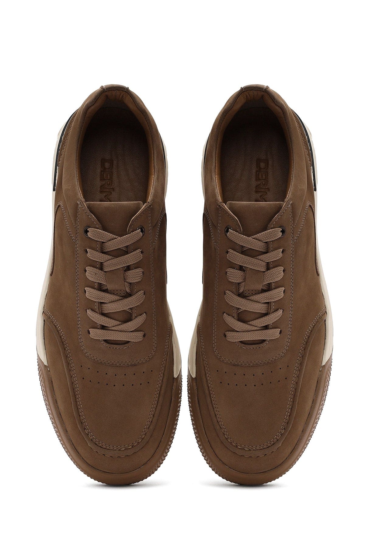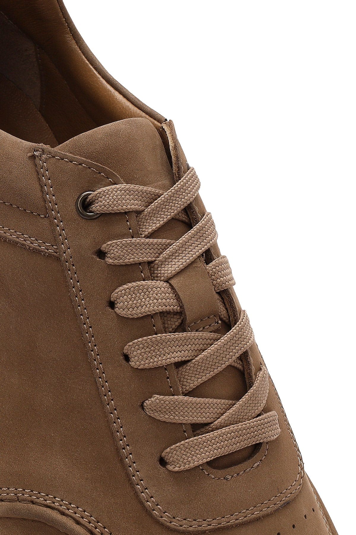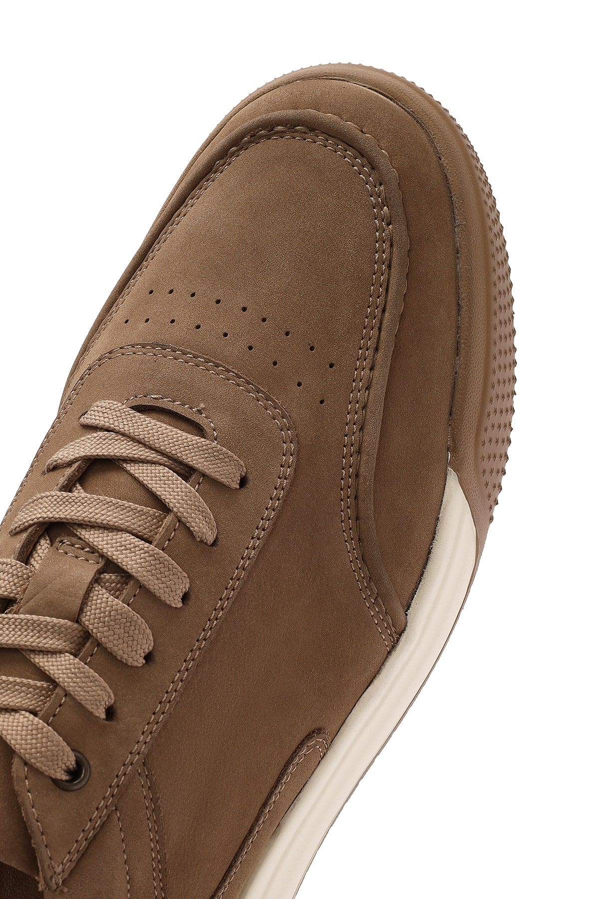 Erkek Bej Bağcıklı Kalın Tabanlı Nubuk Deri Sneaker