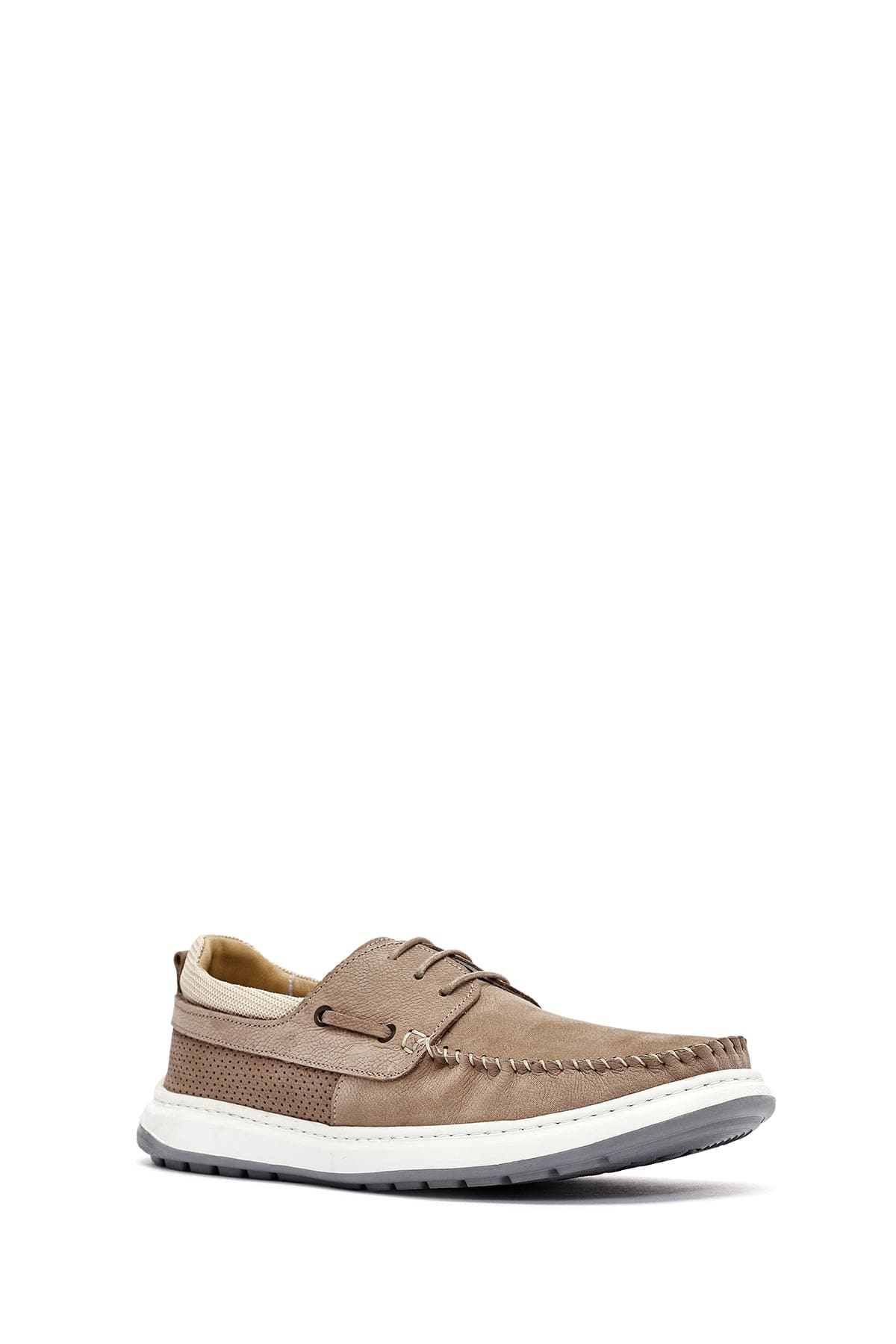 Erkek Bej Bağcıklı Nubuk Deri Casual Ayakkabı