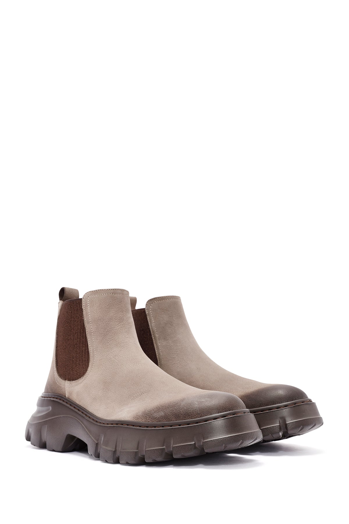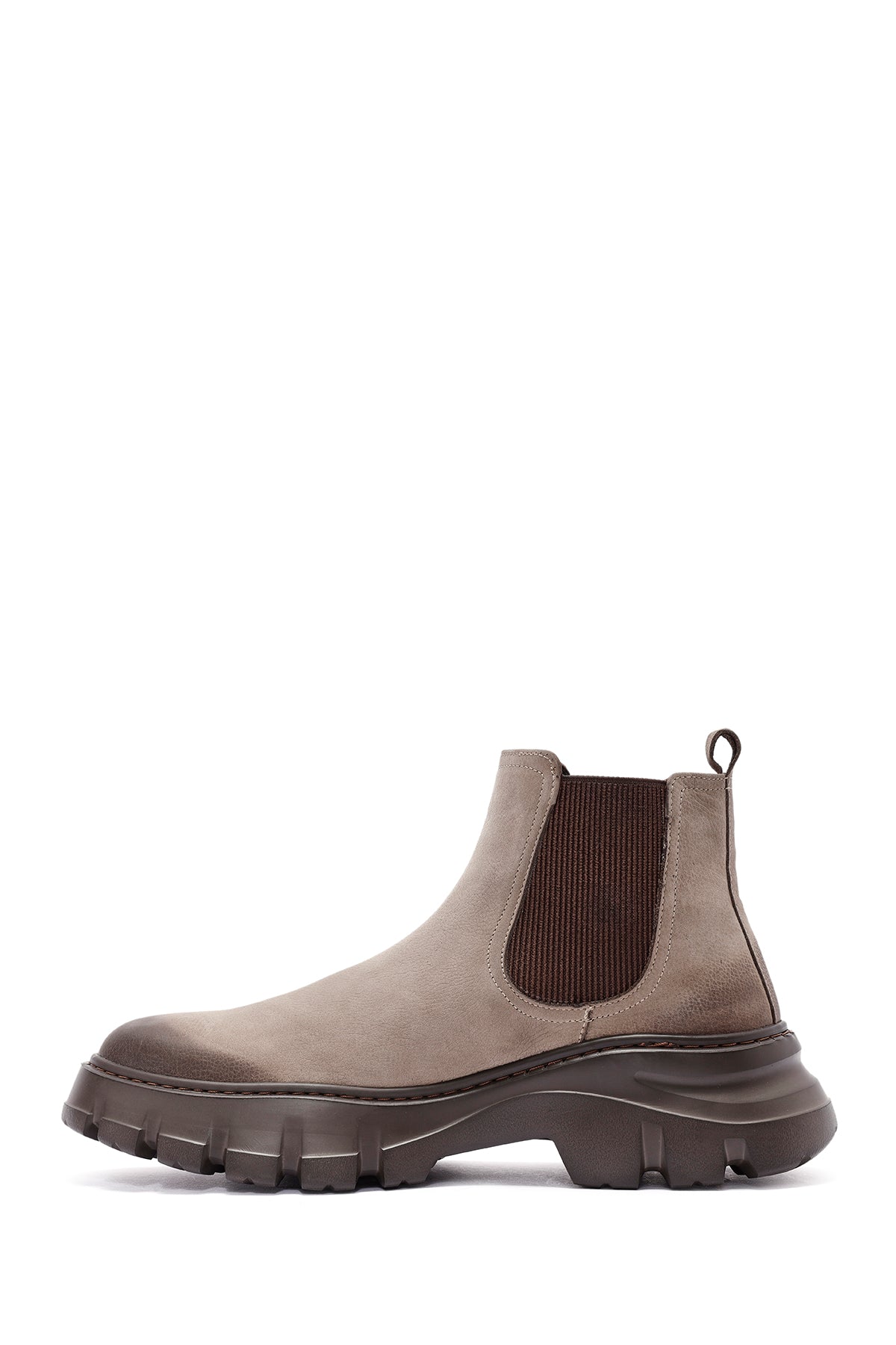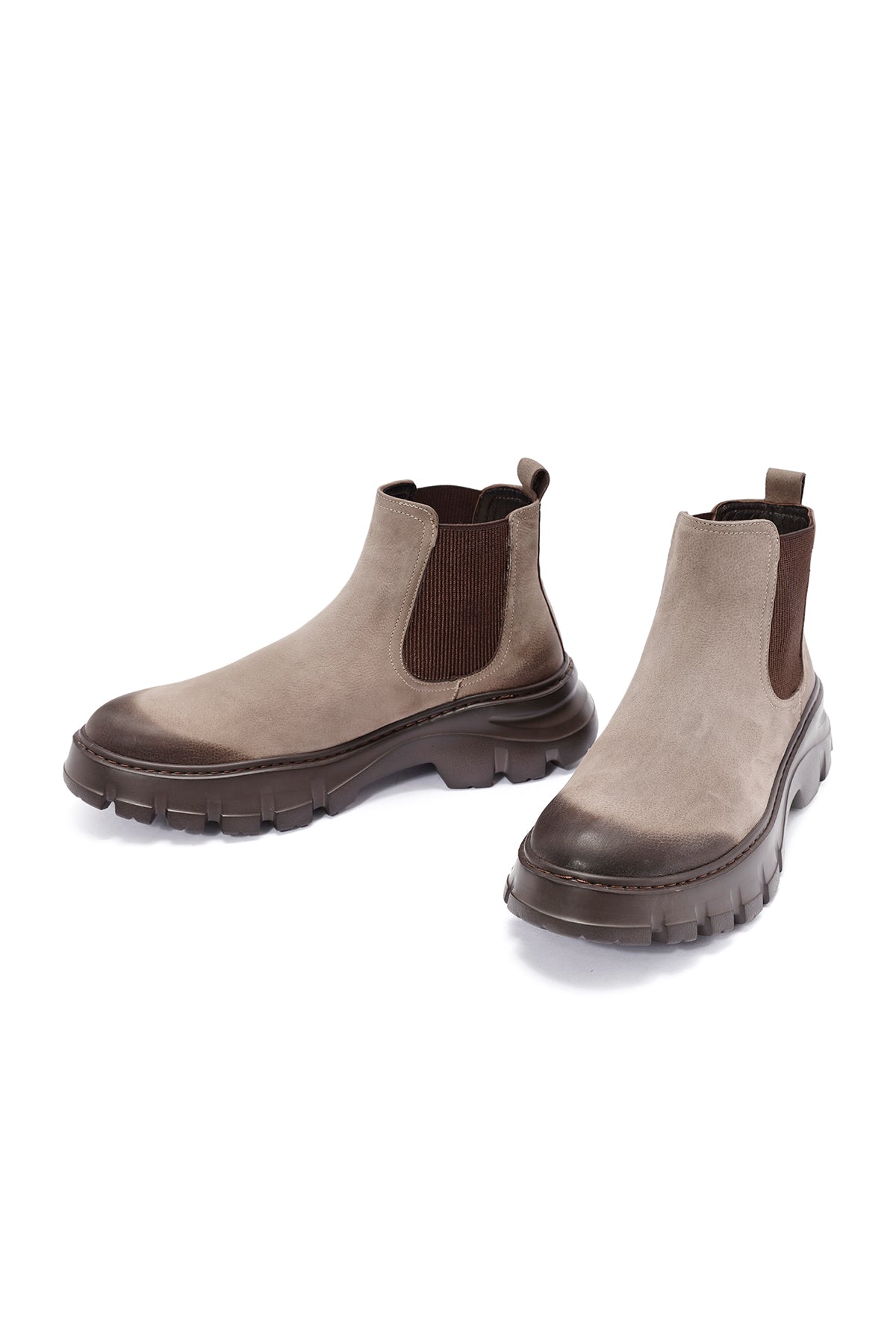 بوت مردانه چرمی نوبوک بژ چلسی دری مد