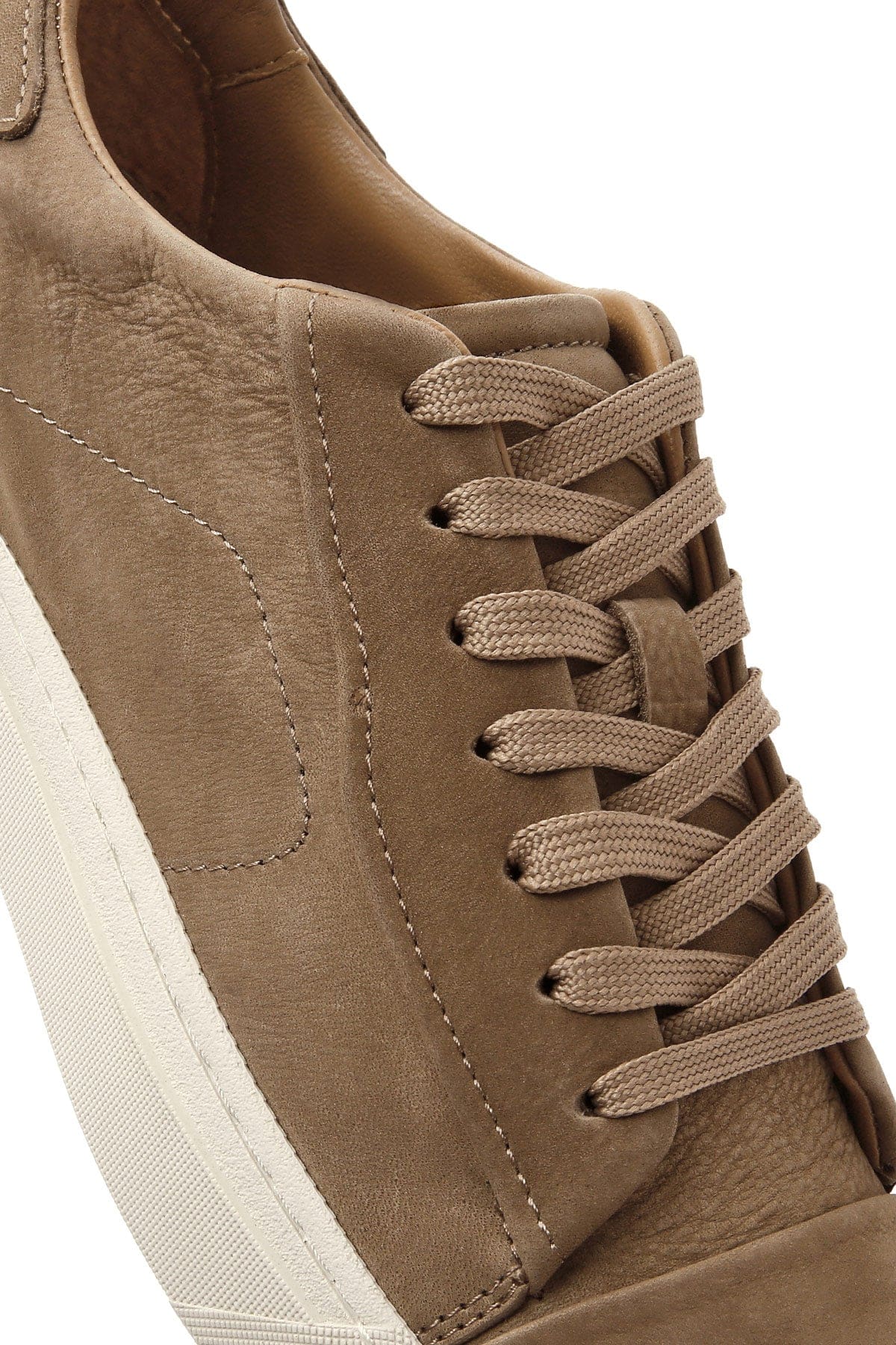 Erkek Bej Bağcıklı Nubuk Deri Sneaker