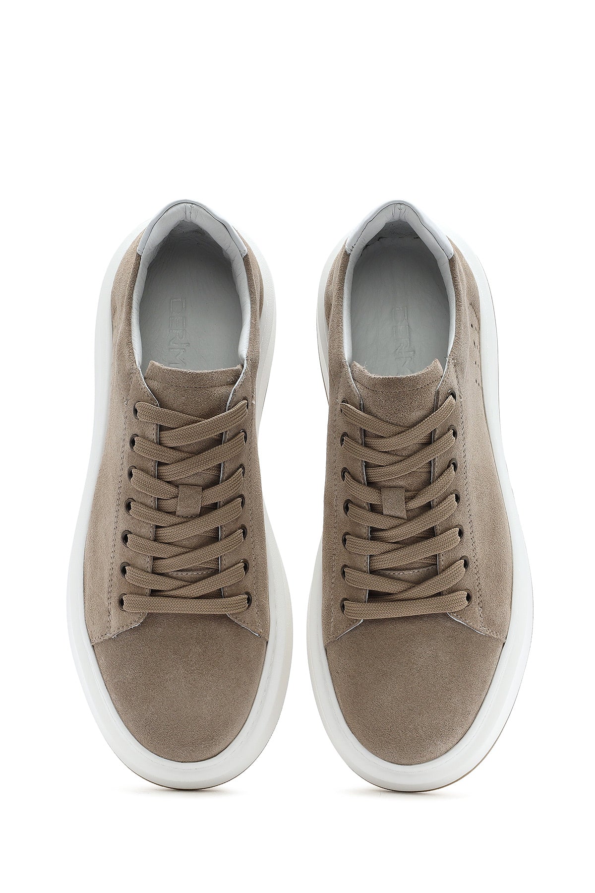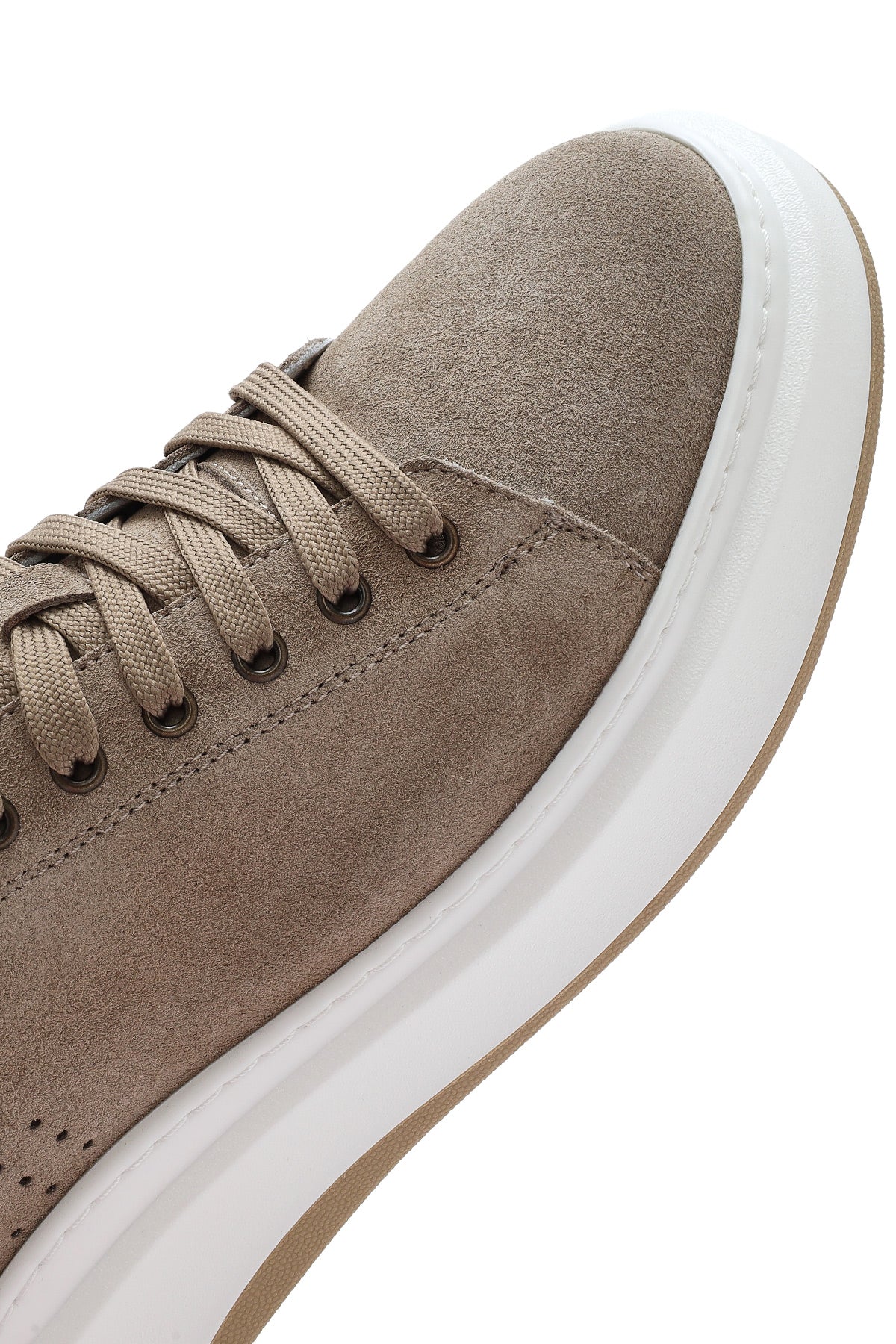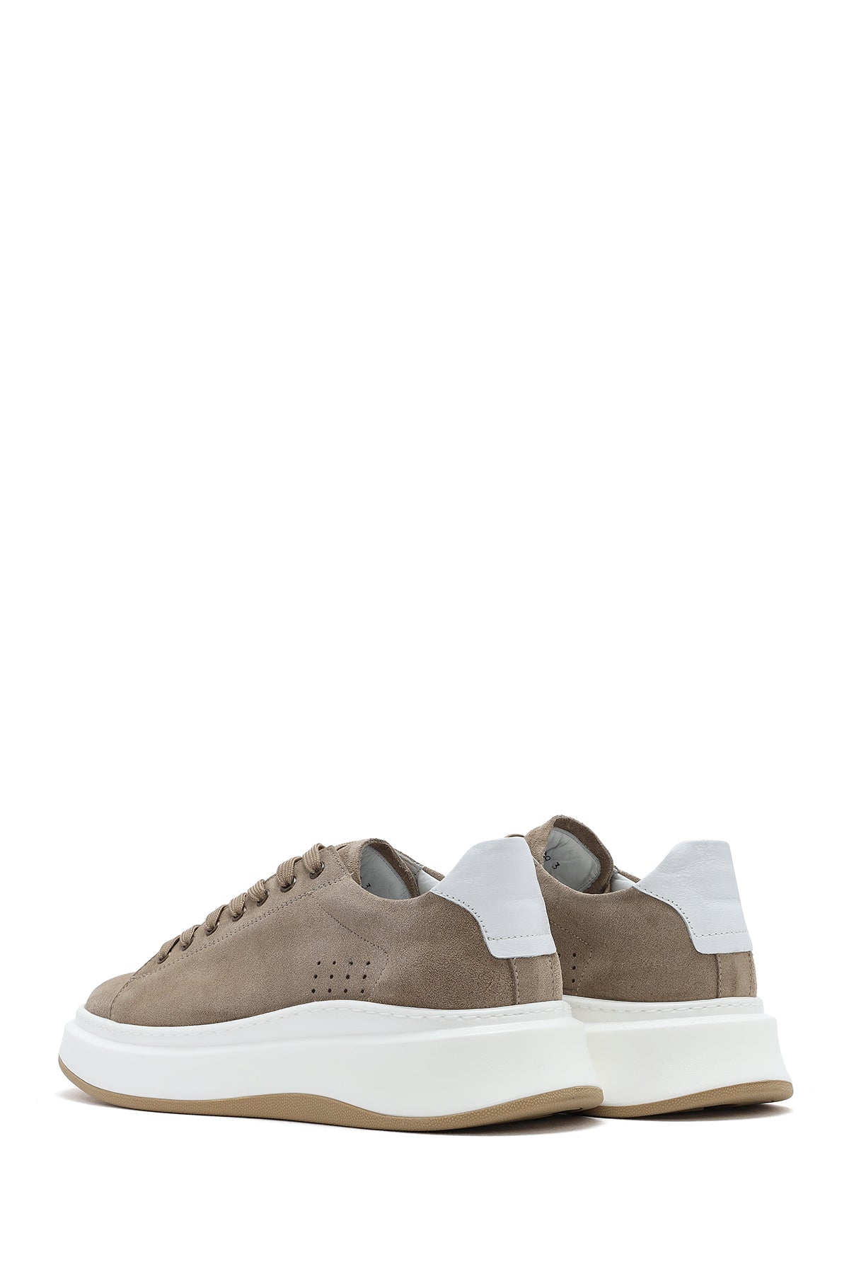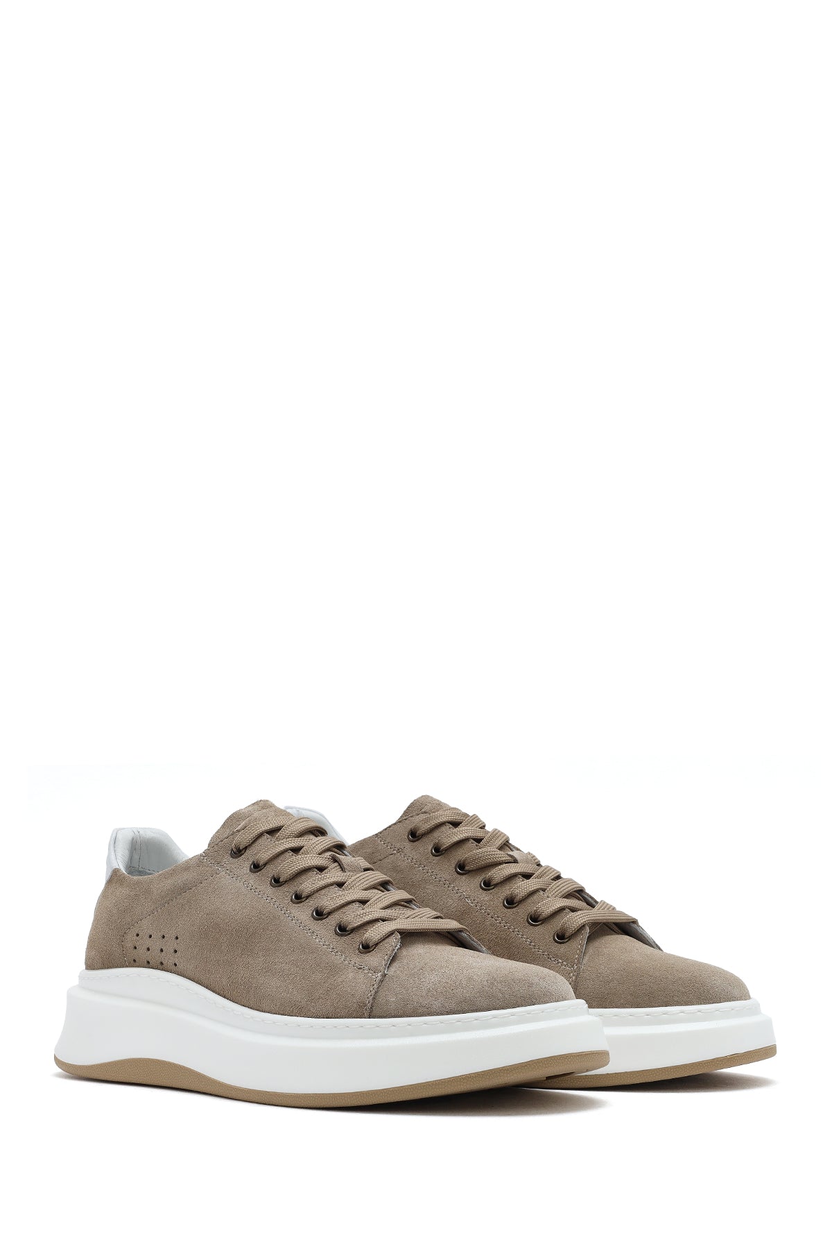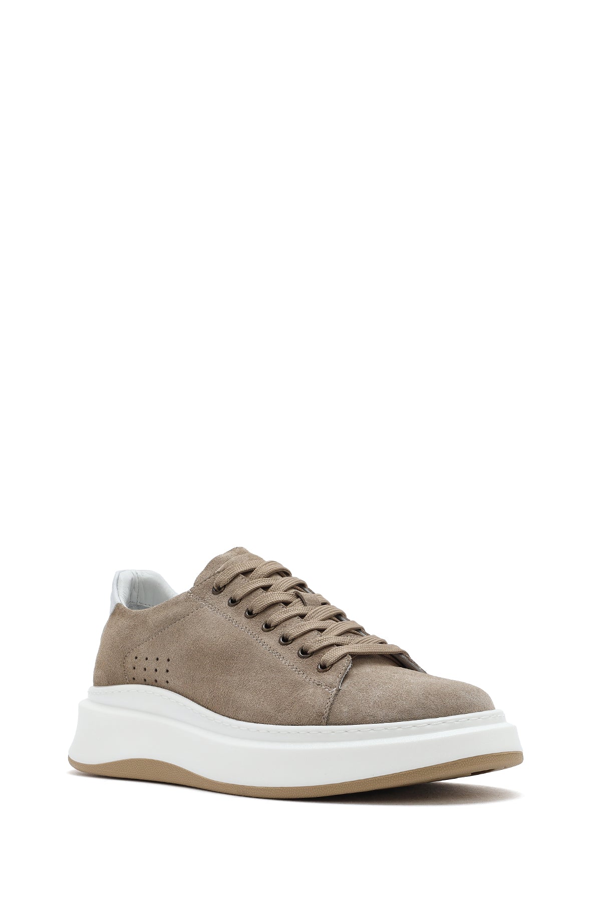 Erkek Bej Bağcıklı Kalın Tabanlı Nubuk Deri Sneaker