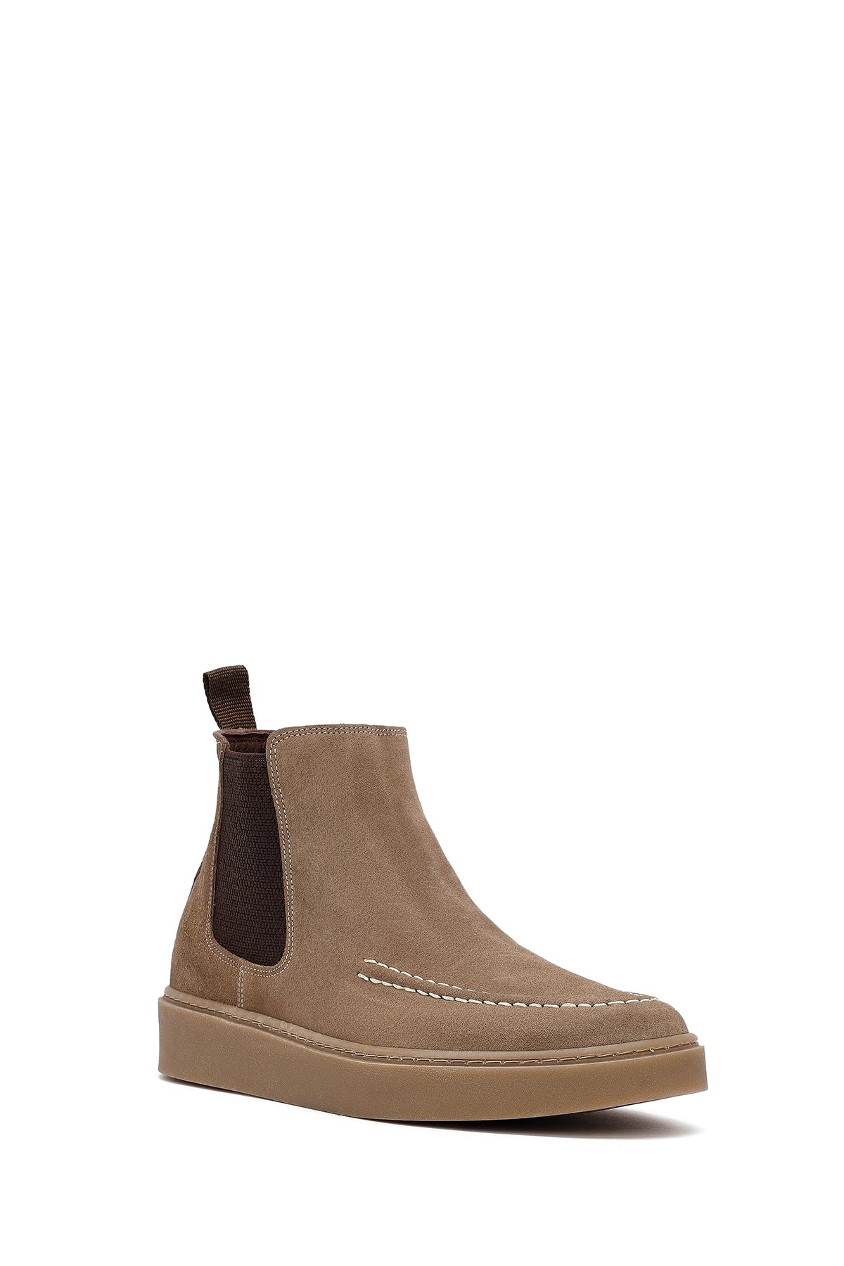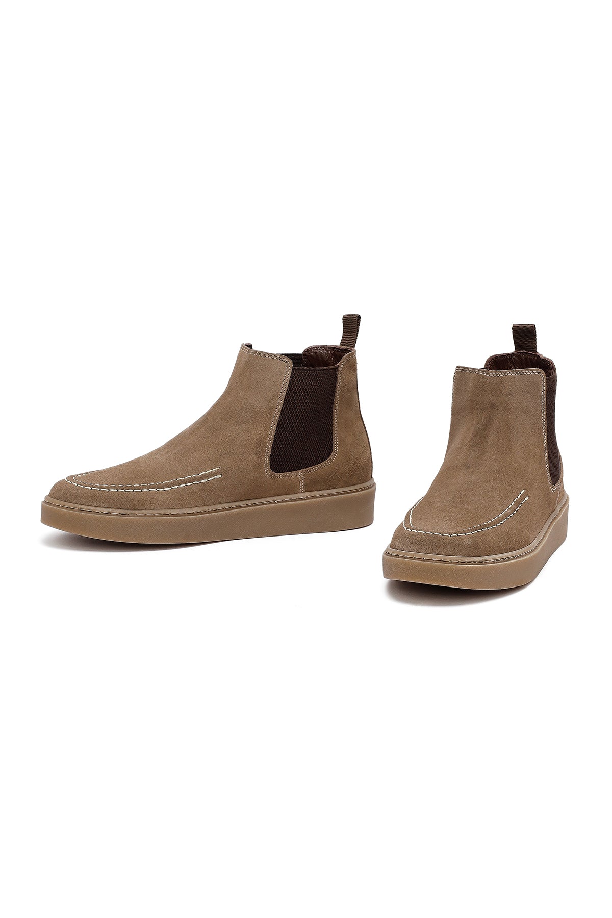 بوت مردانه چرمی بژ جیر چلسی دری مد