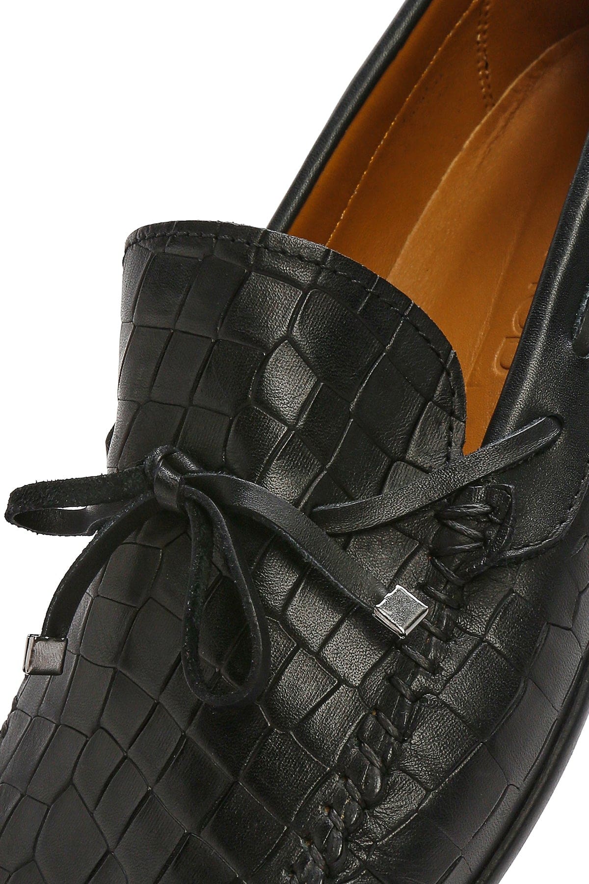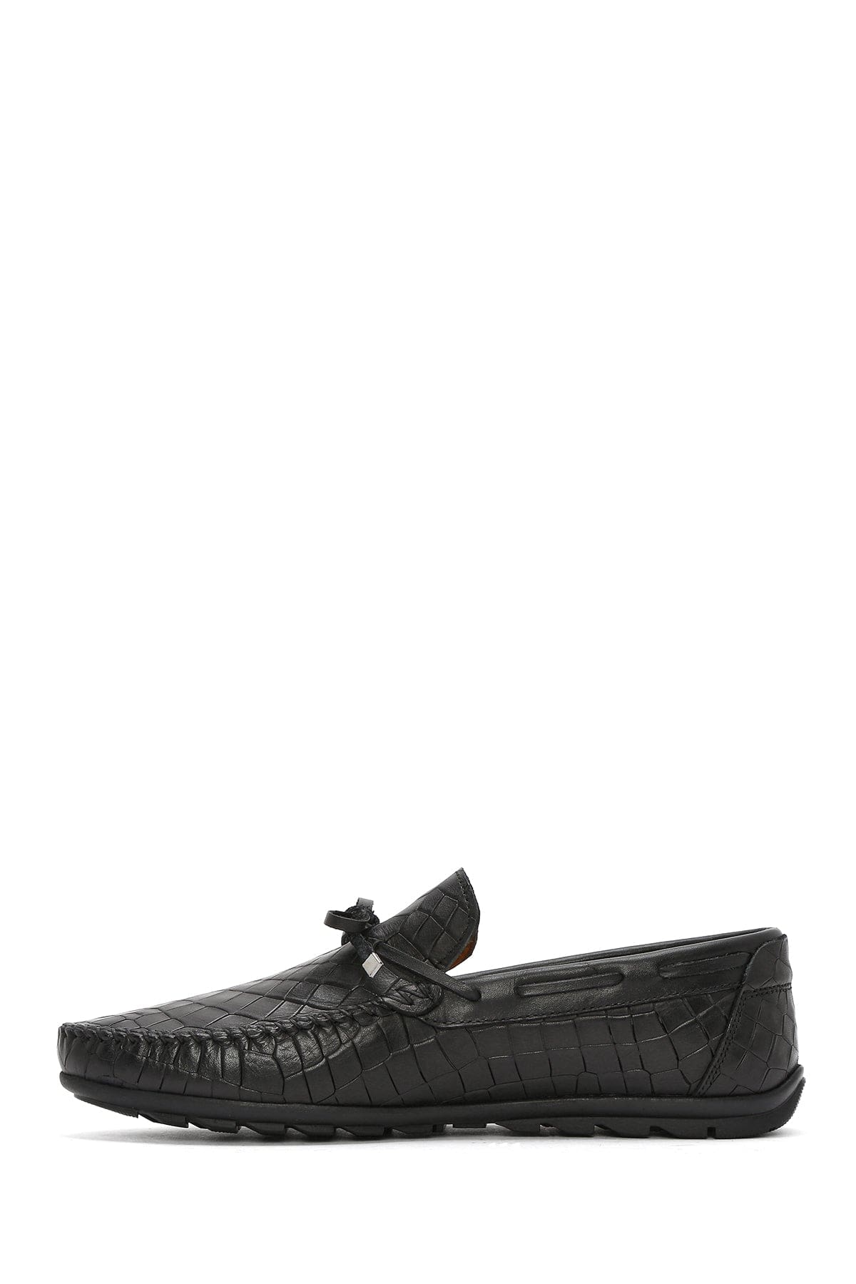 Erkek Siyah Kroko Desenli Deri Casual Loafer