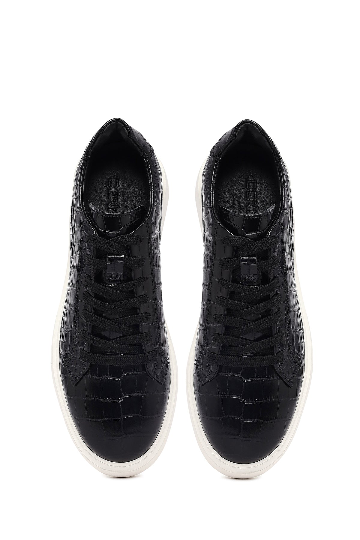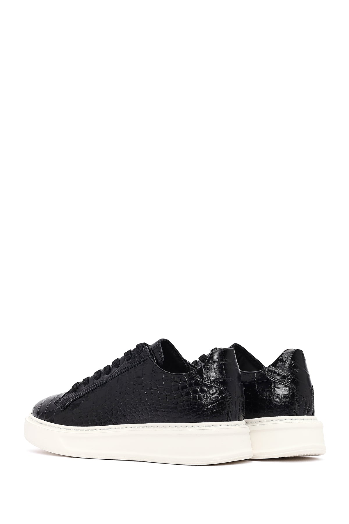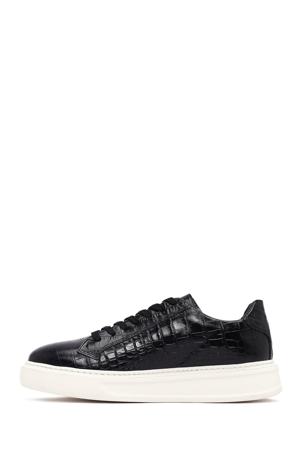 Erkek Siyah Kroko Bağcıklı Deri Sneaker
