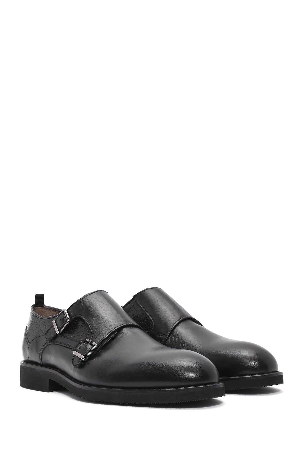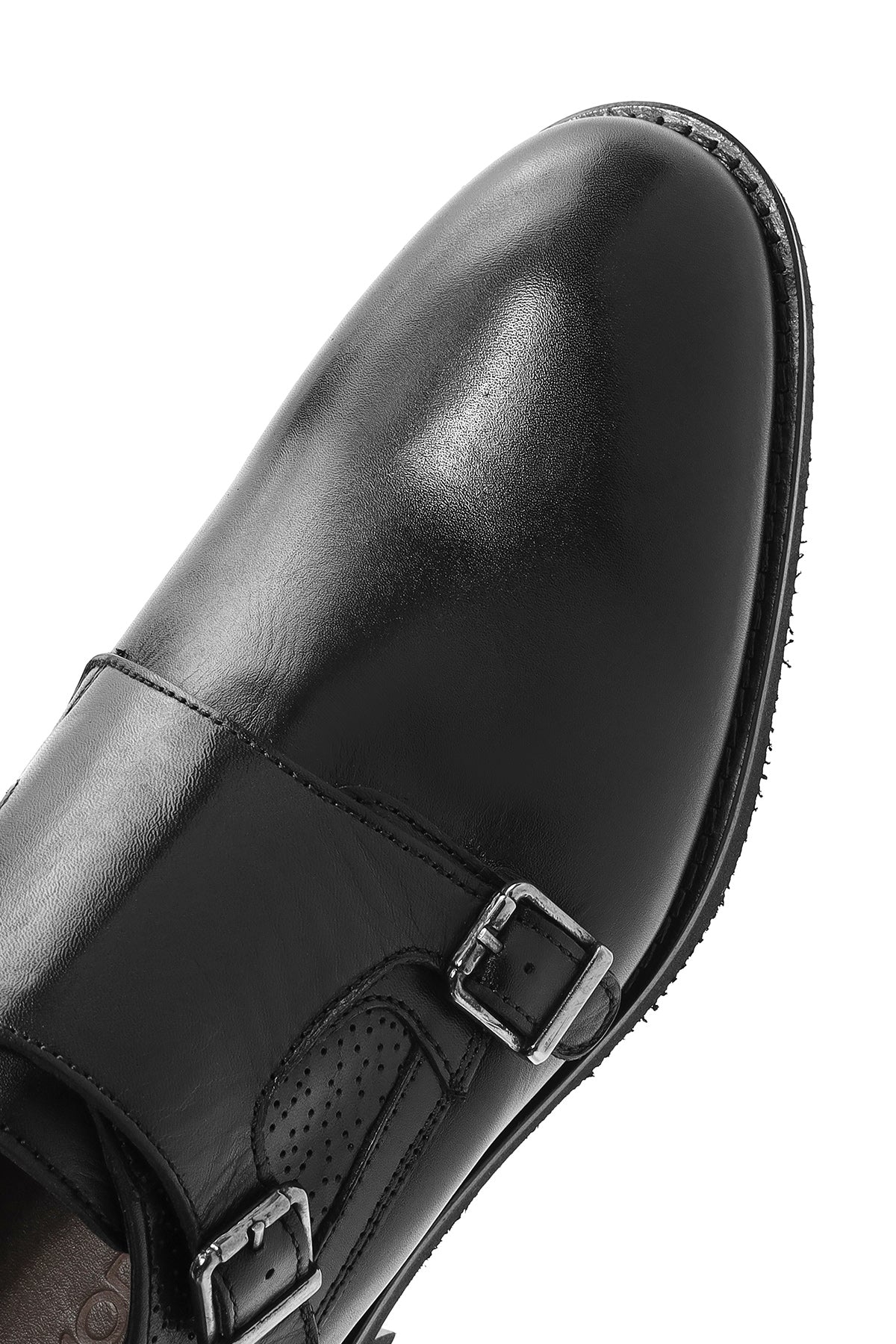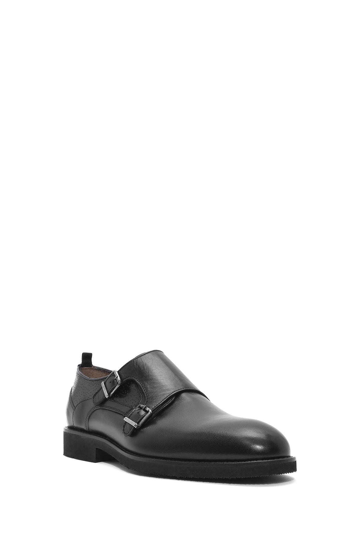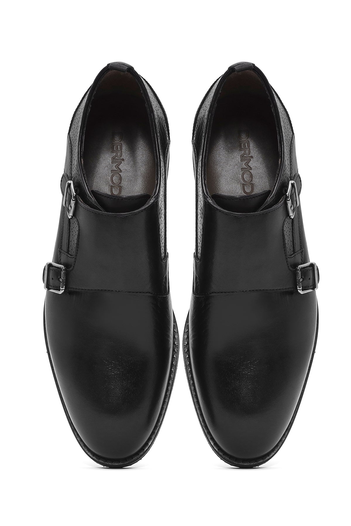 Erkek Siyah Çift Tokalı Deri Klasik Ayakkabı