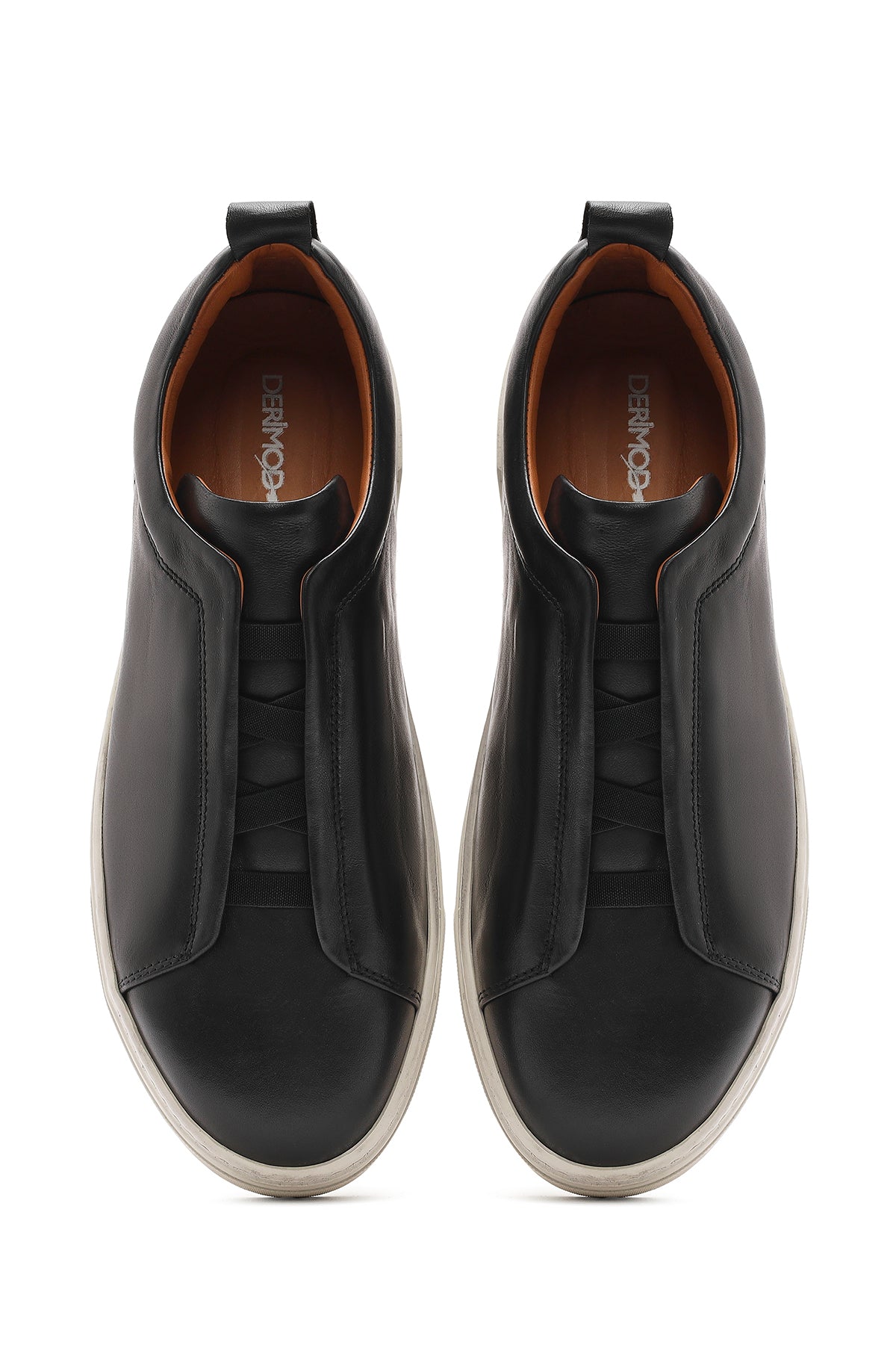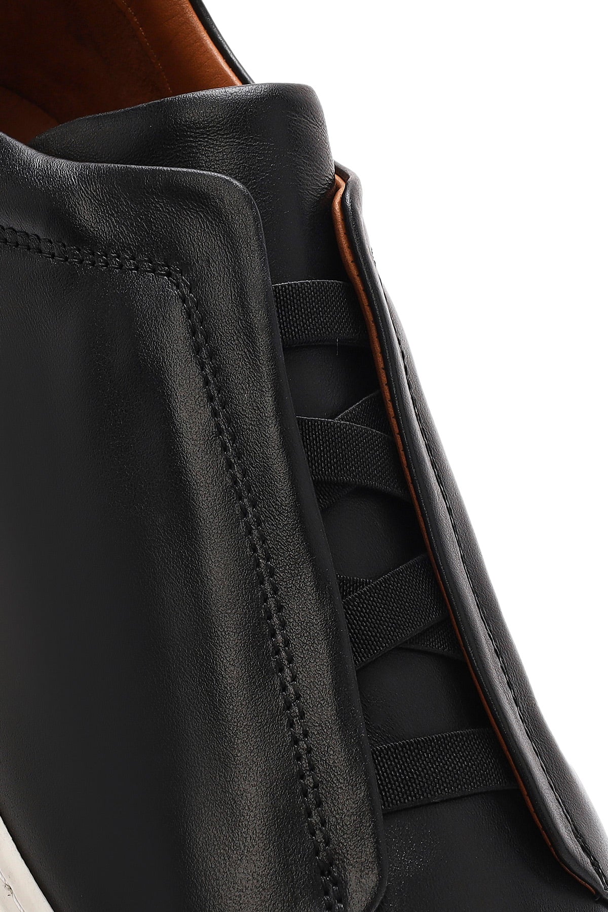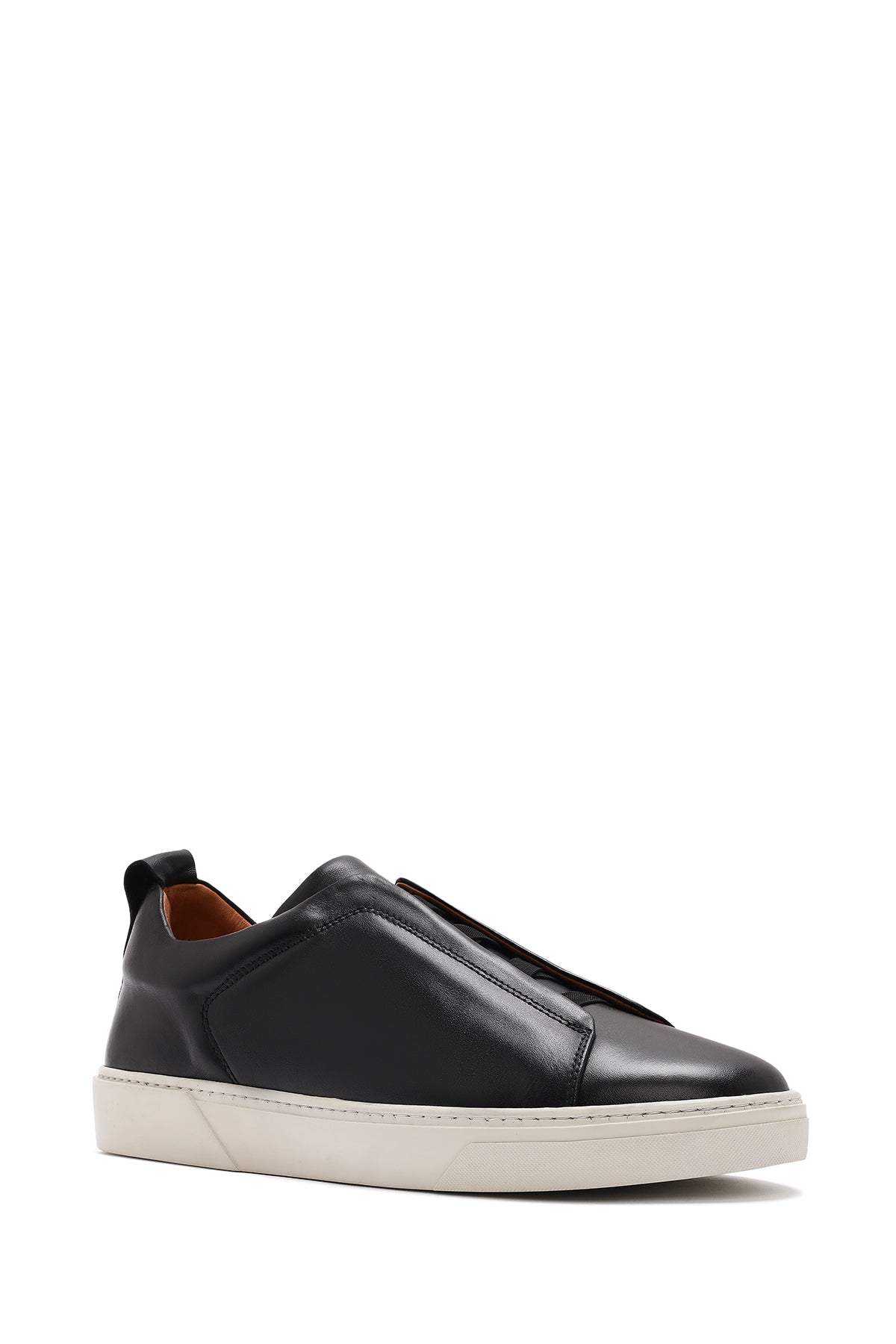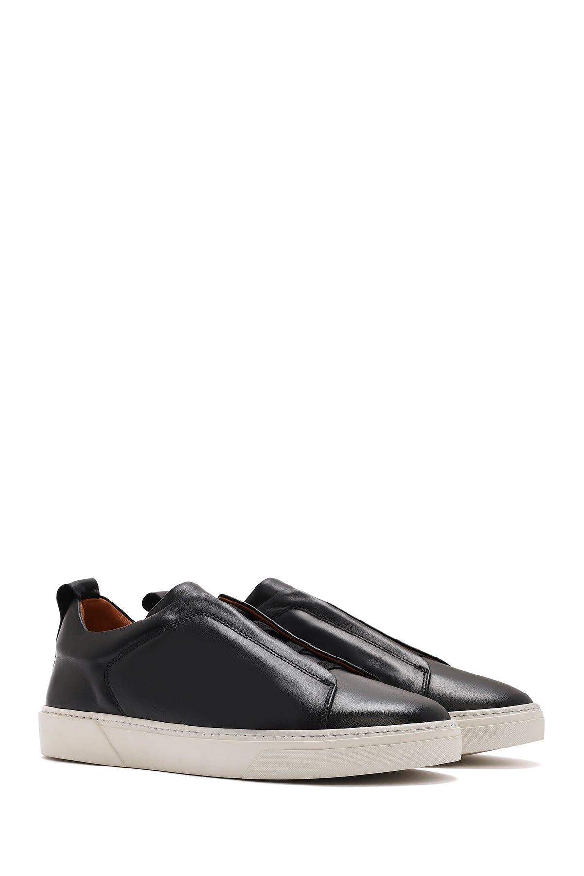 Erkek Siyah Lastikli Deri Sneaker