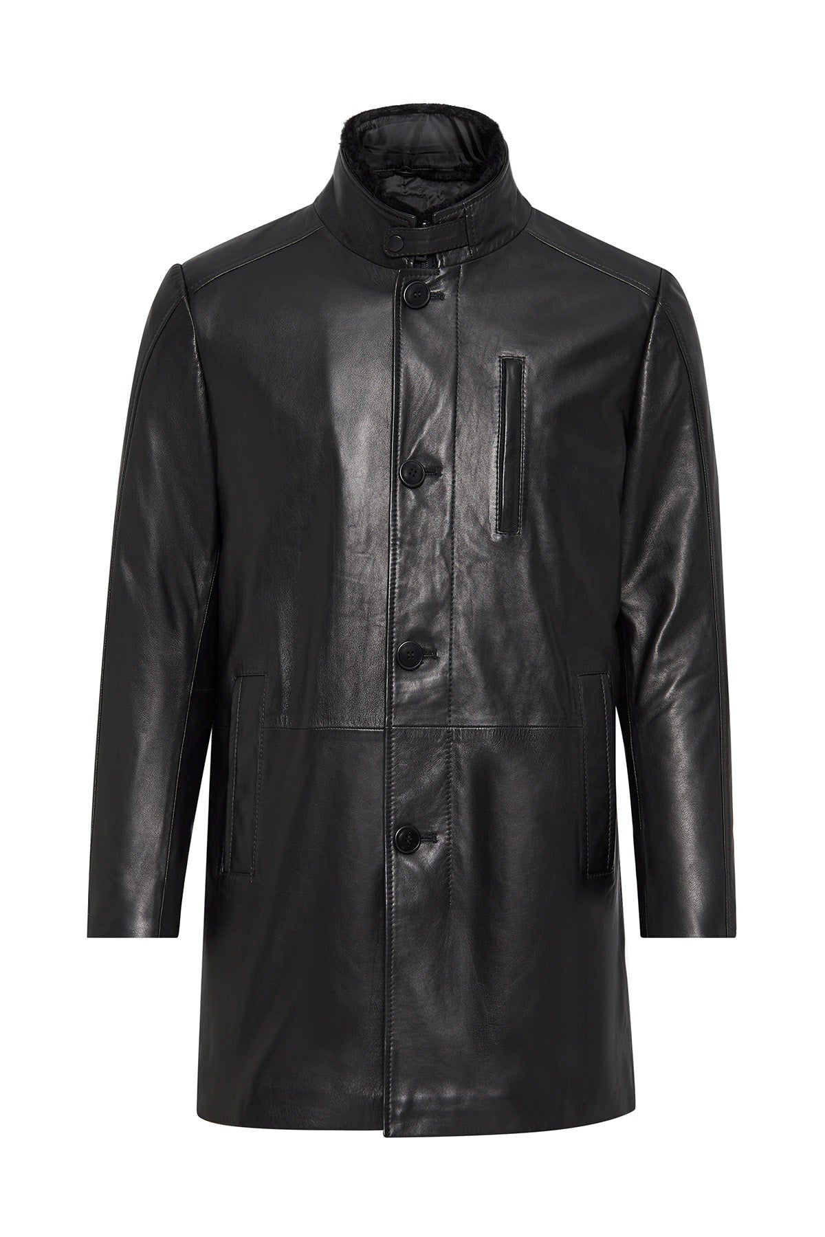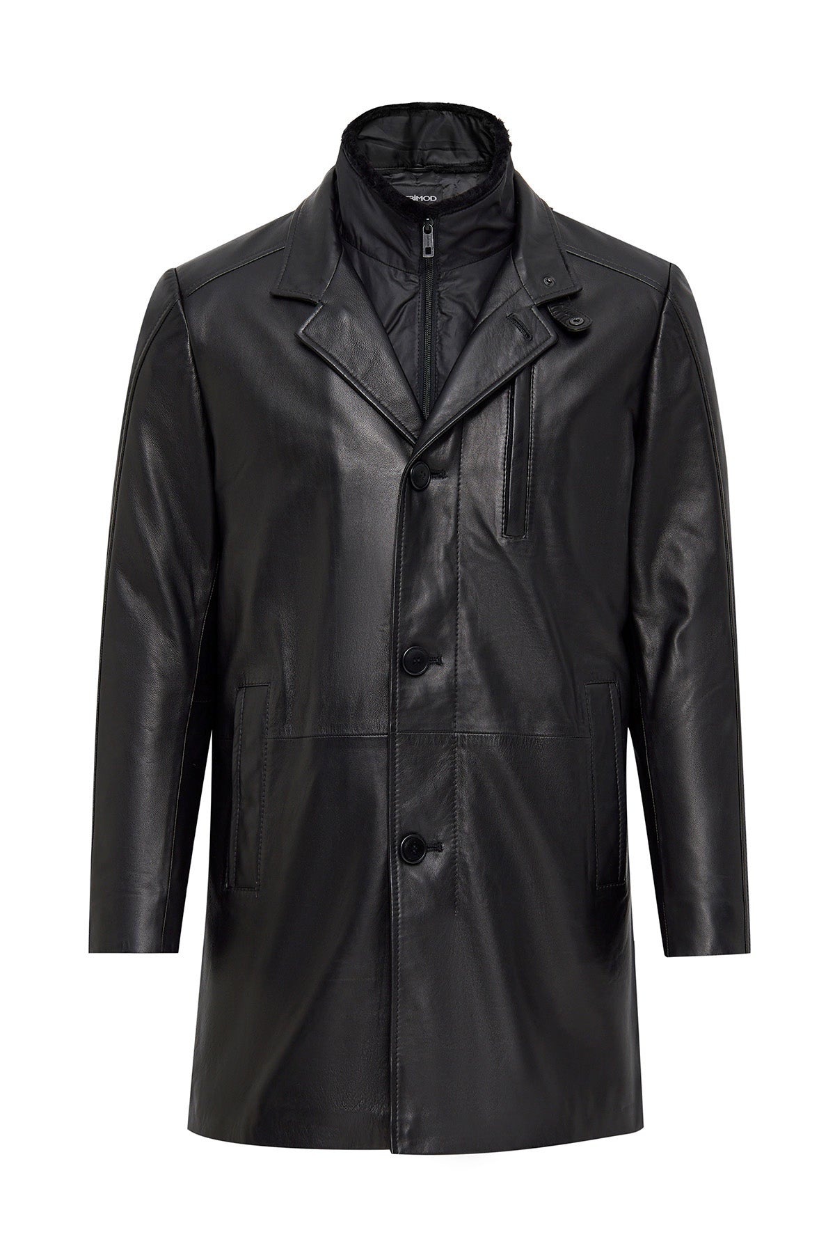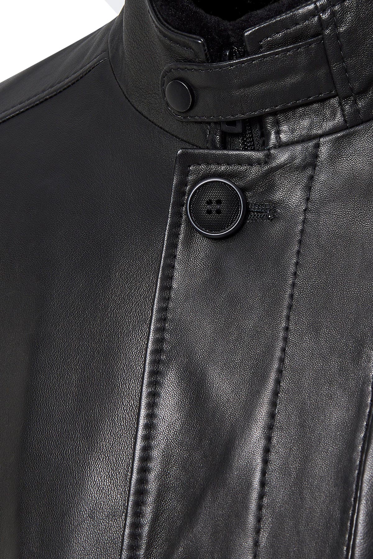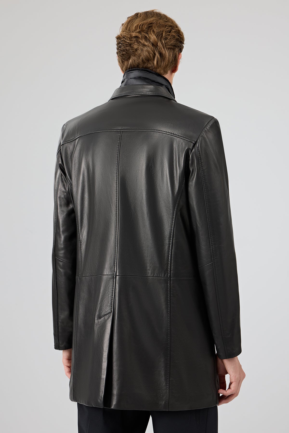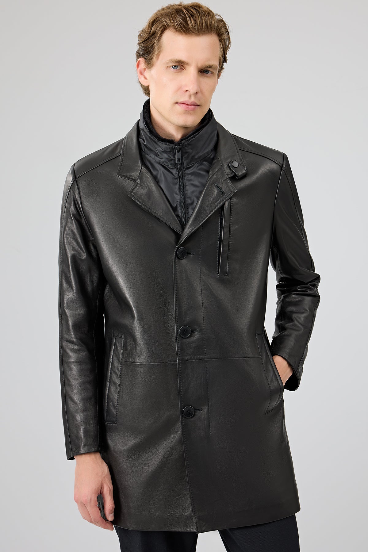 Barella Erkek Siyah Yaka Kürklü Deri Trençkot
