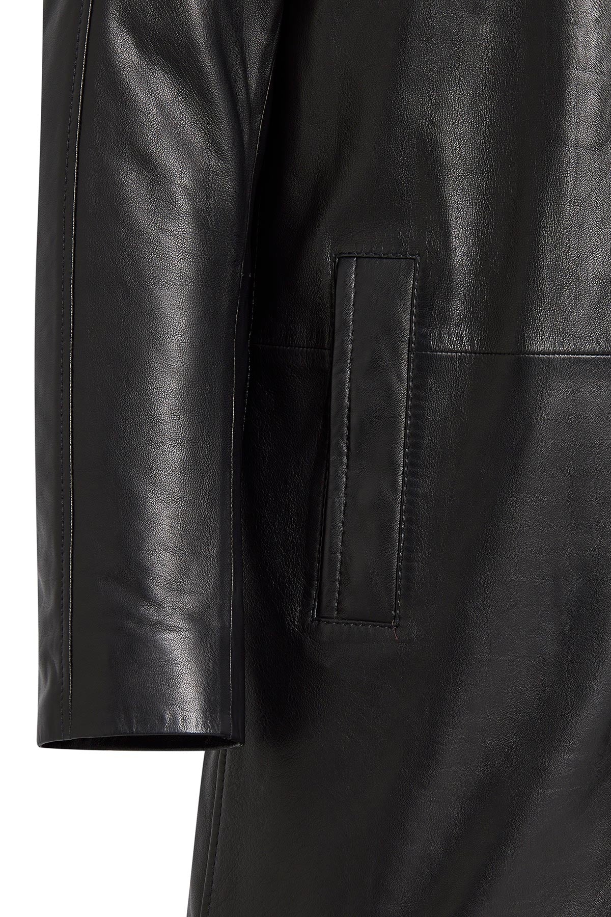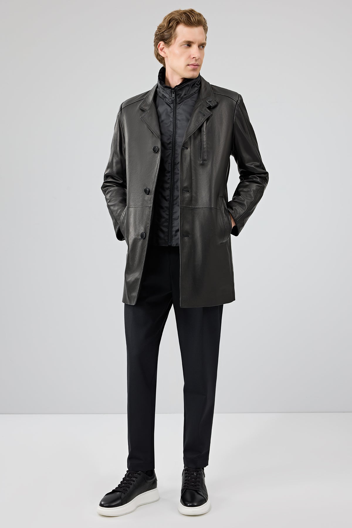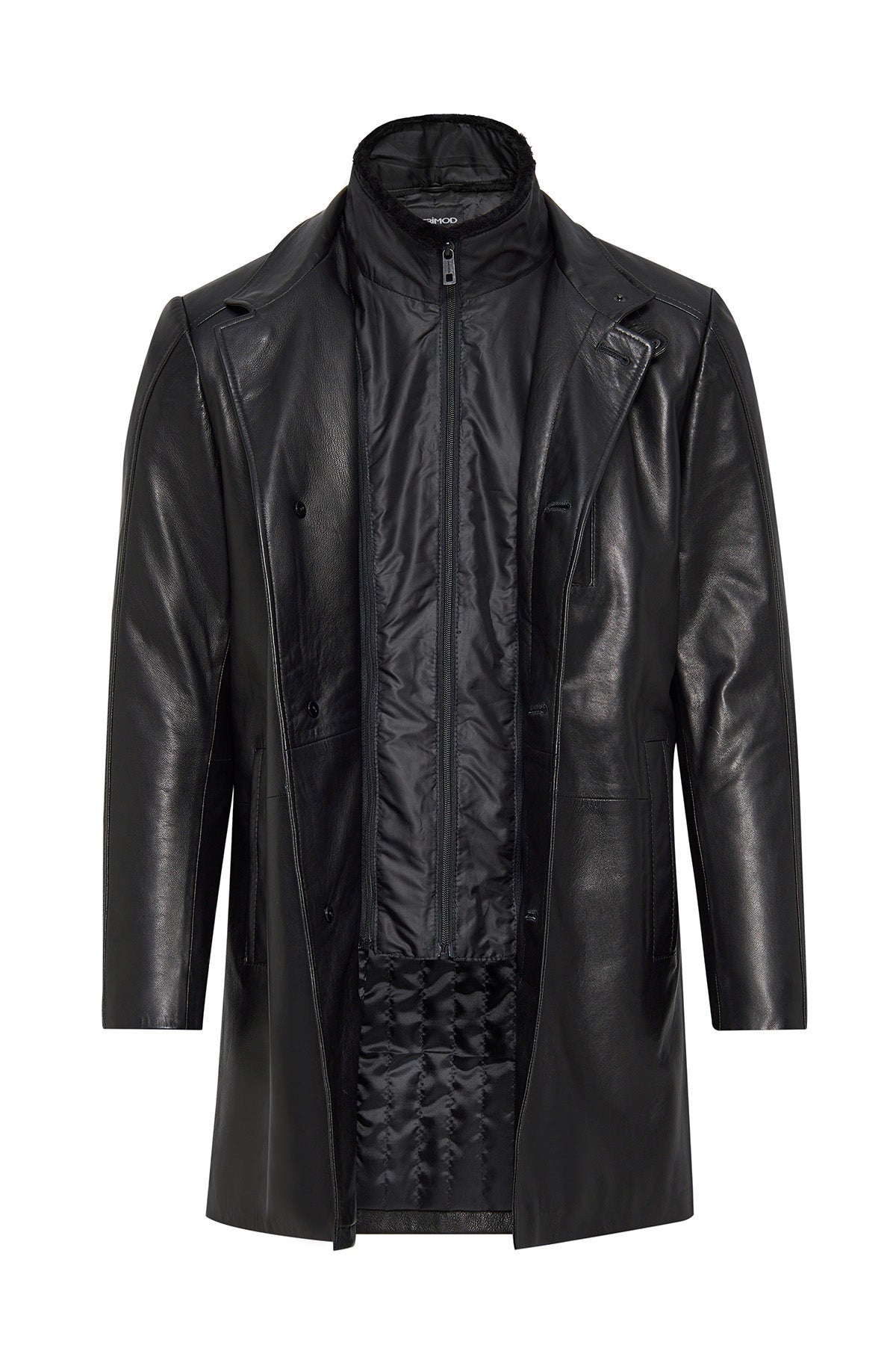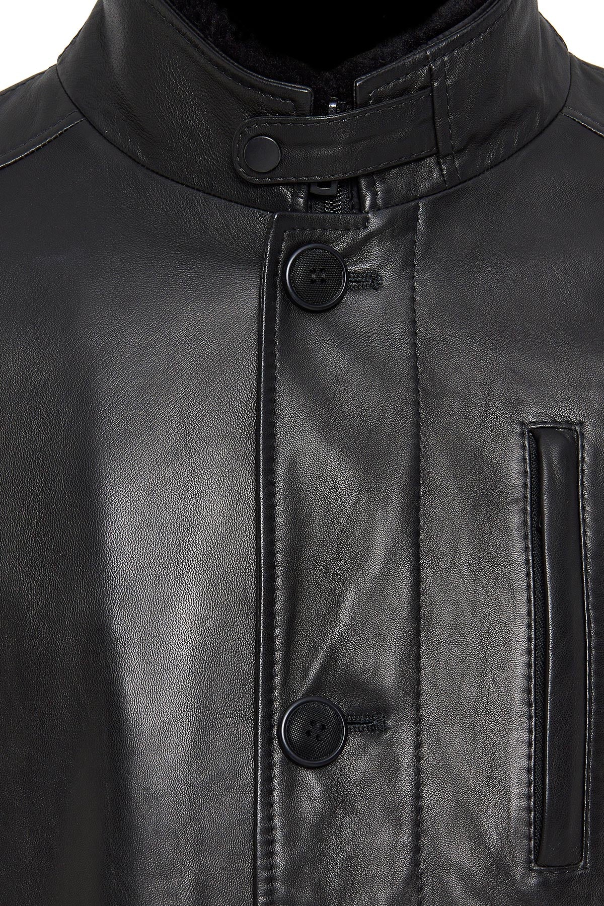 Barella Erkek Siyah Yaka Kürklü Deri Trençkot