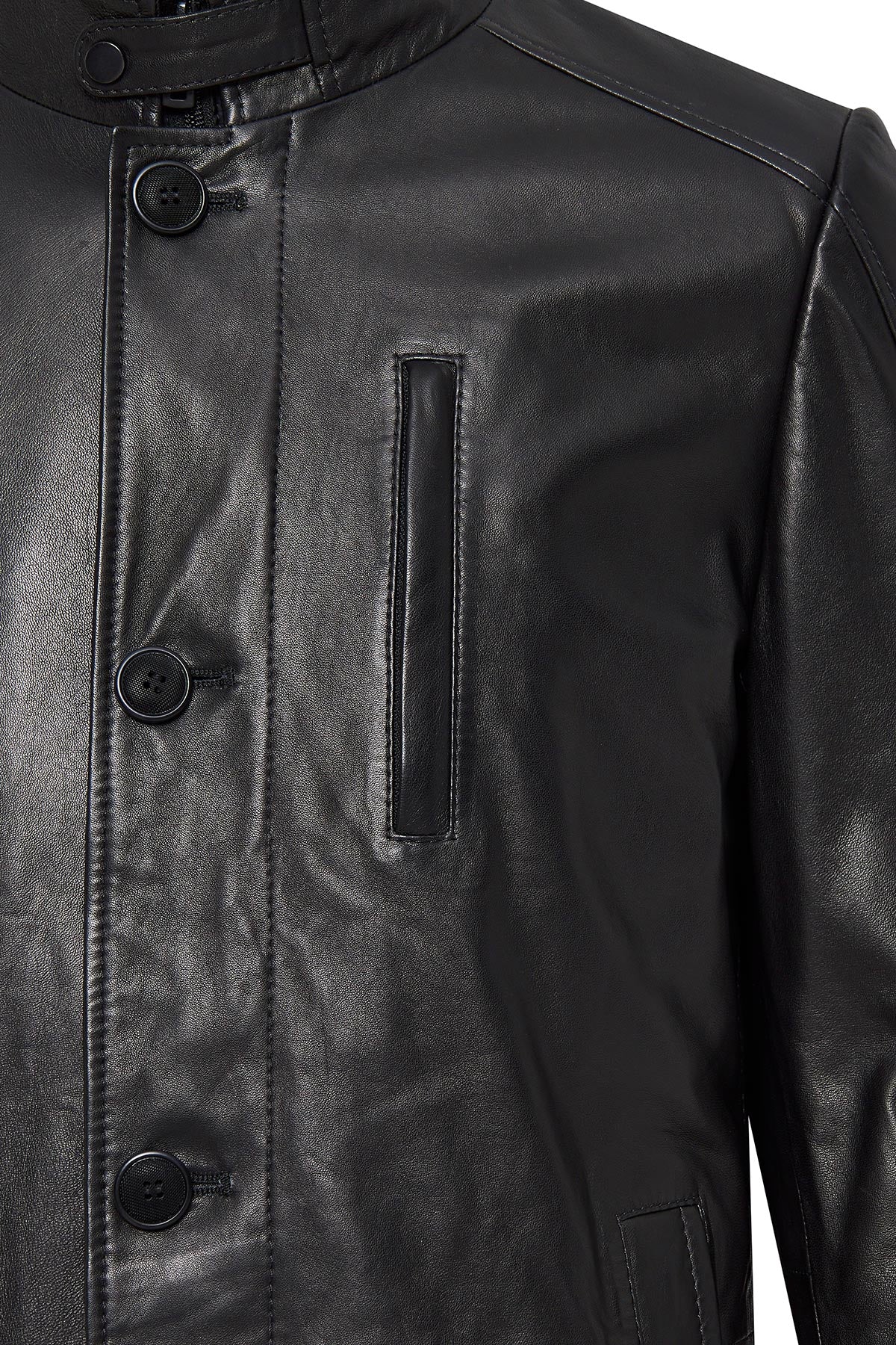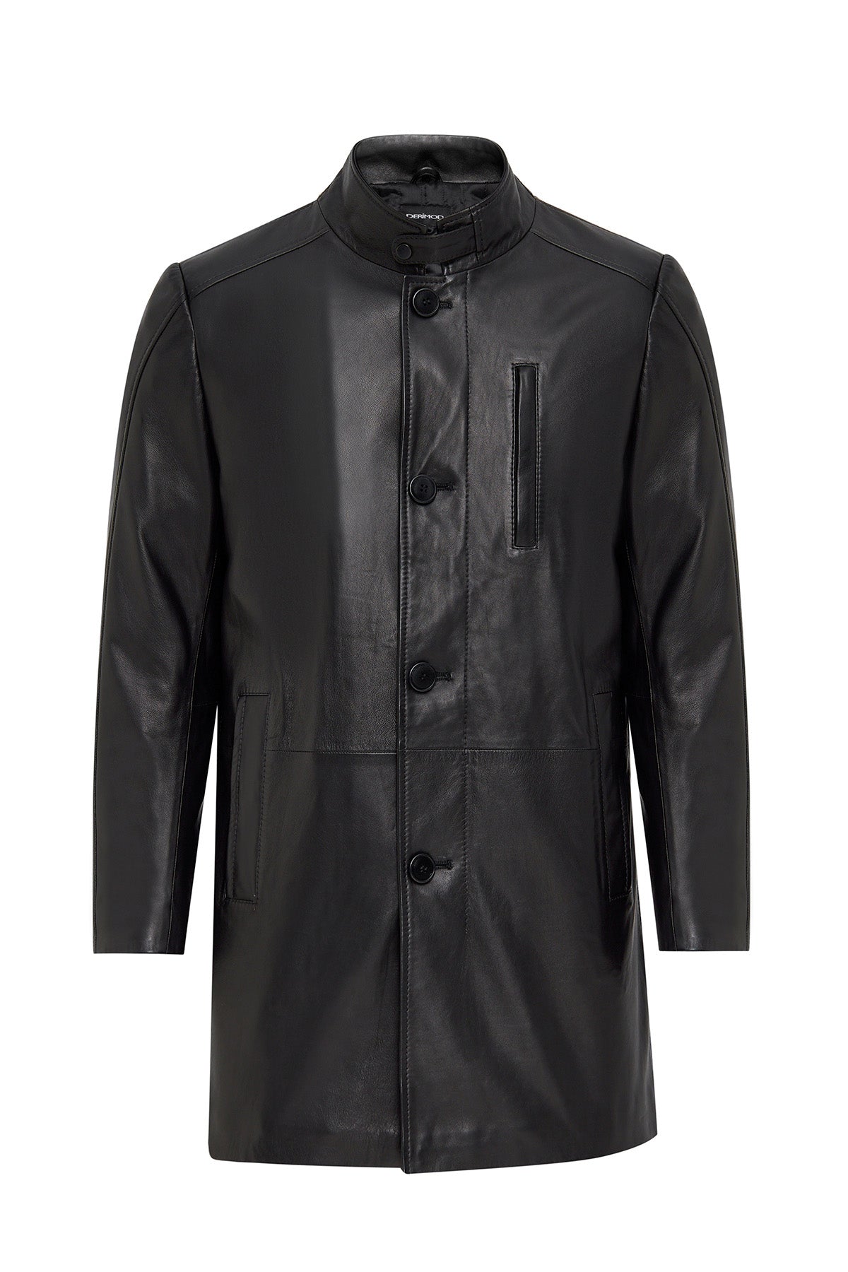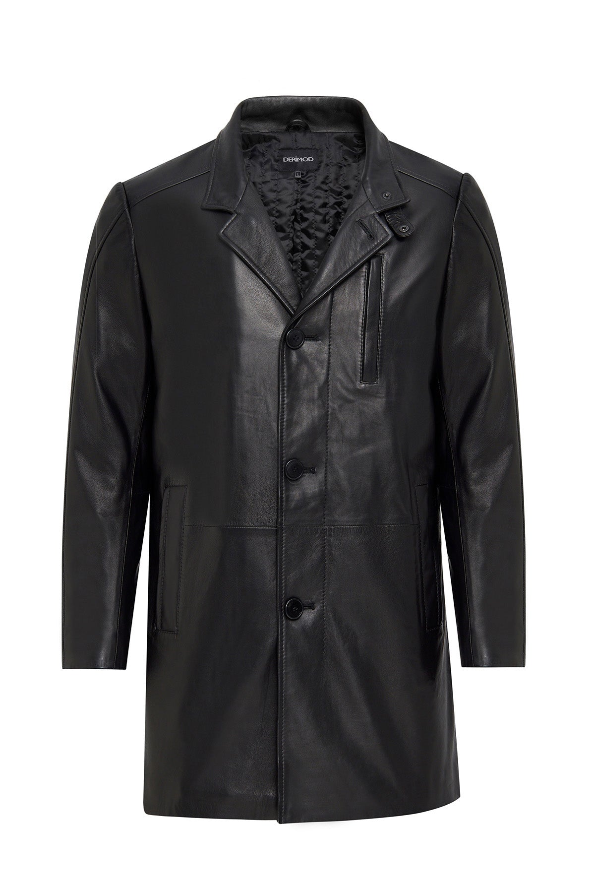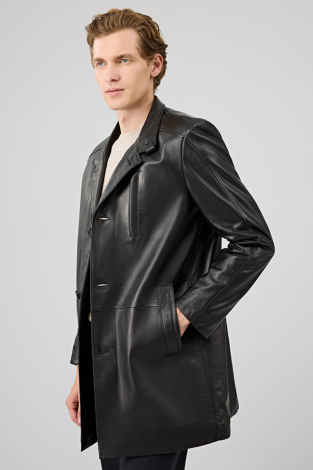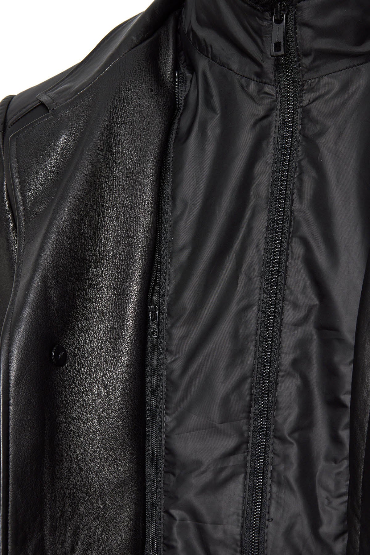 Barella Erkek Siyah Yaka Kürklü Deri Trençkot