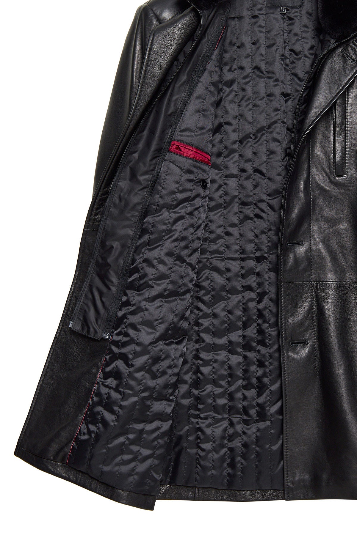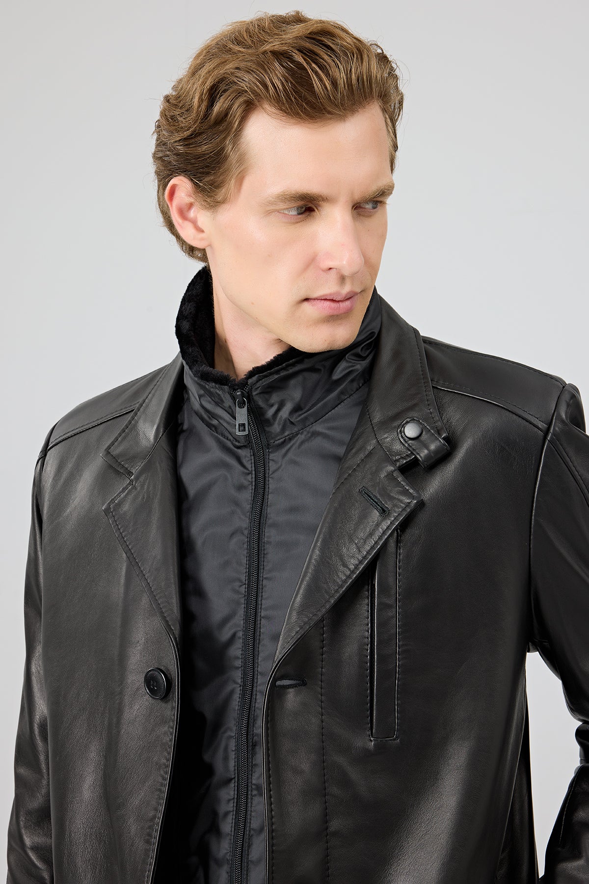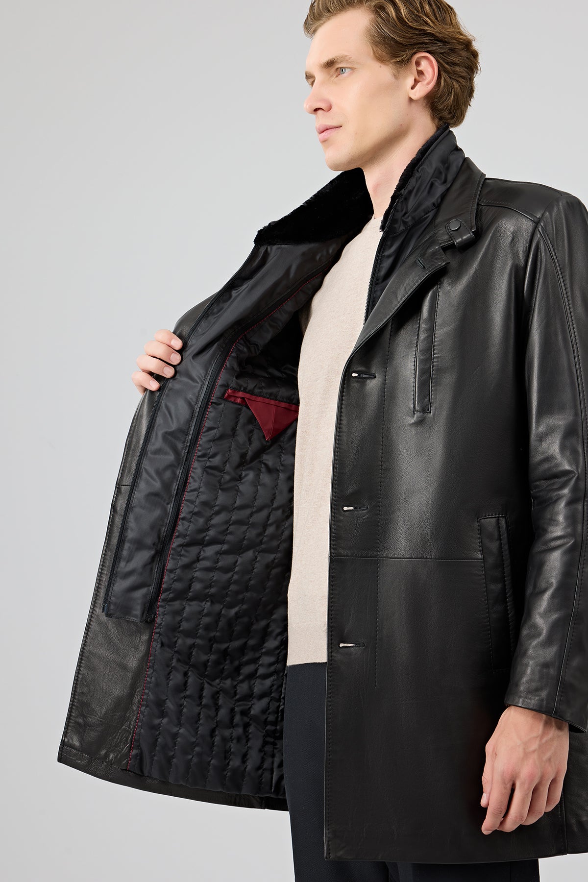 ترنچکت چرمی مردانه مشکی یقه خزدار Barella دری مد