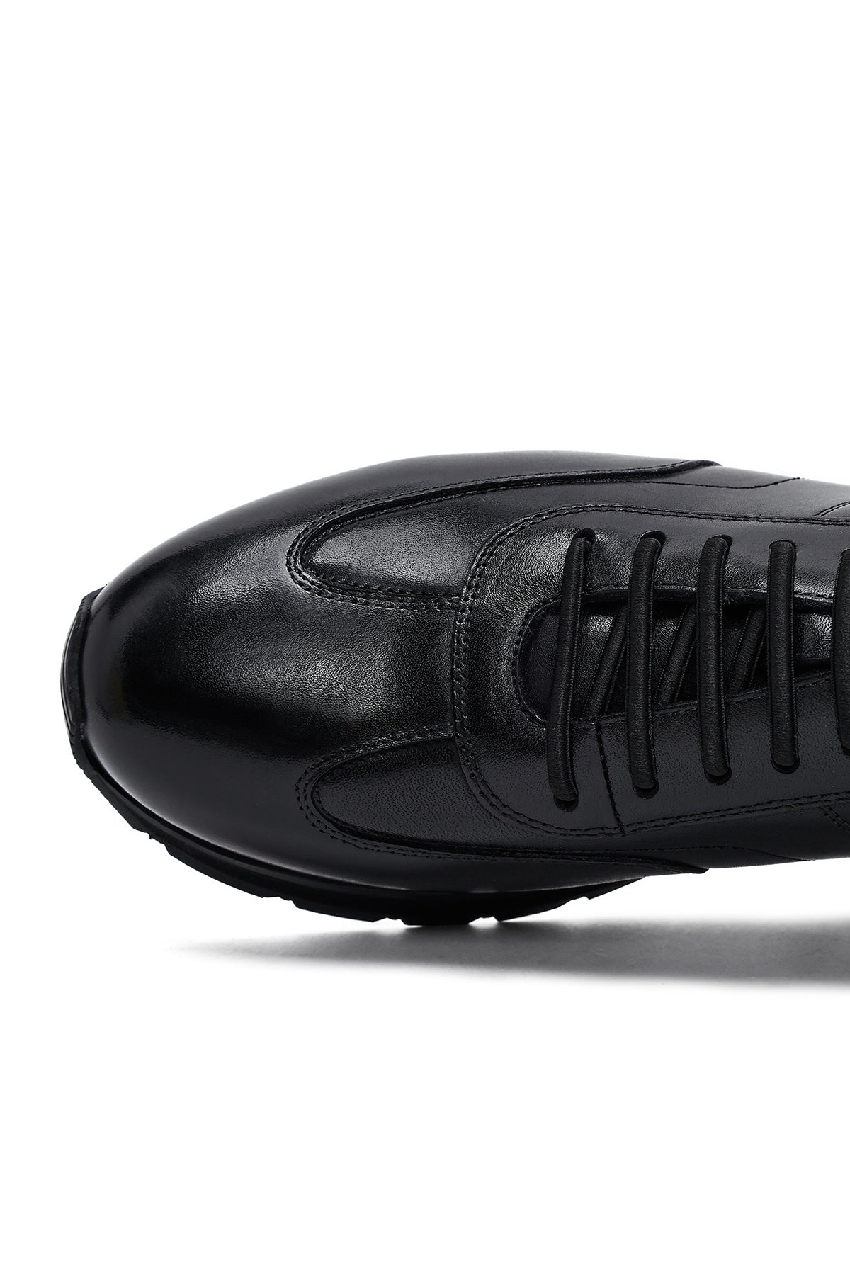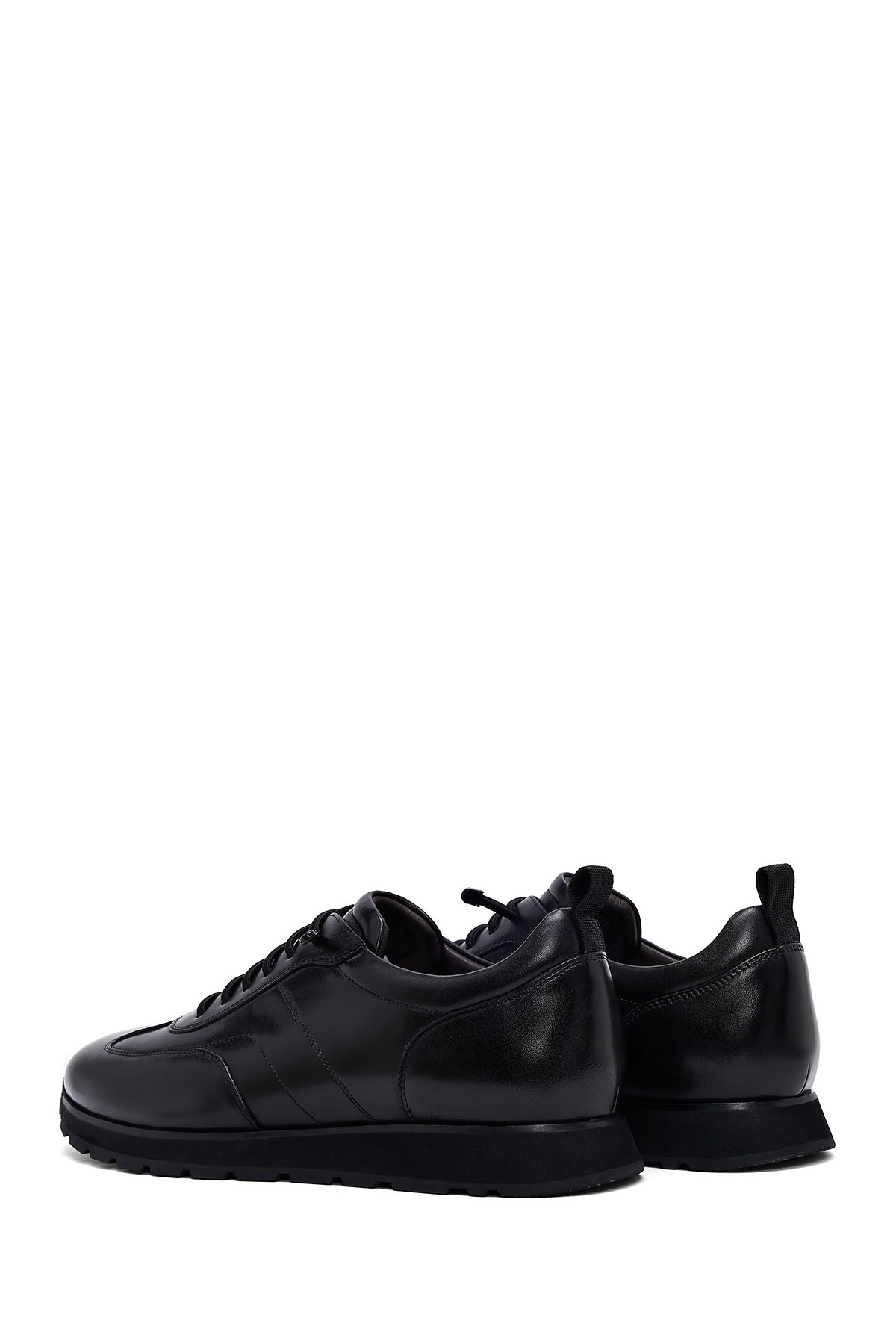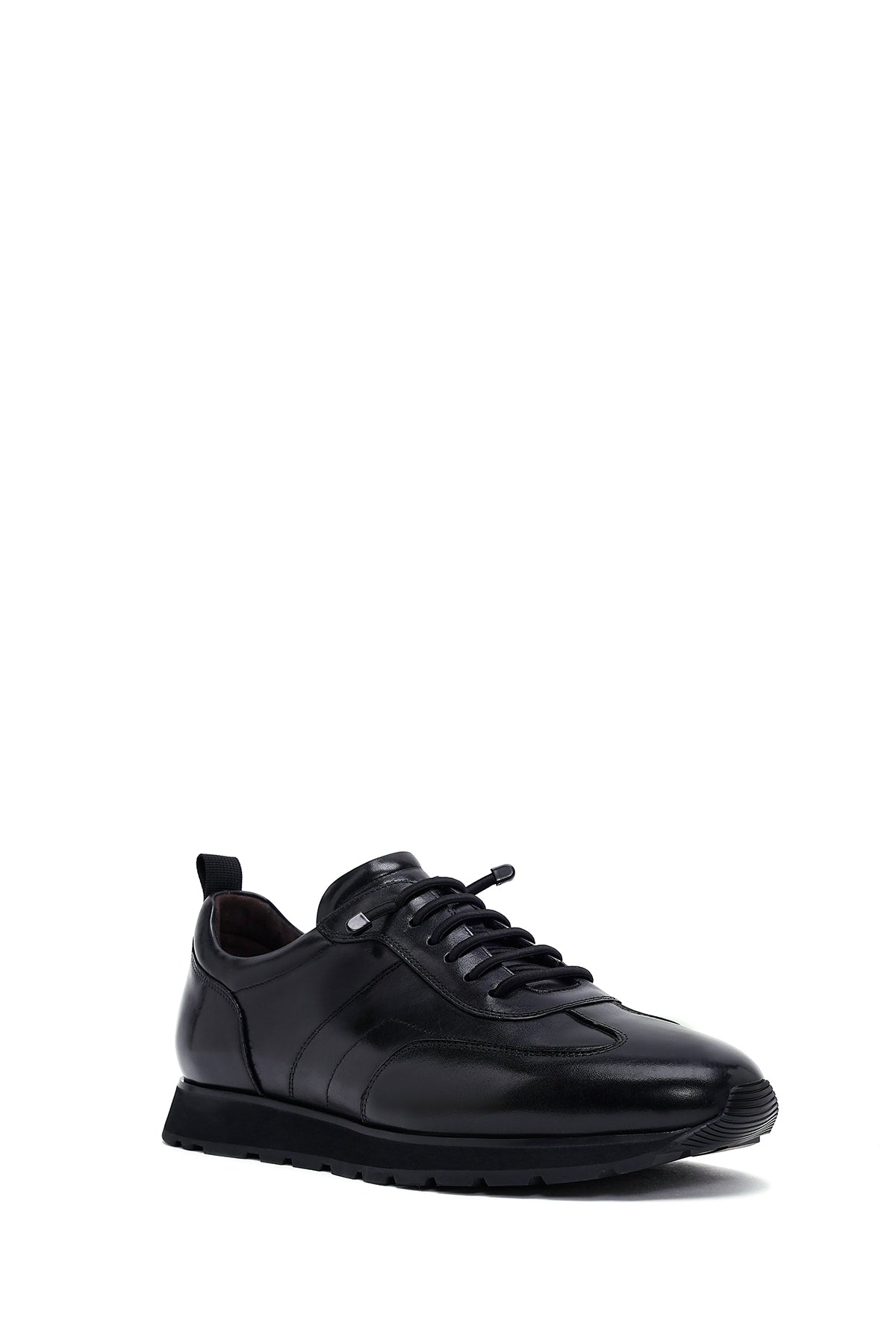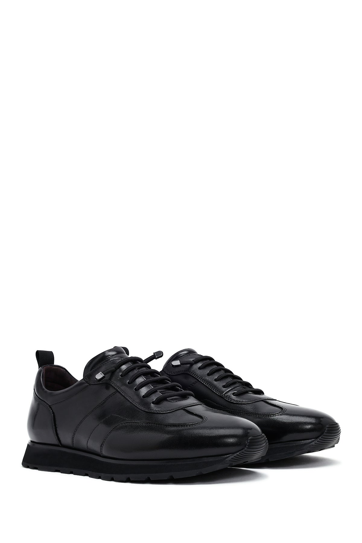 Erkek Siyah Bağcıklı Deri Casual Sneaker