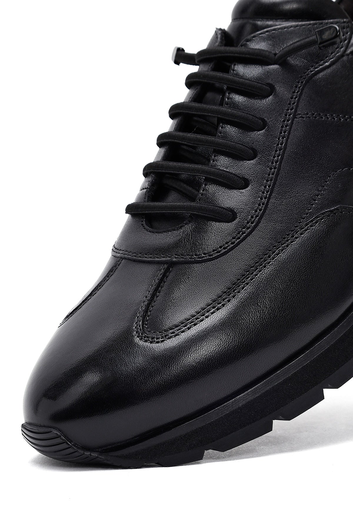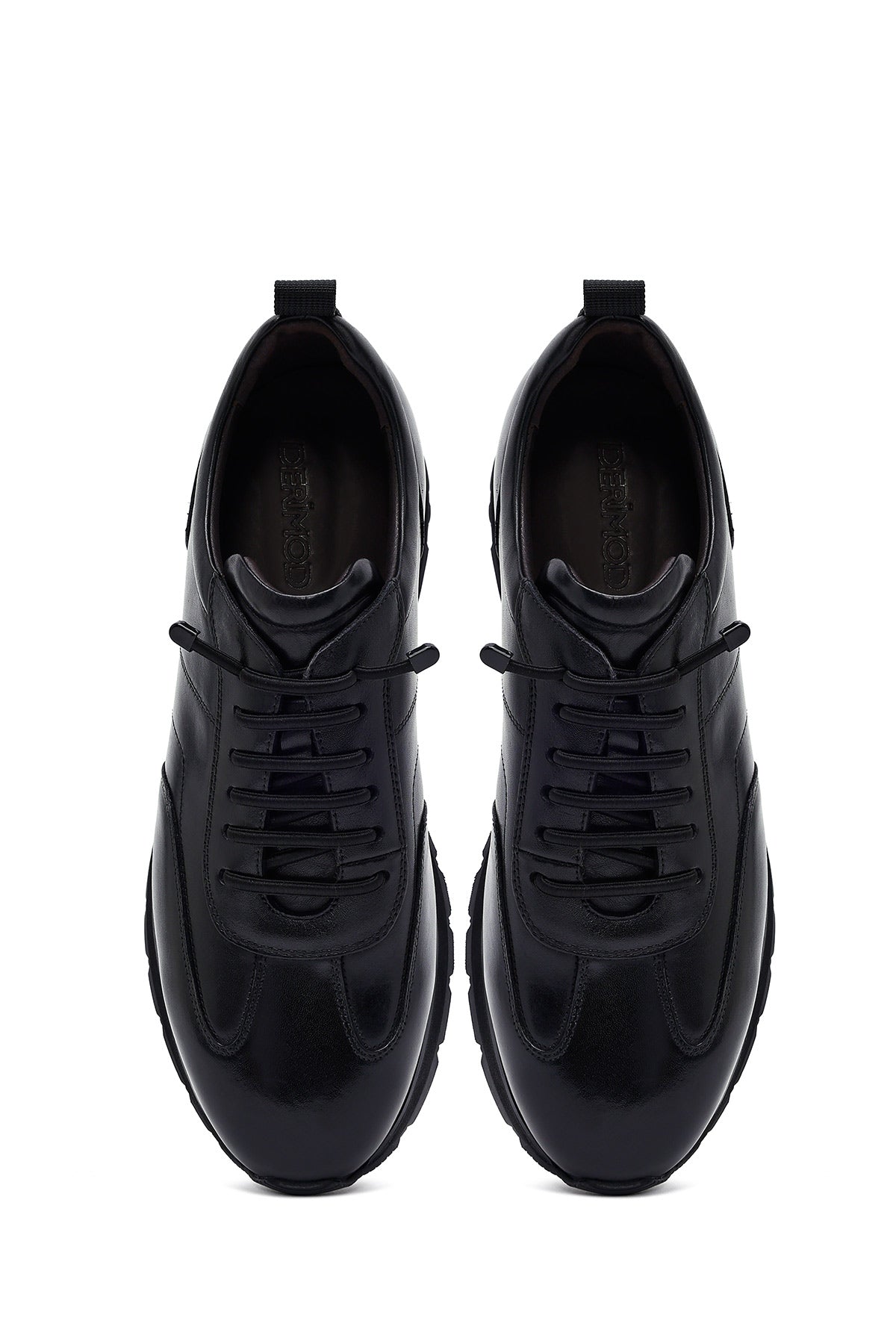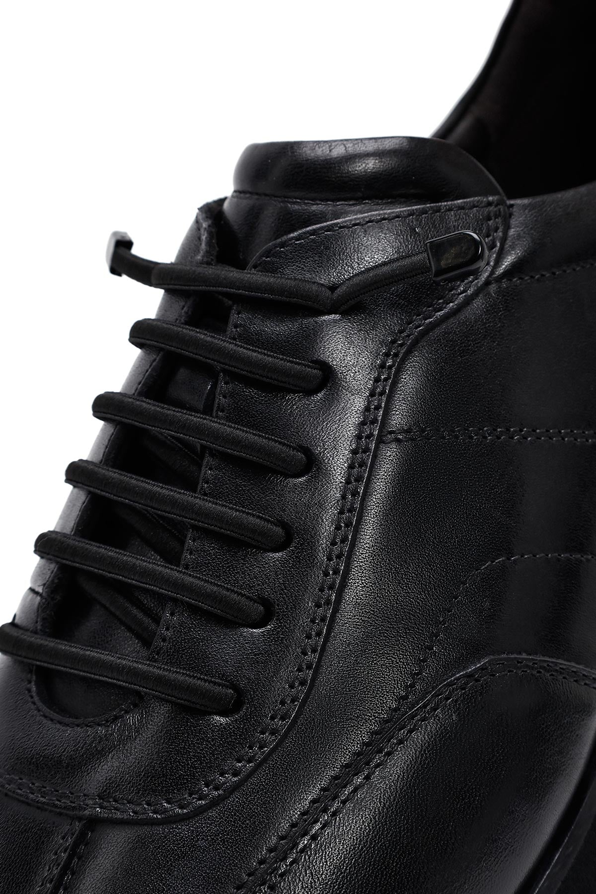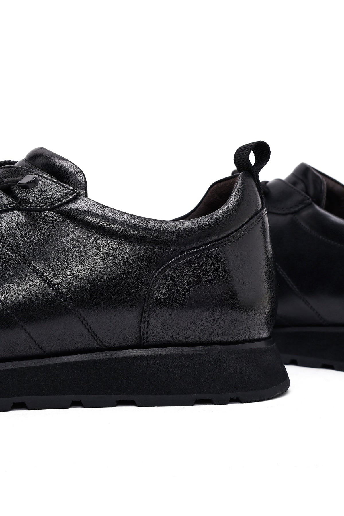 Erkek Siyah Bağcıklı Deri Casual Sneaker