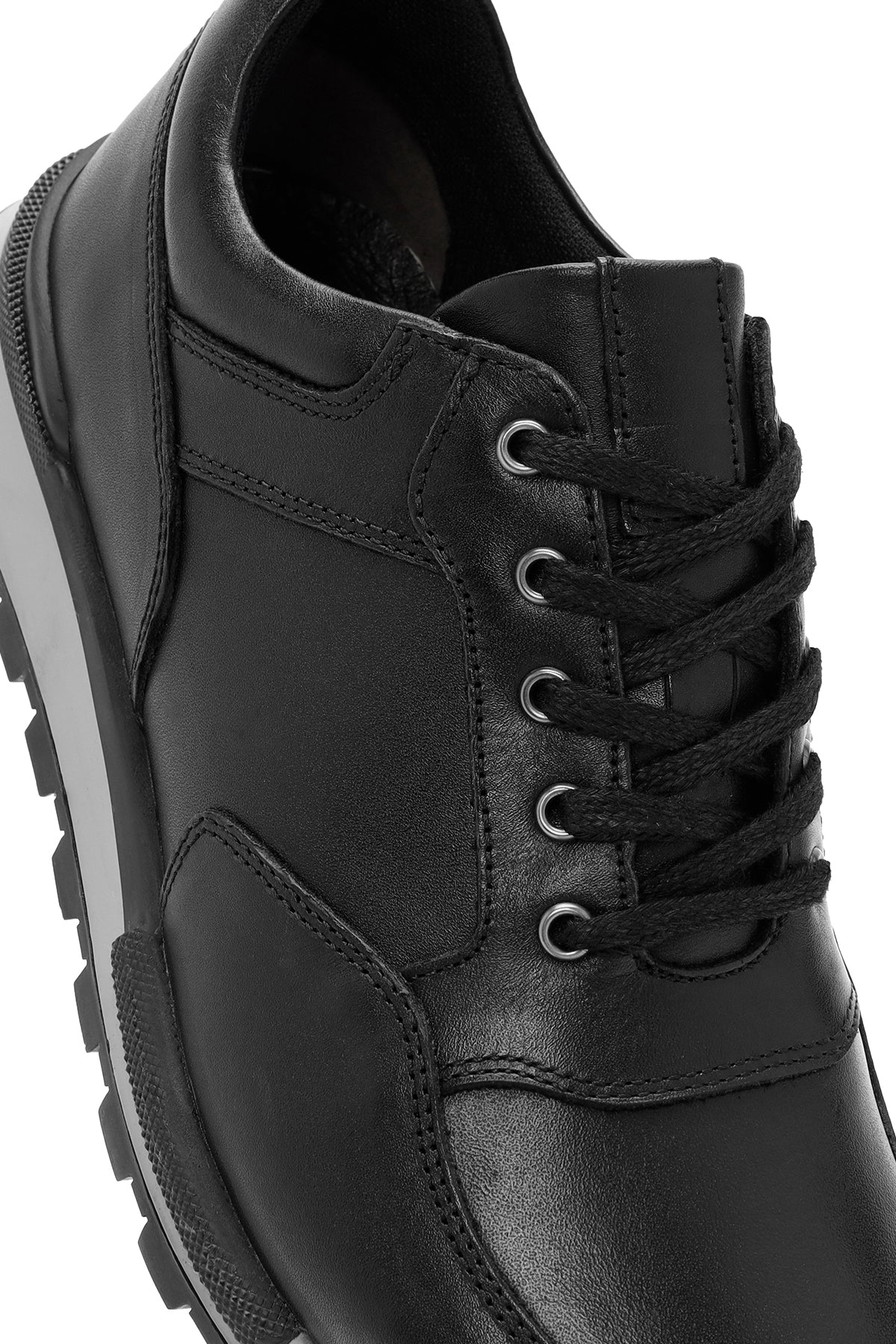 Erkek Siyah Bağcıklı Deri Casual Sneaker