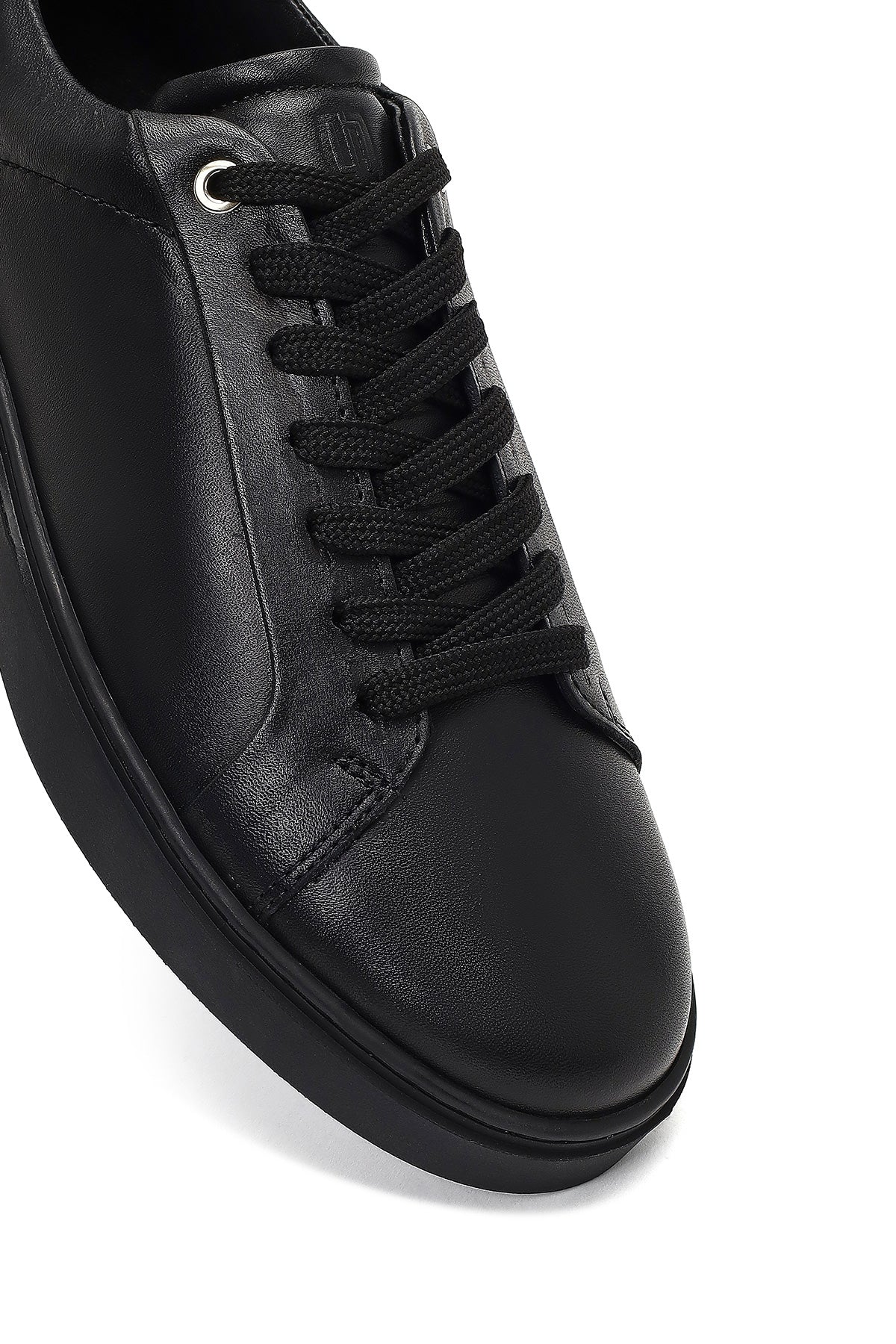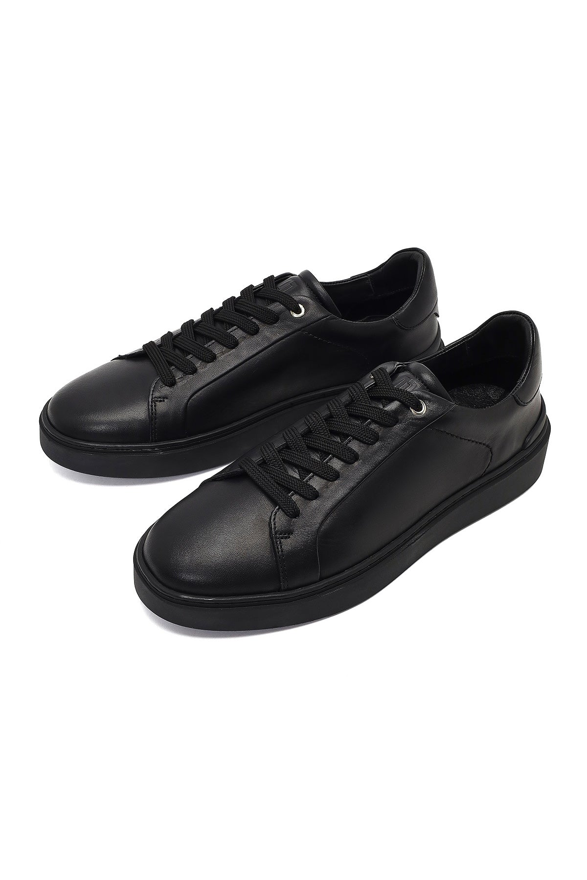 Erkek Siyah Bağcıklı Deri Sneaker