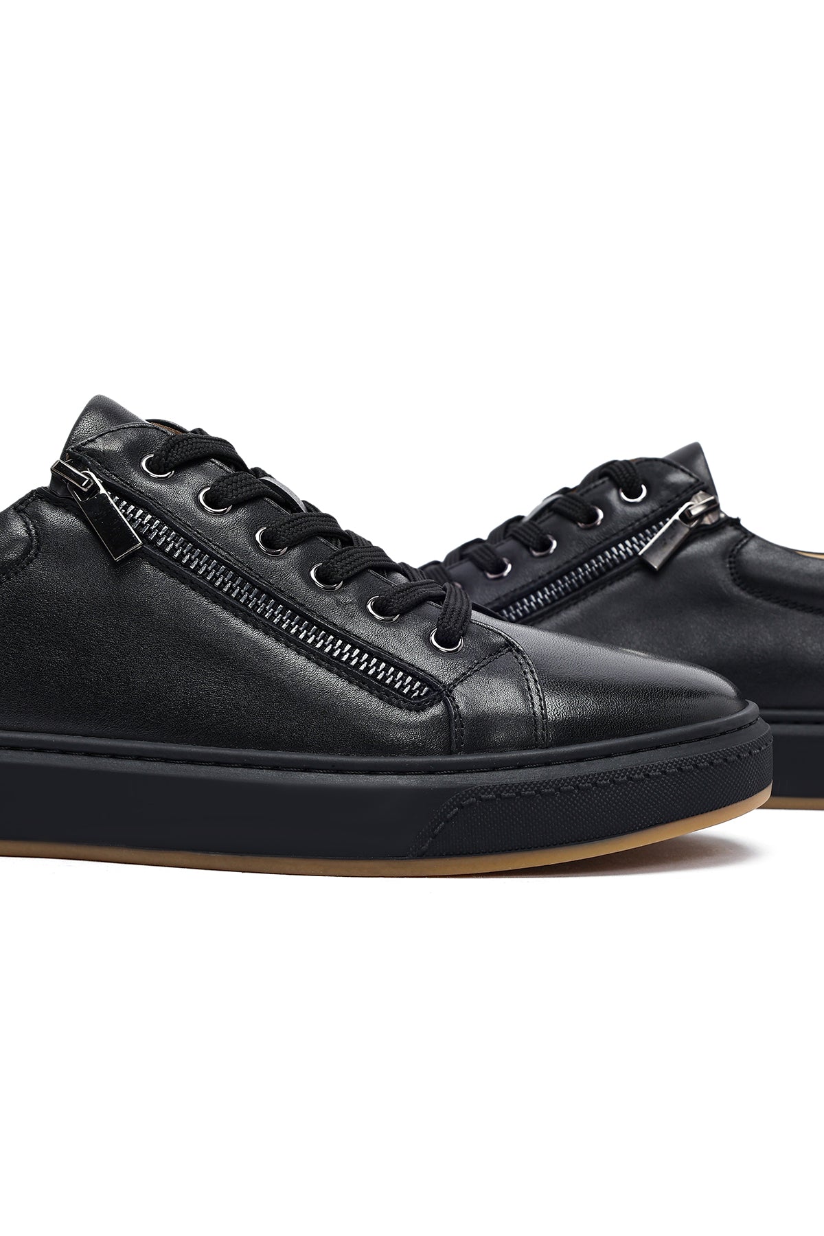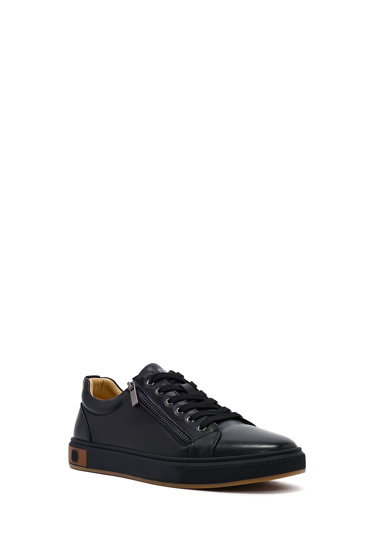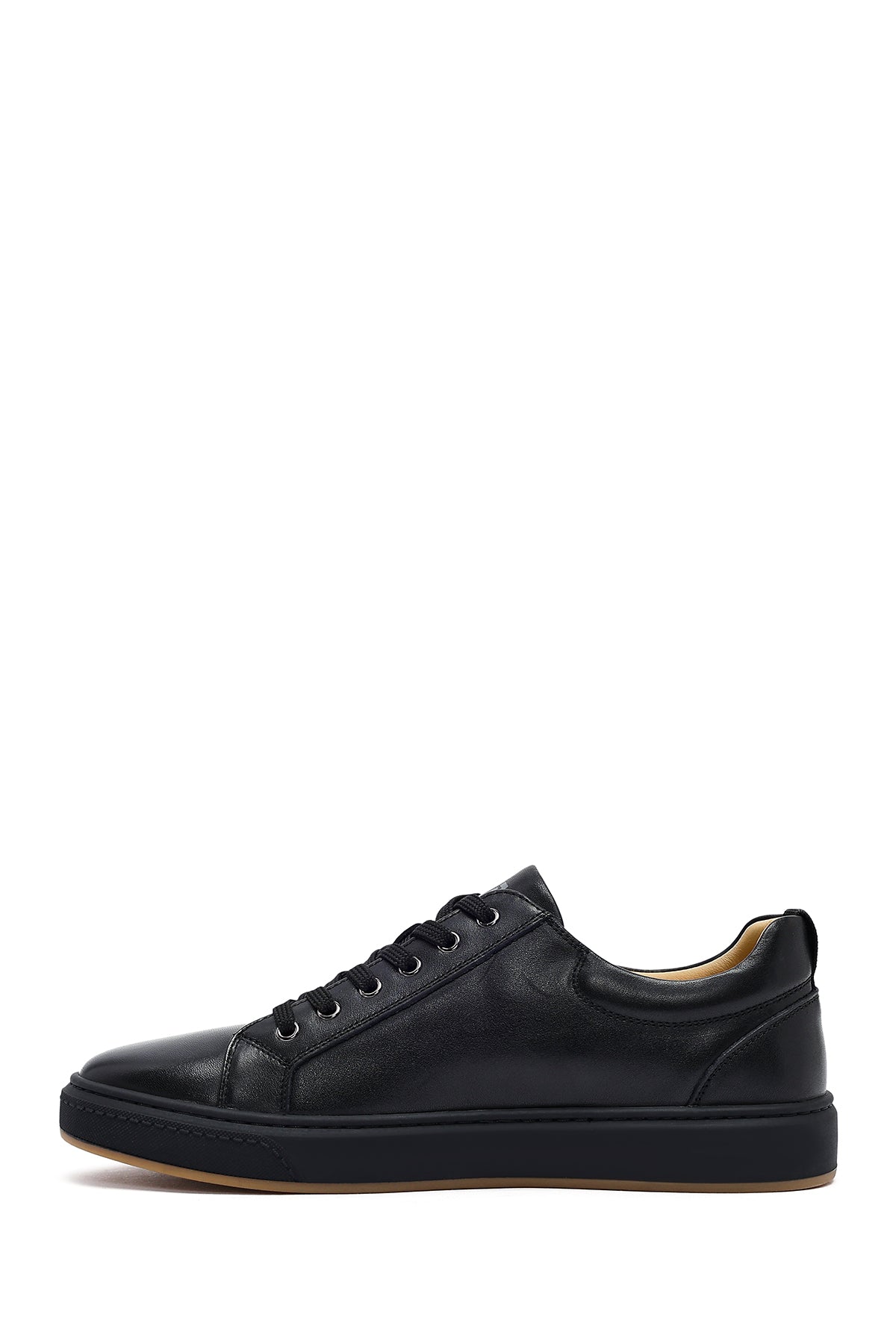 Erkek Siyah Bağcıklı Deri Sneaker