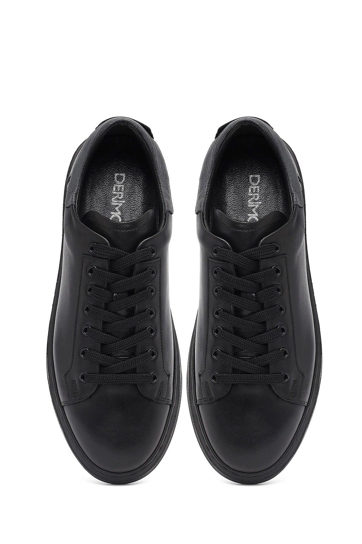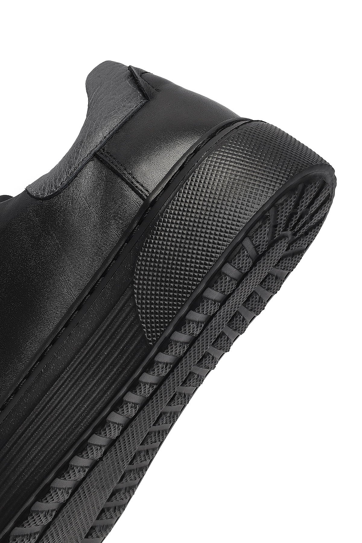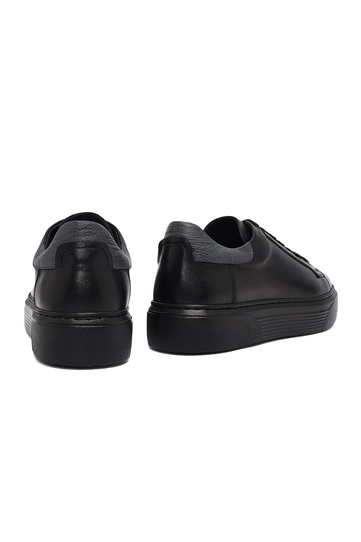 Erkek Siyah Bağcıklı Kalın Tabanlı Deri Sneaker