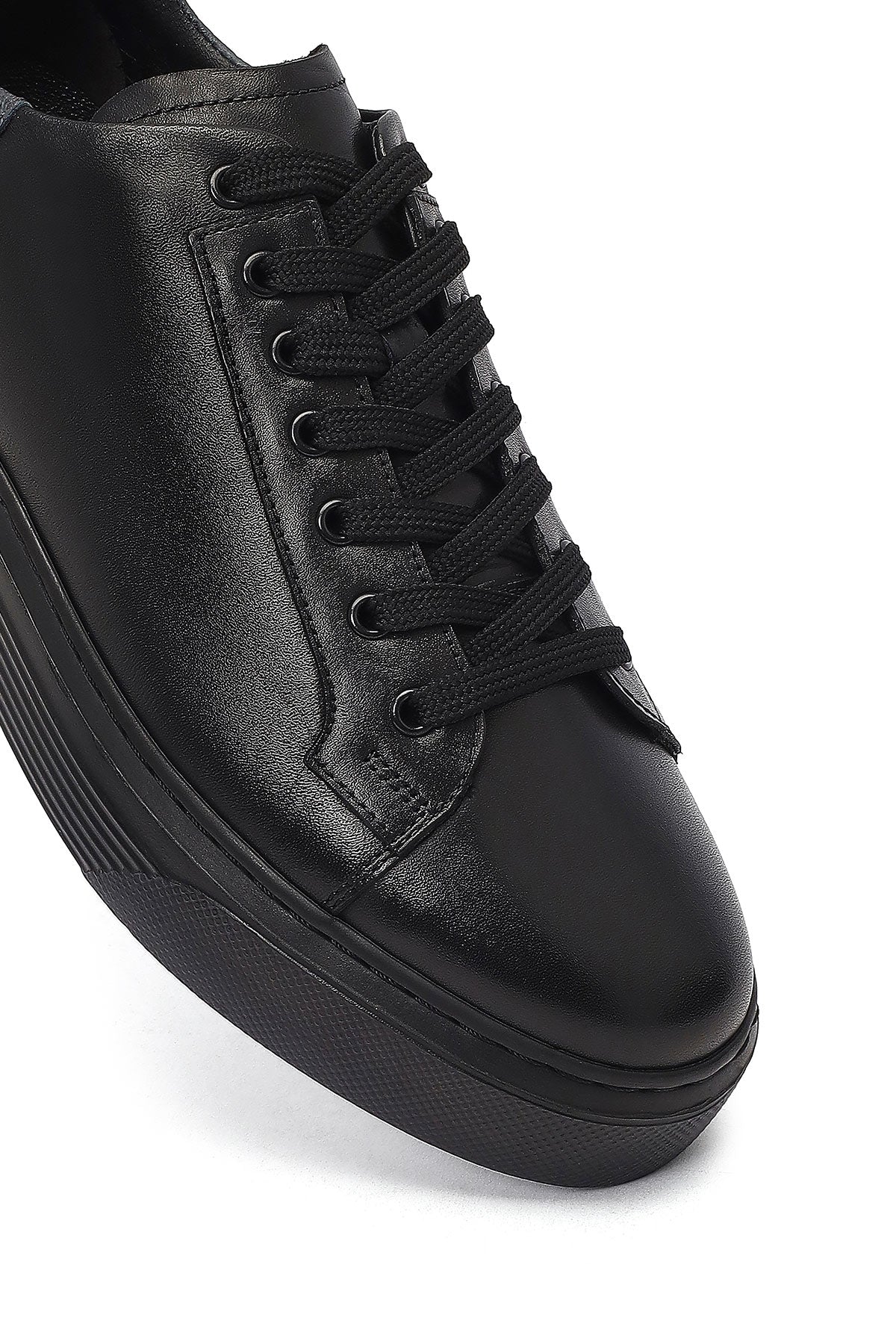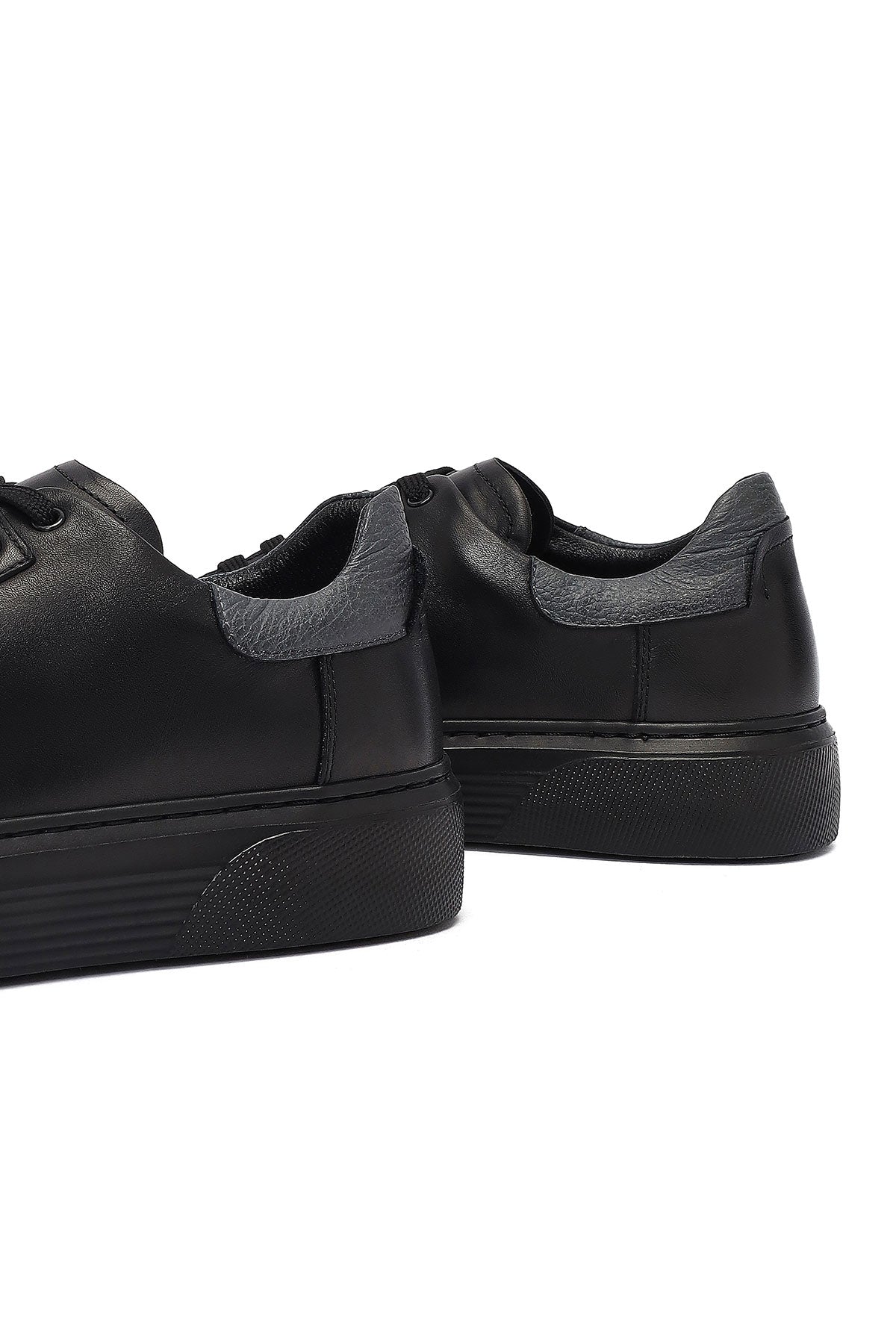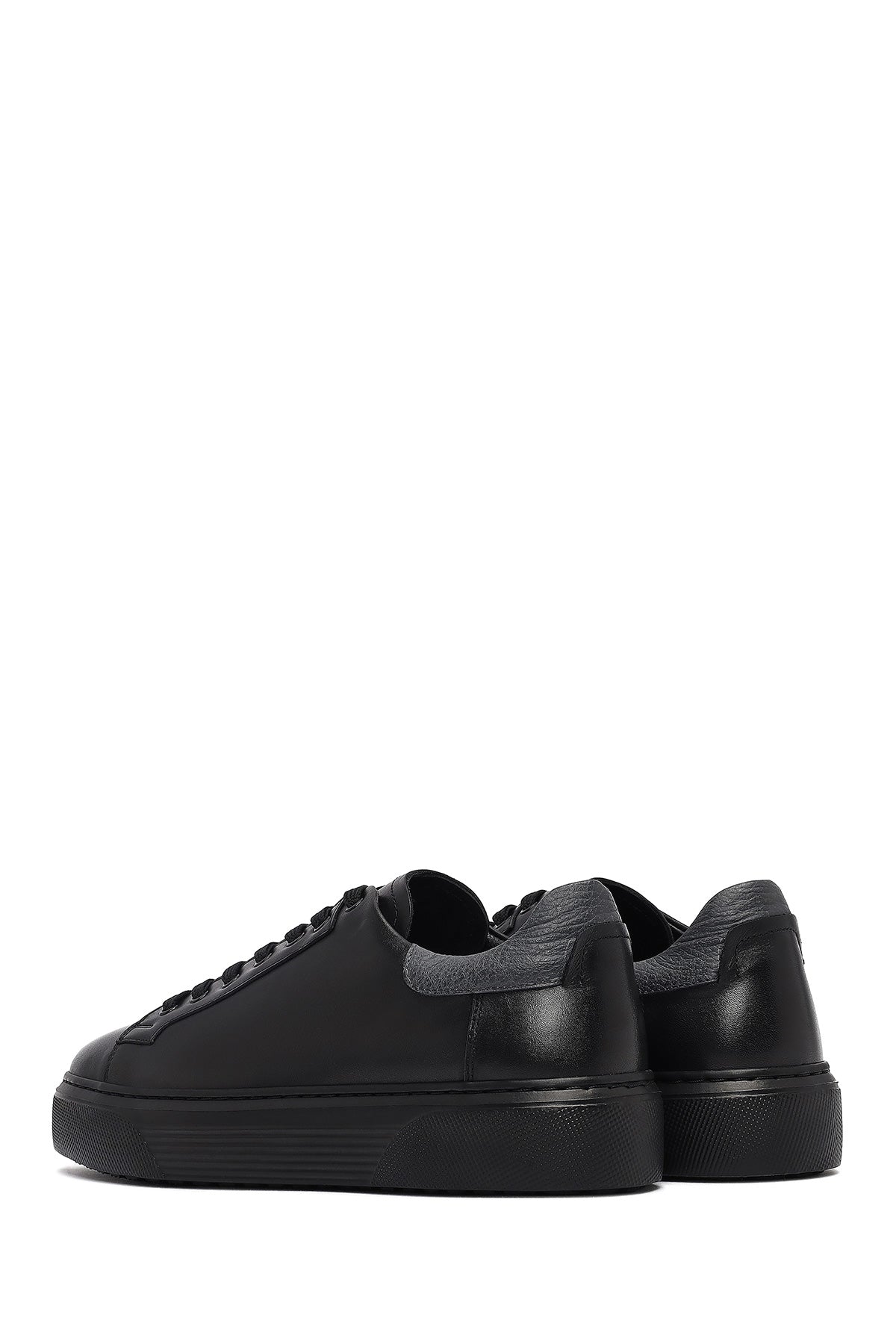 Erkek Siyah Bağcıklı Kalın Tabanlı Deri Sneaker