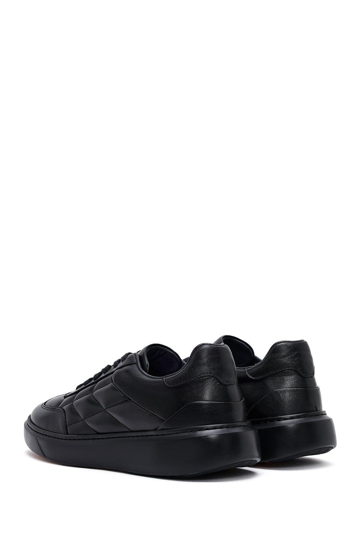 Erkek Siyah Bağcıklı Kalın Tabanlı Baskılı Deri Sneaker
