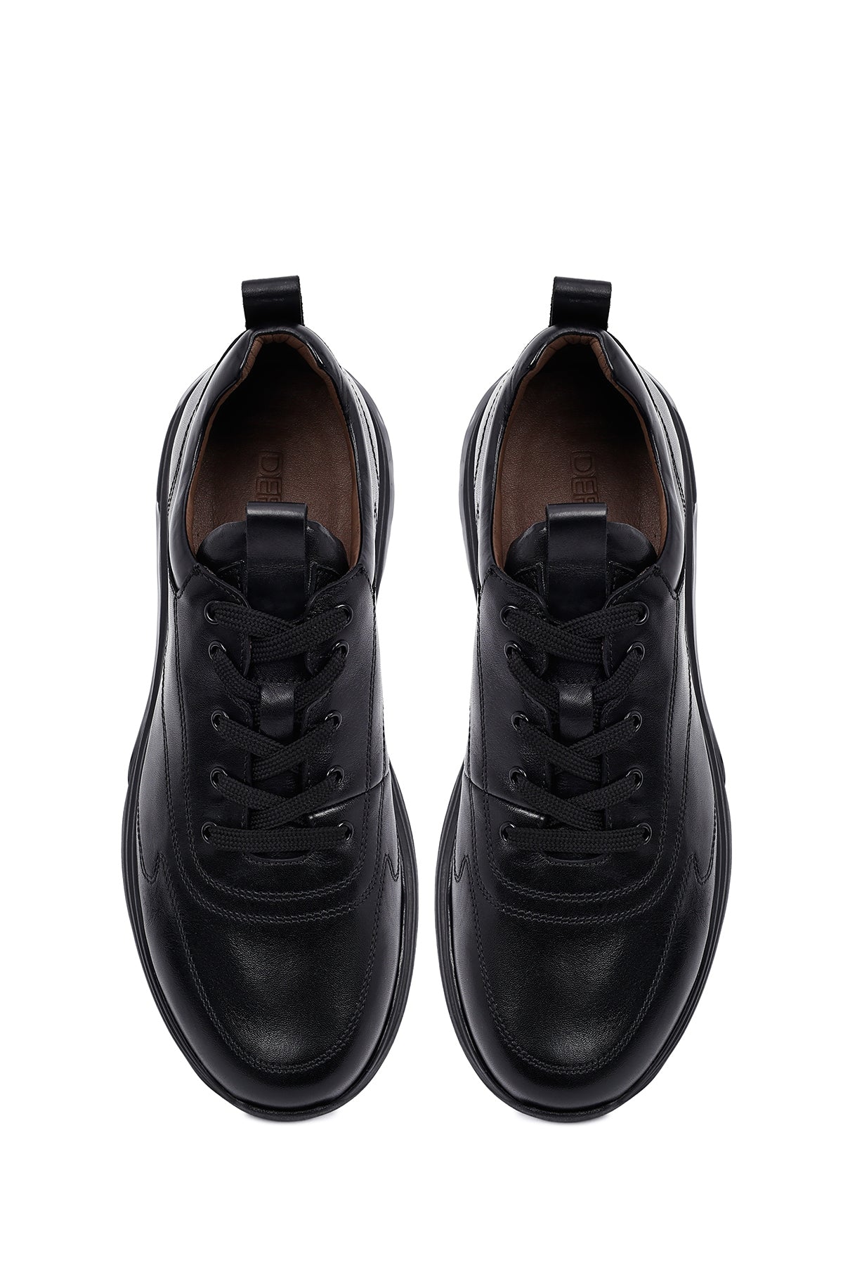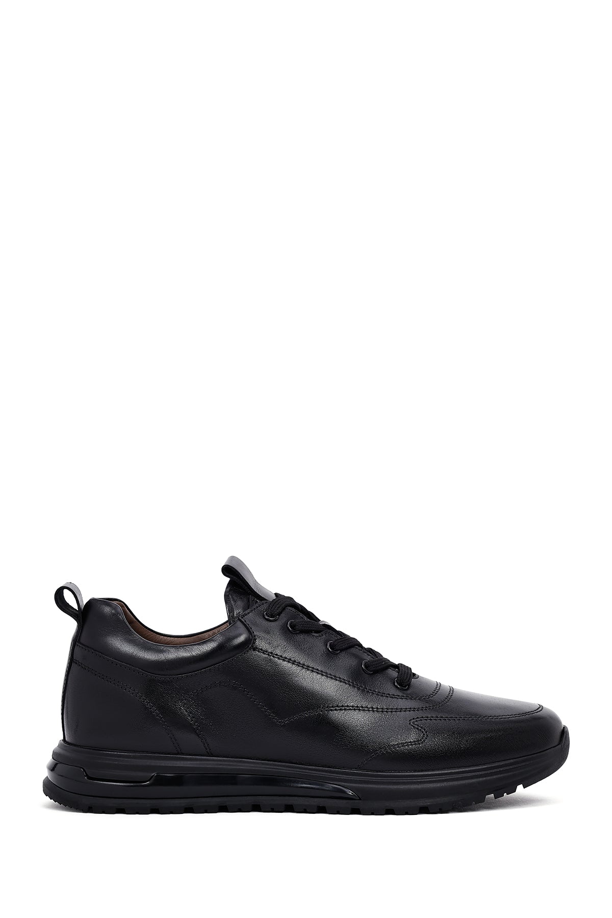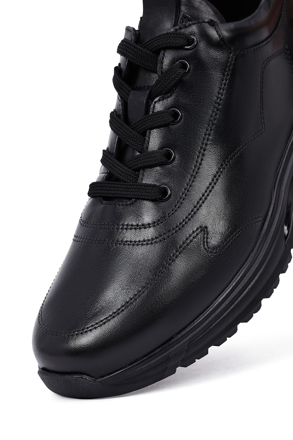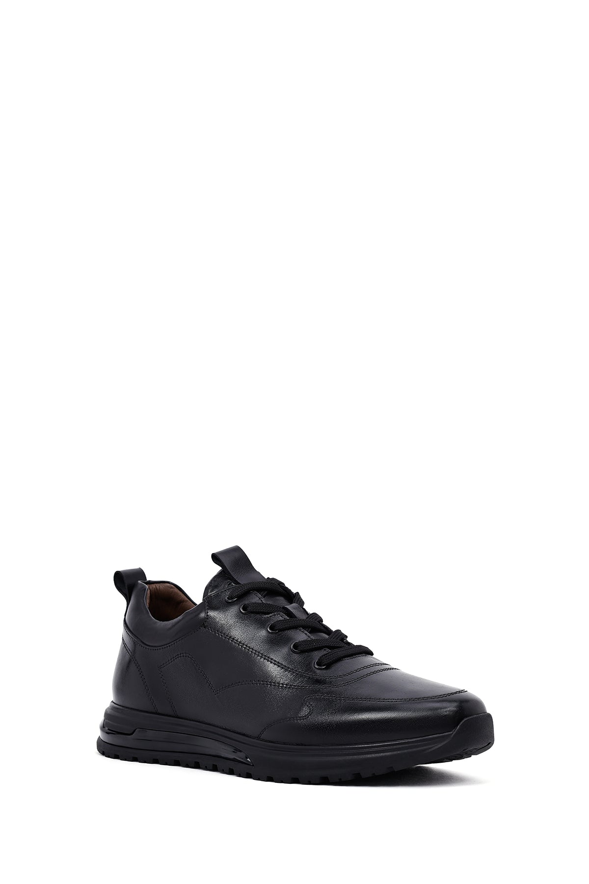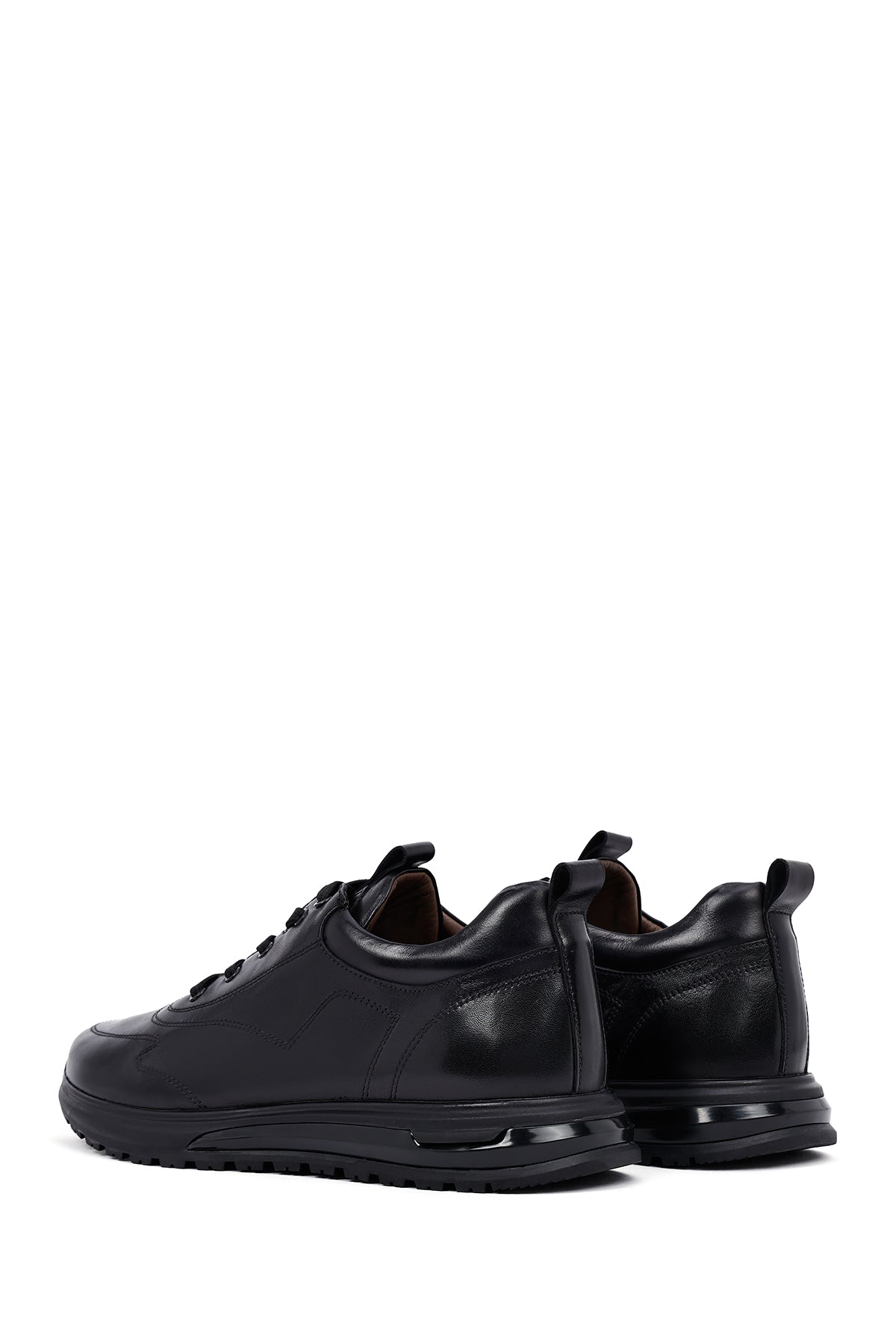 Erkek Siyah Bağcıklı Deri Casual Sneaker